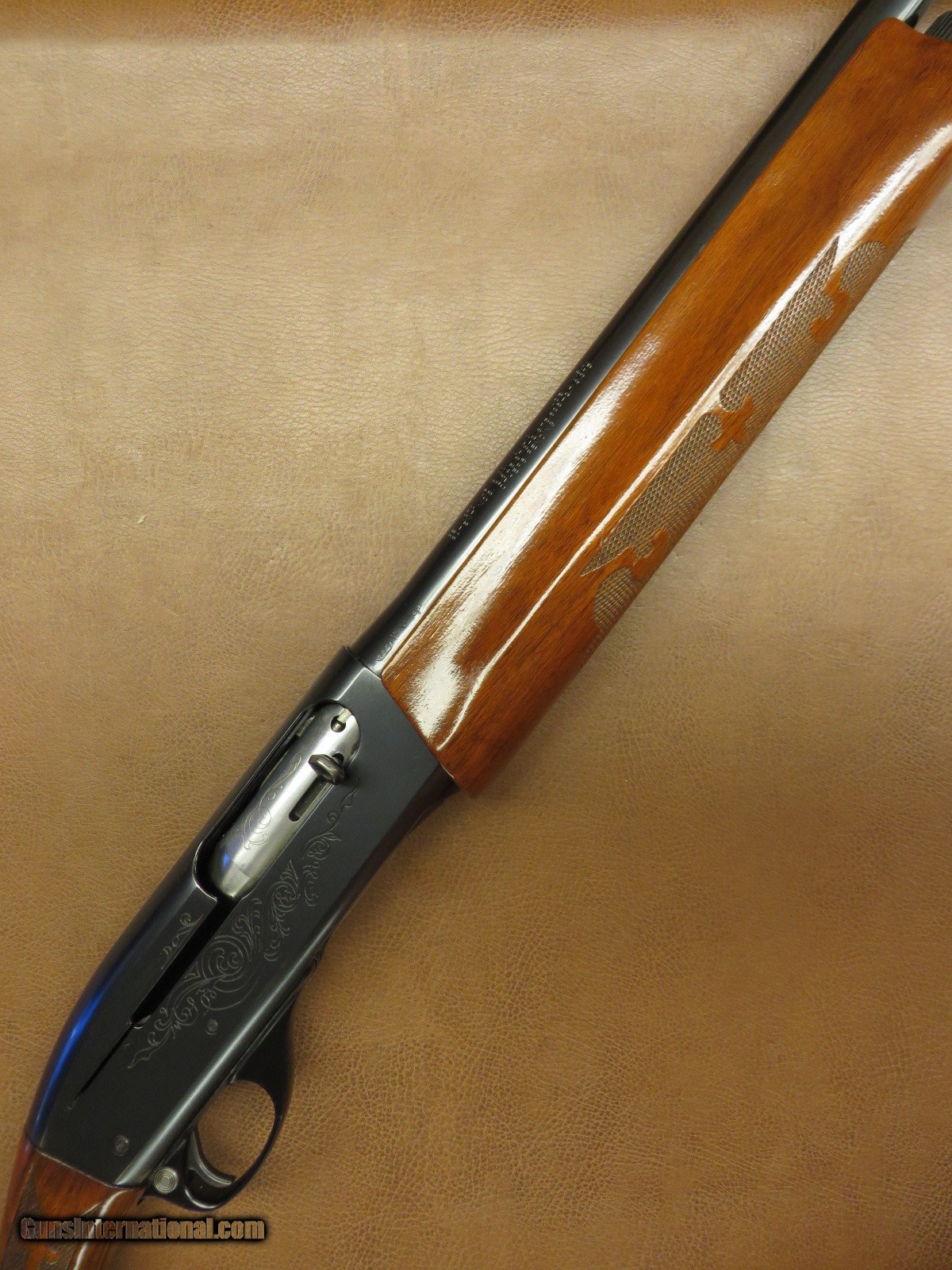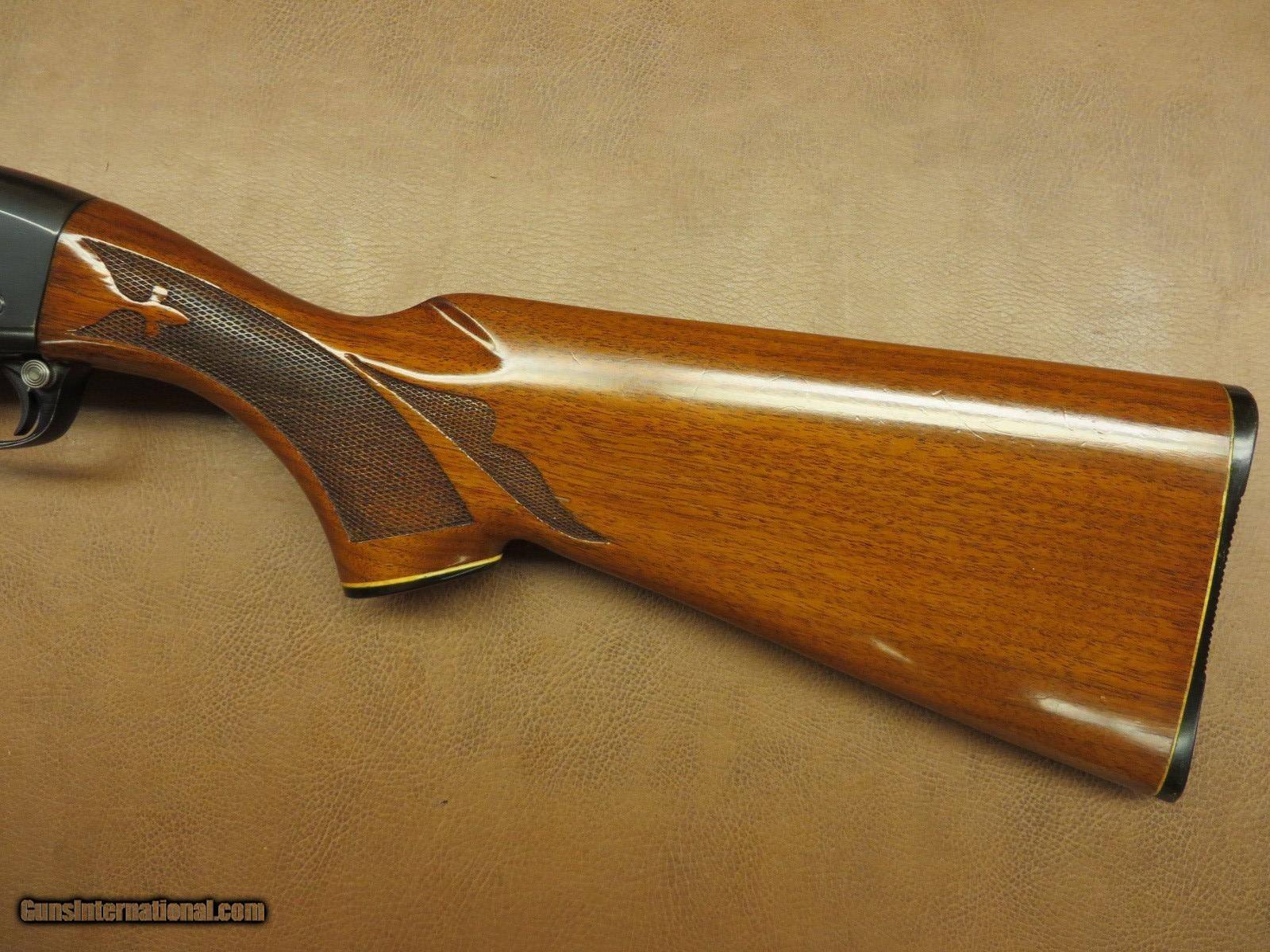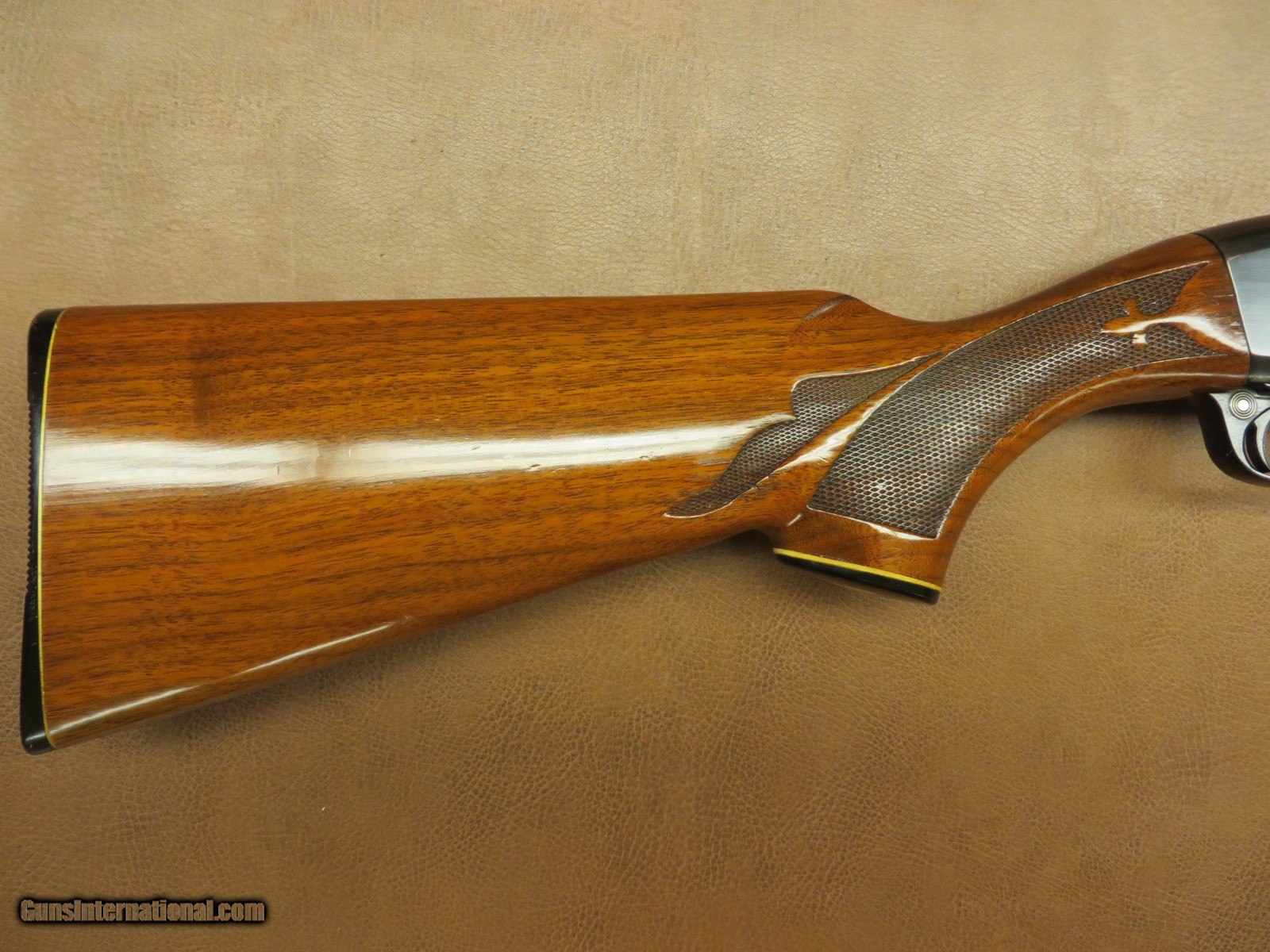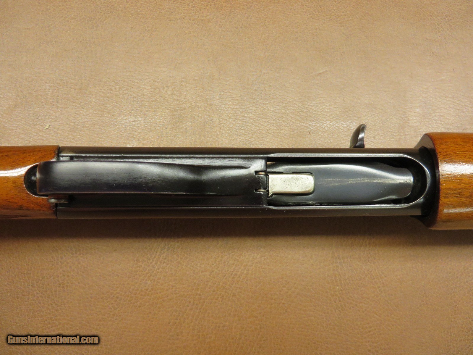 Description: 12 ga. 2 3/4 inch has 26 inch improved cylinder choke plain barrel. Engraved receiver serial number 497xxxV. High gloss checkered walnut has pistol grip cap and original butt plate. Hairline crack in stock on left side where it meets the receiver. Blue and wood finish are both 95%+. SOLD |