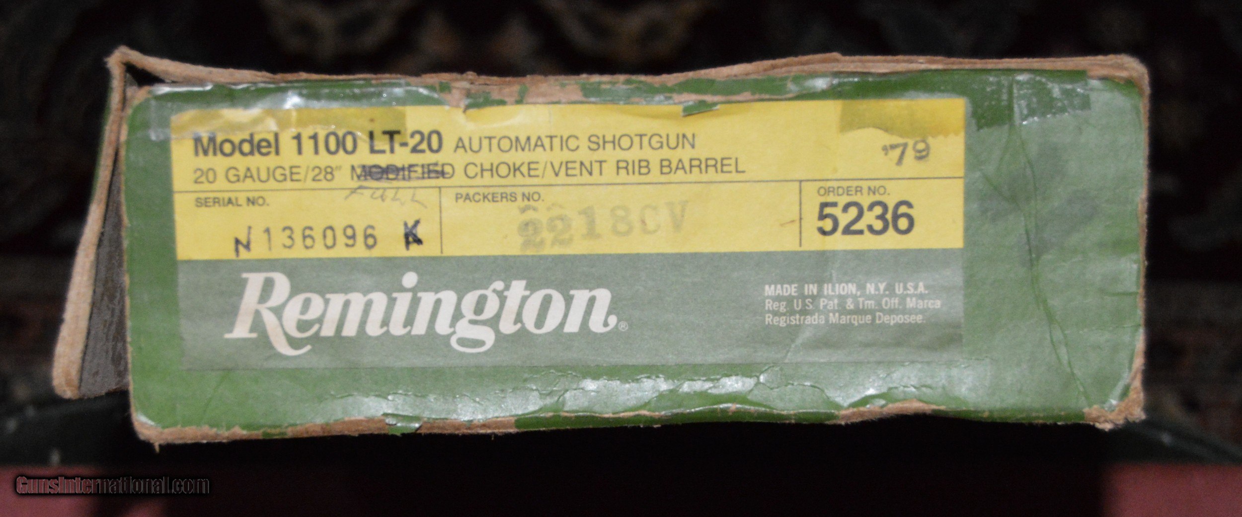 Description: Remington model 1100LT 20 gauge new and unfired in the original box.Built in 1979,this gun has a 28" vent rib barrel choked full.It has outstanding highly figured wood. The stock has the diamond grip cap and the dark red colored wood that was common in the 70s.The gun retains 100% of the original blue and wood finish.The box is the original box and is numbered to the gun.A hard to find gun in this condition. SOLD Manufacturer: Remington Model: 1100LT Serial Number: N136098K Chambers: 23/4 Metal Condition: new Wood Condition: new Bore Condition: new Action: semi auto Gauge Info: 20ga Butt Pad: facotry buttplate Rib: ventilated Manufacture Date: 1979 Chokes: full |