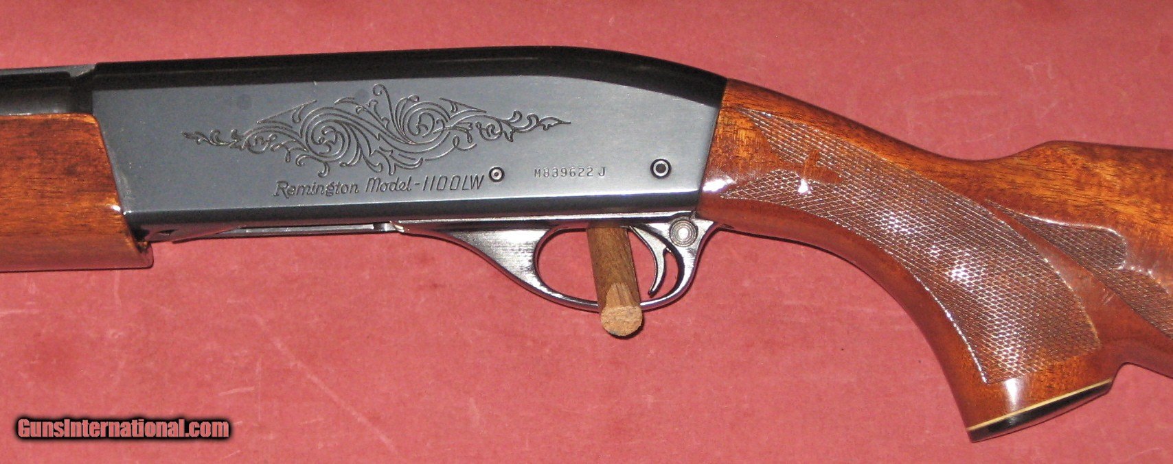 Description: Remington model 1100LW in the scarce 28 gauge.This gun has a 25" vent rib barrel choked improved cylinder.It retains 99% of the original blue and wood finish.This is the early style 1100 with the mahogany colored wood and the diamont grip cap.This would make a great little gun for upland birds.Very hard to find in this gauge and choke combination. SOLD Manufacturer: Remington Model: 1100LW Serial Number: M839622J Chambers: 23/4 Metal Condition: mint Wood Condition: mint Bore Condition: mint Action: semi auto Butt Pad: factory buttplate Chokes: improved cylinder |