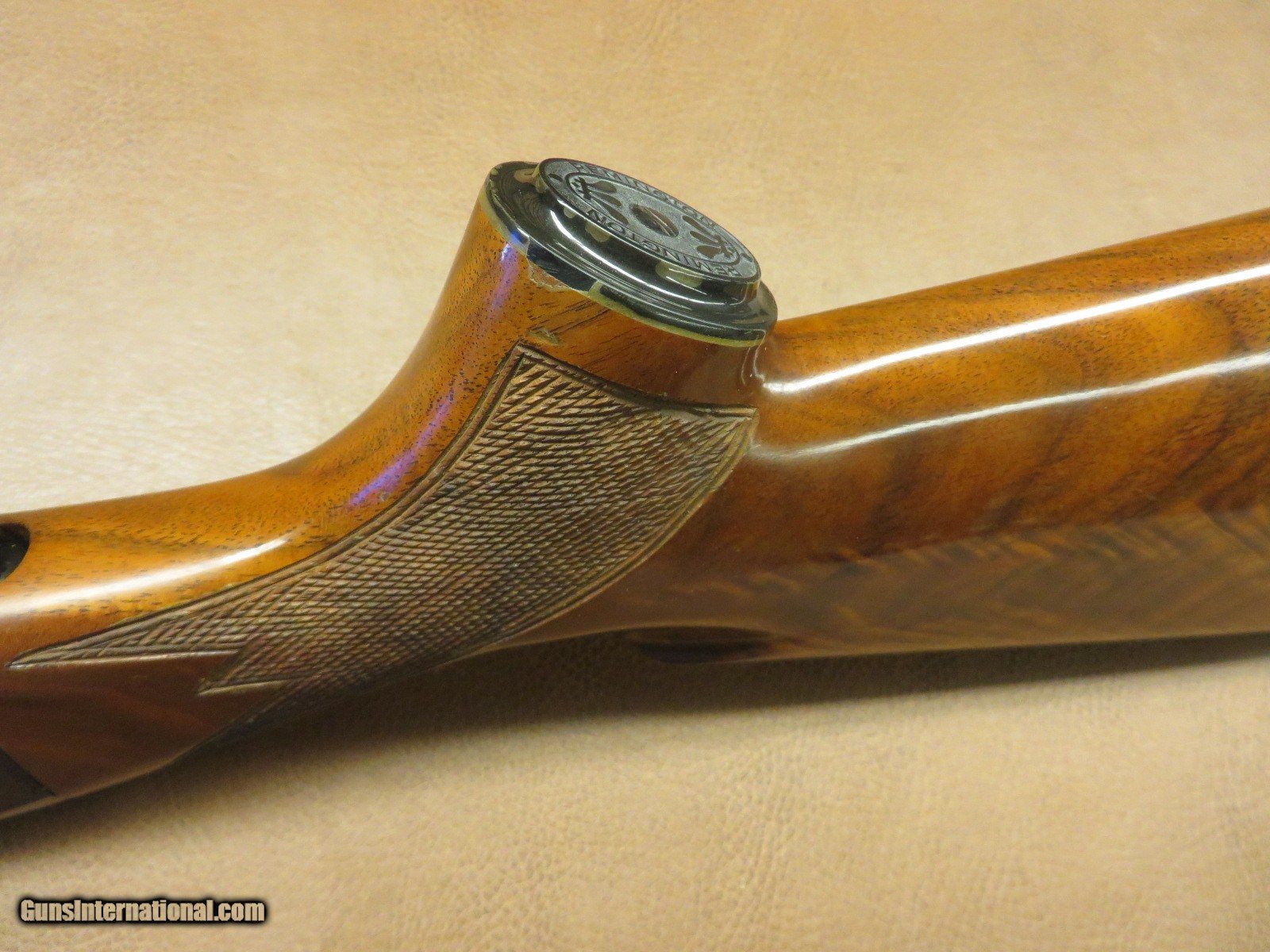 Description: 12 ga. 2 3/4 inch has 30 inch full choke vent rib barrel. Highly figured high gloss checkered walnut Monte Carlo stock has pistol grip cap and a Kick-Eez recoil pad with 14 1/2 inch length of pull. Blue is 97% and the wood is 98%. SOLD |