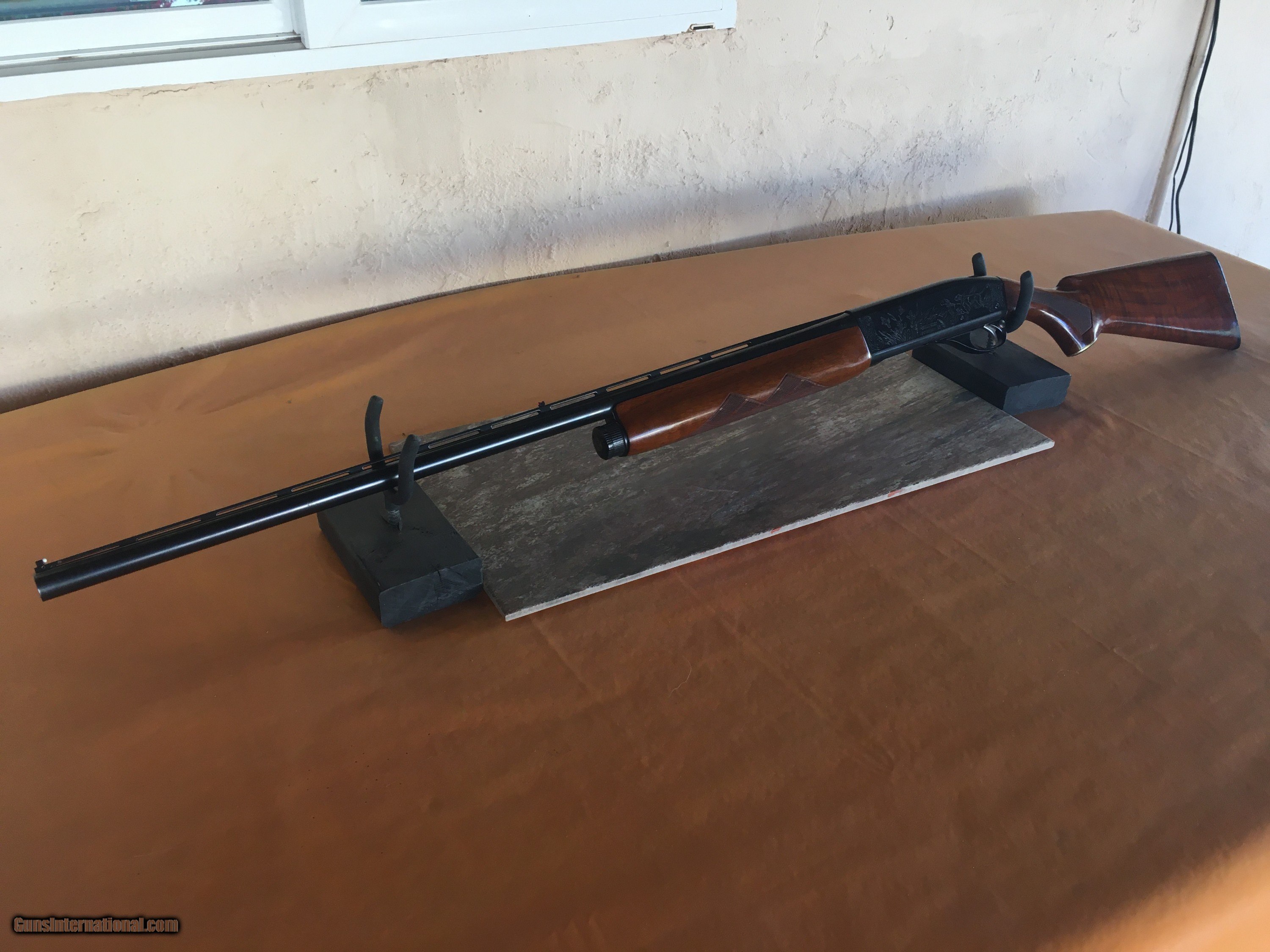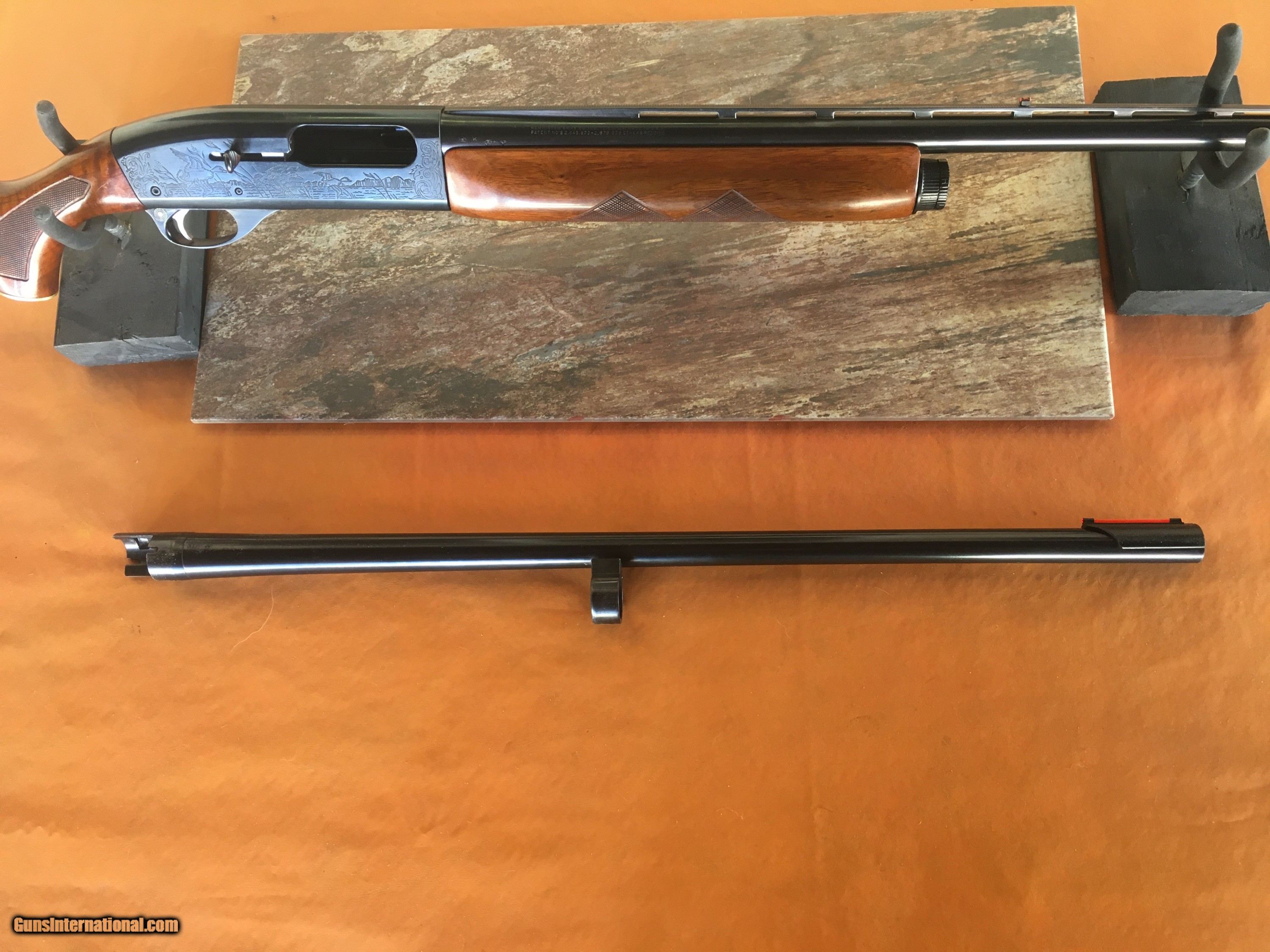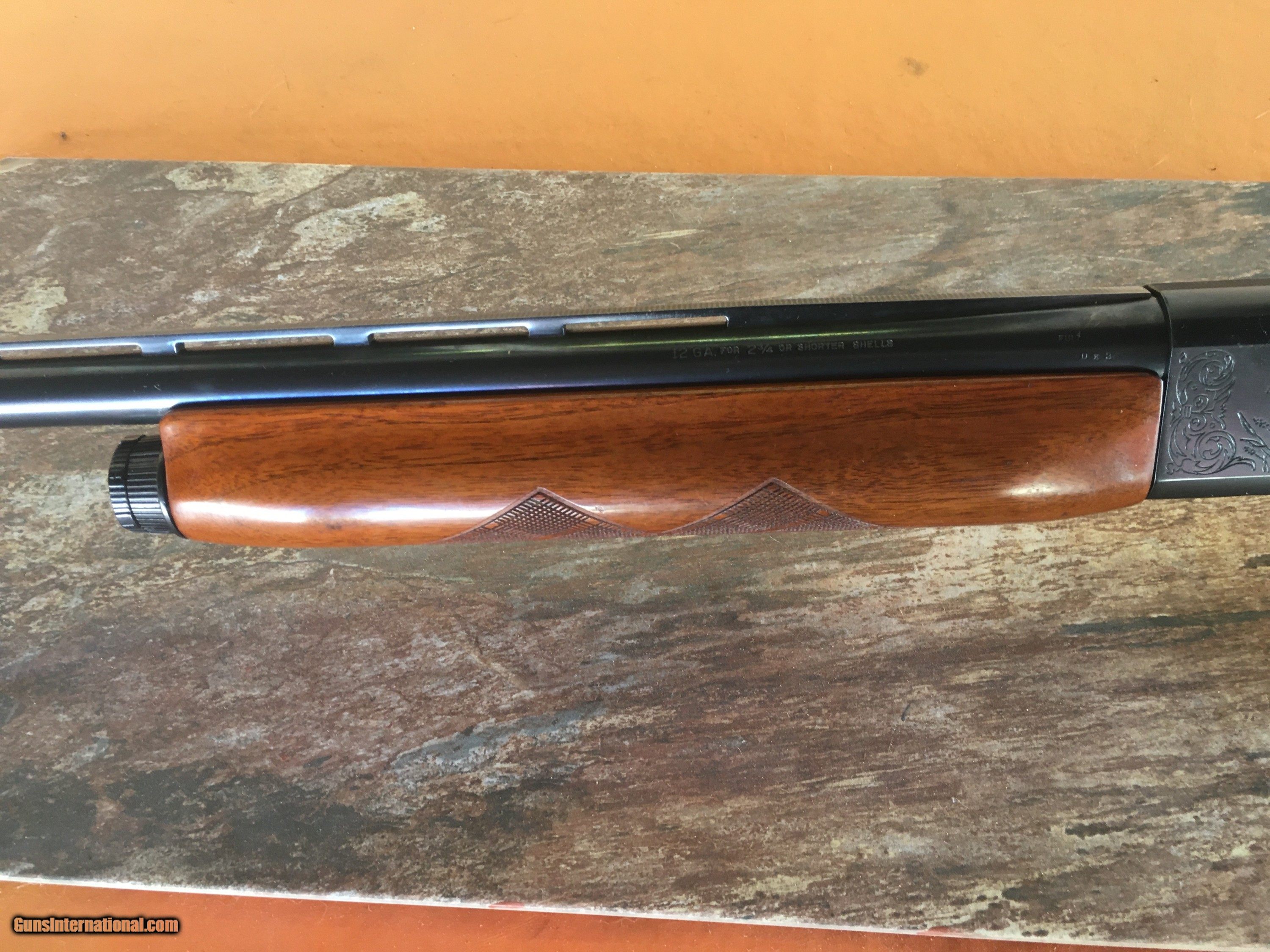 Description: Remington Model Sportsman 58 ADL- Semi - Auto - 12 Ga. Shotgun - Checkered pistol grip style stock and forend with butt plate. Receiver is fully engraved . 30 In. long vented ribbed, full choke barrel with mid and muzzel bead sights. Gas operated with 3 plus 1 capacity. 12 Ga. x 2.75 . Barrel and receiver are retaining 100% bluing. Bores are clean and bright. Stock and forend are in excellent condition with minimal handling marks . Includes a new soft sleeve . Overall condition is excellent appears to have had very little use. Barrel codes indicate this one was manufactured in 1963. Rare to find in this type of excellent condition. Nice addition to any collection. Includes a plain, full choke shortened ( 25.5 in. long ) extra barrel with new Williams Hi -Viz orange front sight. We can ship to C&R or to your FFL dealer at a flat rate of $50.00 S&I to lower 48 states. SOLD Curio/Relic: Yes Shotgun Gauge: 12 Gauge Manufacturer: Remington Model: Sportsman 58 ADL Serial Number: 138425V Barrel Length: 30 In. Condition: Excellent Metal Condition: Excellent Wood Condition: Excellent Bore Condition: Clean/ Bright Action: Semi Butt Pad: Very Good Weight: 7 lbs Sights: Bead Chokes: Full |