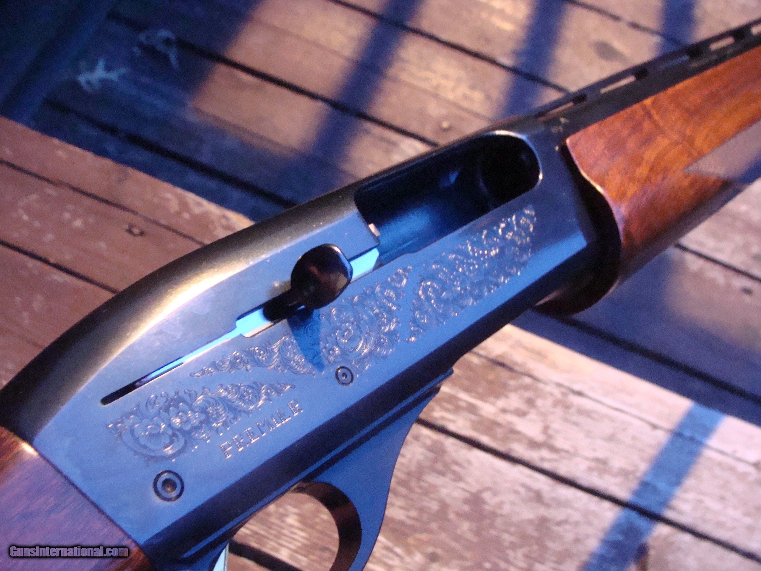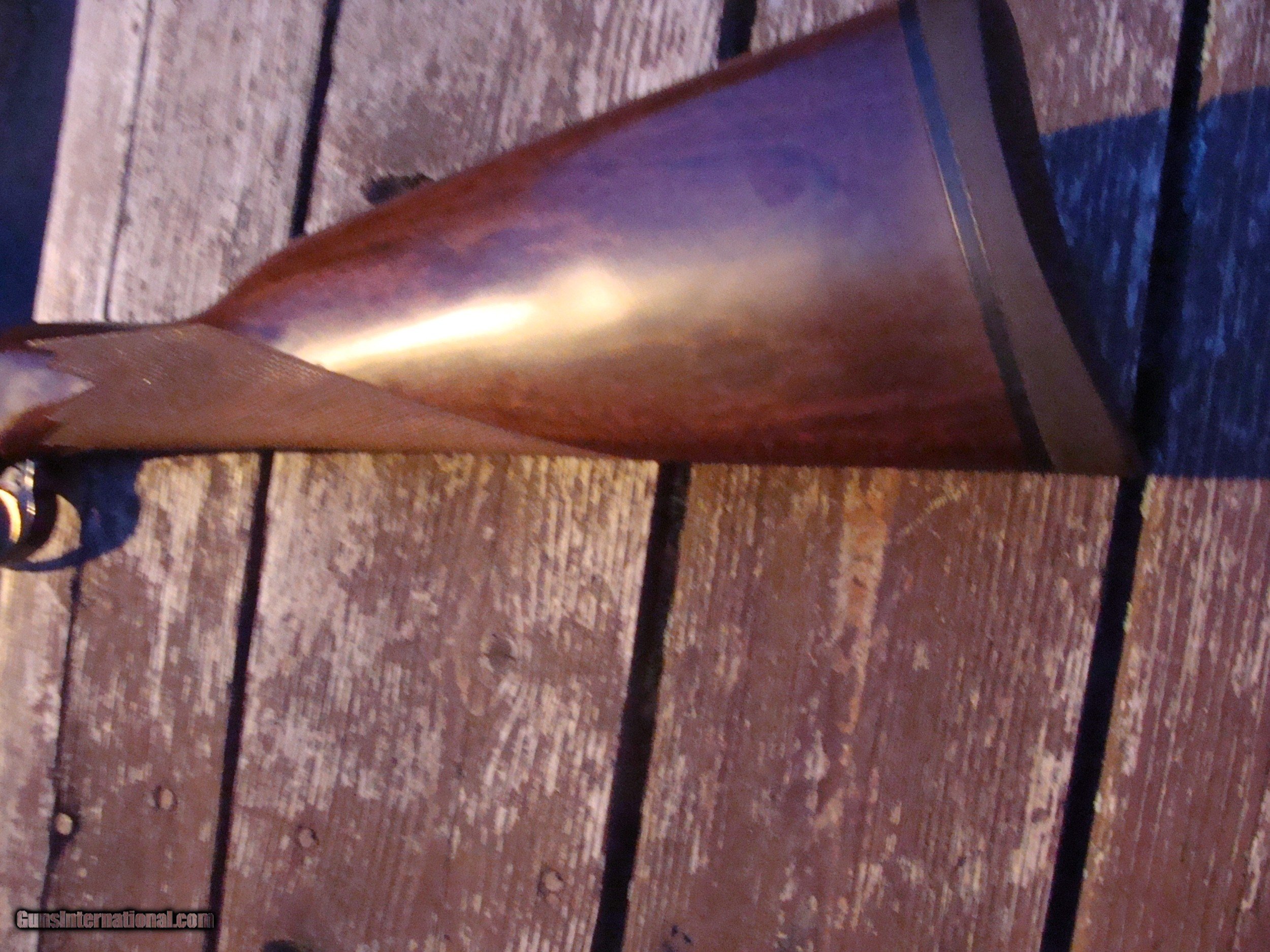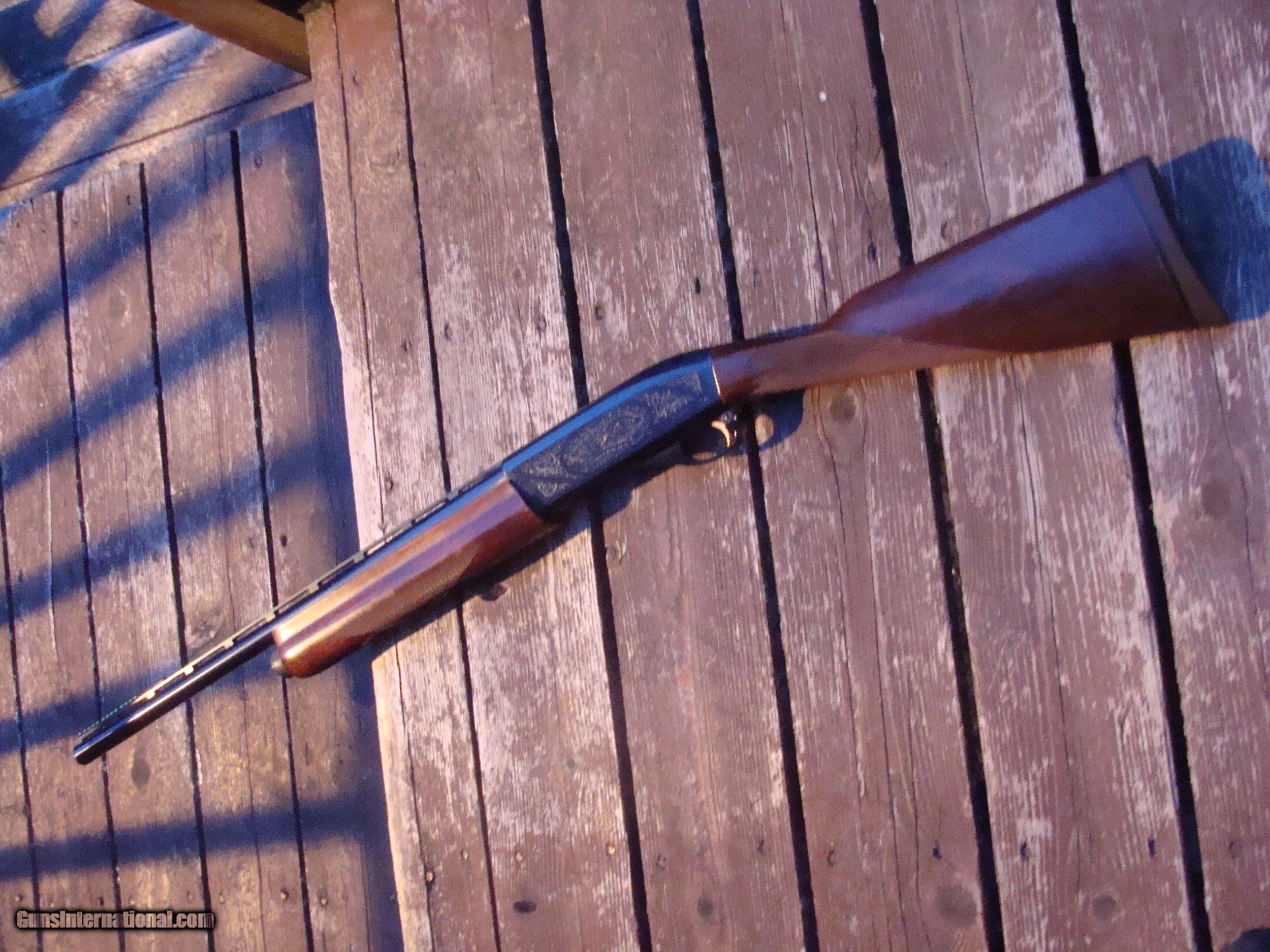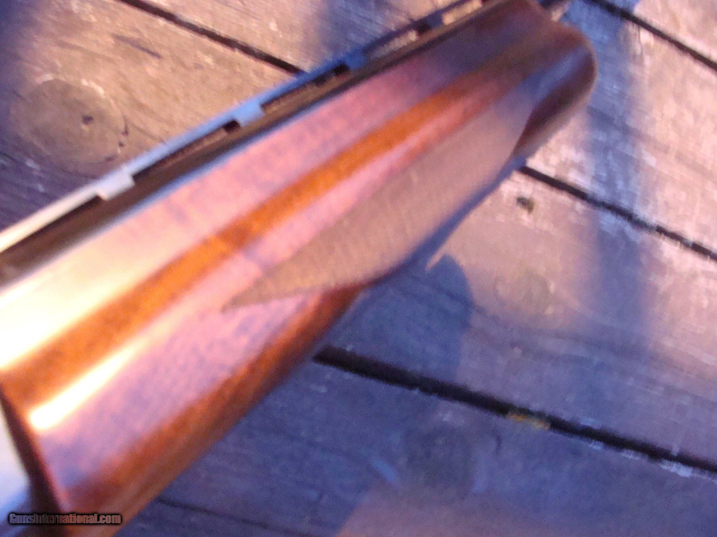 Description: Unuusal configuration; both the unique and sought after "Special or Special Field" handsome straight stock with short 23" barrel and screw in choke in the uncommon combination of 11 87 model designation (not 1100) with the "Enhanced" meaning engraved receiver. A high vis sight as been added as a front bead. Gun has had little use and is between 90 and 95% cond. This is a 12 ga. gun. No meaningful marks or flaws, scratches of dings or other. Overall lenght a little under 44" and LOP to factory pad 14 1/4" Barrel is marked "light contour" and will handle both 2 3/4 and 3" shells. This is the only one we have seen like it. WE ARE AN FFL 01 IN THE NORTHEAST WHERE MANY FINE US MADE GUNS WERE PRODUCED AND WE OFTEN GET SOME FAIRLY HARD TO FIND AND HARDLY USED GUNS. WE HAVE OVER 1500 SALES ON ALL SITES WITH AN A+ RATING ON ALL (WE ALSO KEEP AN INVENTORY OF OLDER PERIOD CORRECT SCOPES; CALL WITH NEEDS) WE MOSTLY PICK VERY CLEAN GUNS, PRICE THEM FAIRLY AND WORK WITH MODEST MARGINS WE ARE HAPPY TO TAKE CONSIGNMENT GUNS AND COLLECTIONS OR WILL BUY YOURS OUTRIGHT. WE SOMETIMES ARE EMPLOYED FOR ESTATE PURPOSES AND VALUATIONS. CT RESIDENTS MUST CONTACT US TO UNDERSTAND OUR IN STATE TRANSFER POLICIES. WE CAN TAKE A CREDIT CARD HOWEVER THERE IS A 3% ADD ON BASED ON THE TOTAL FOR USE OF A CARD. IT IS ALWAYS THE BUYERS RESPONSIBILITY TO GET US A COPY OF YOUR RECEIVING FFL'S LIC AND WE REQUIRE A COPY OF YOUR PHOTO ID BEFORE THE GUN SHIPS YOU MUST CALL YOUR FFL.WE DO NOT CALL FOR YOU. Shipping $ 39.00 to most locations exclusive of HI and AK SOLD |