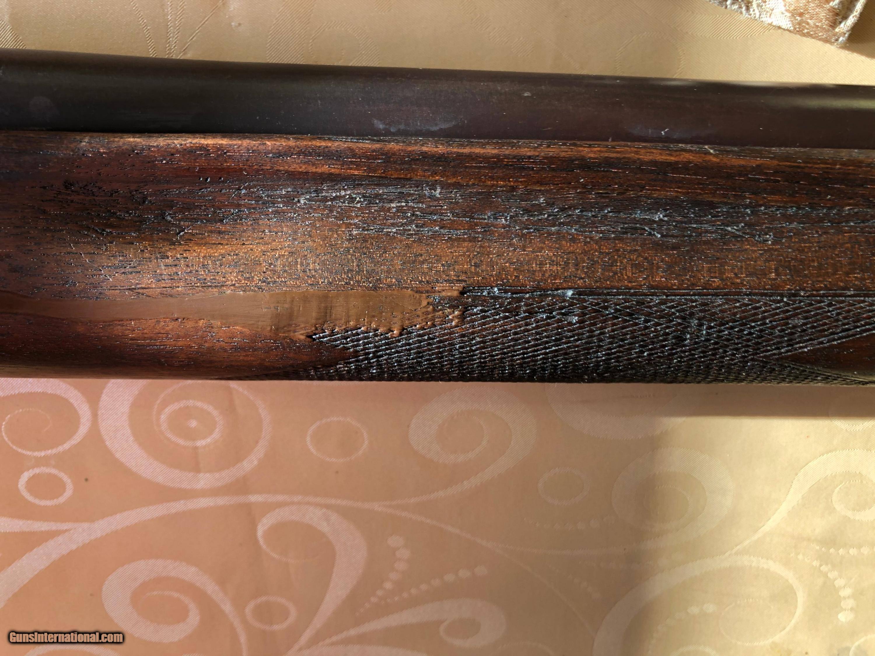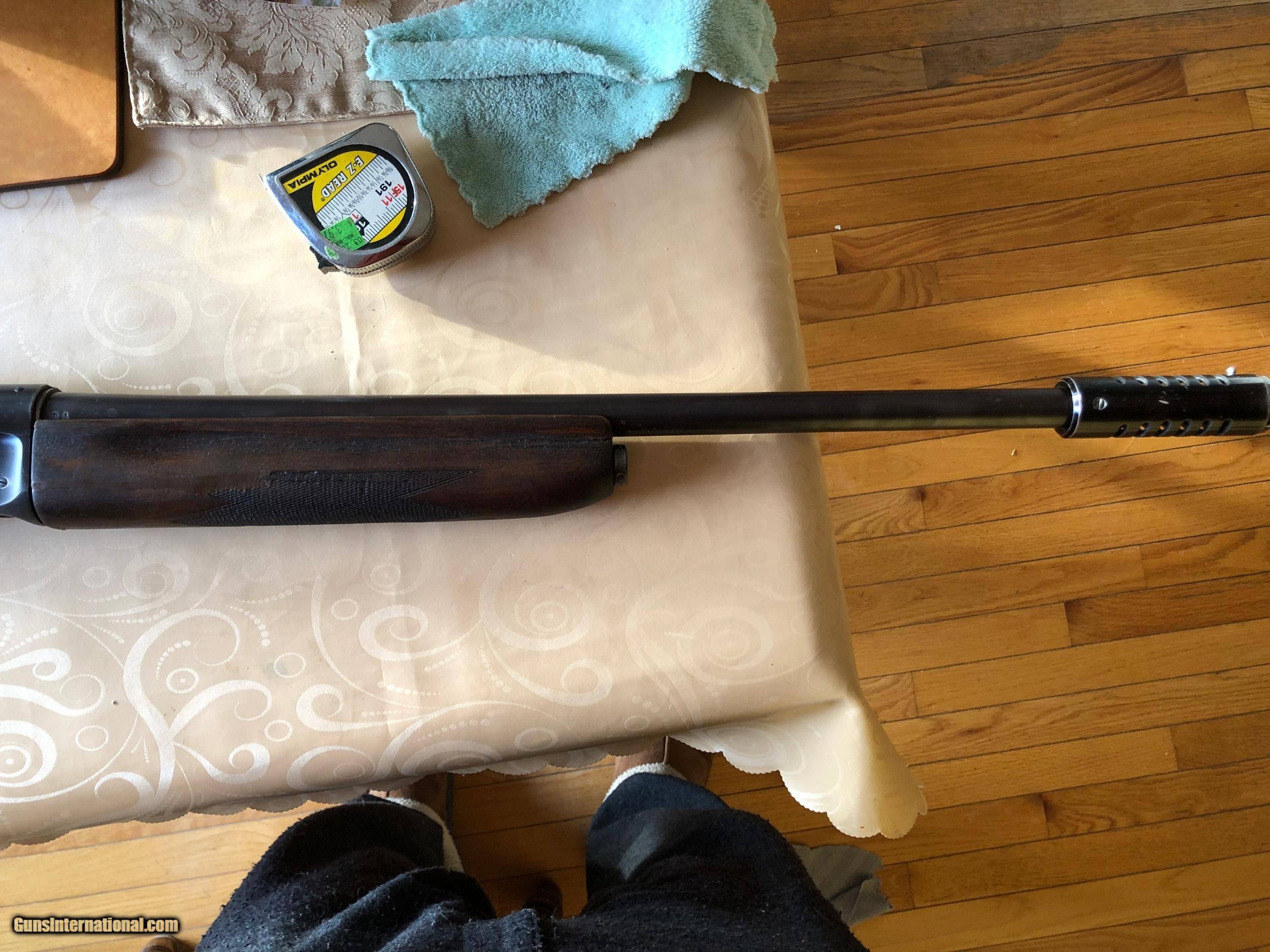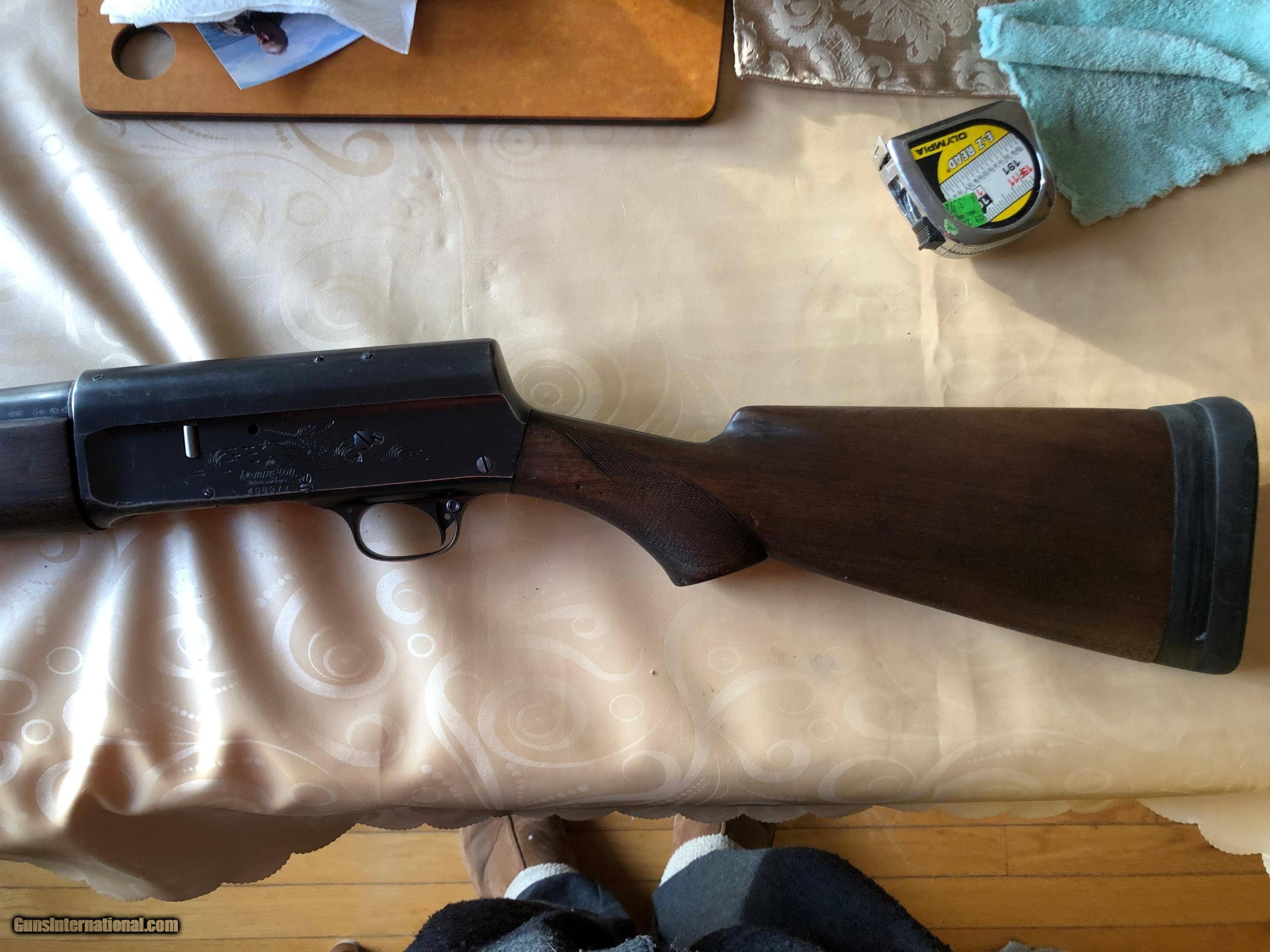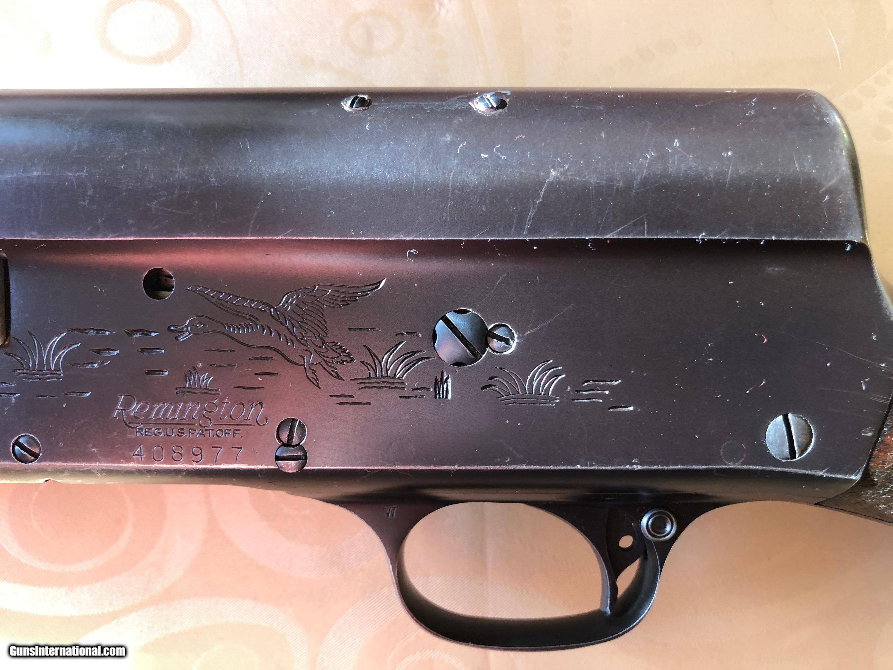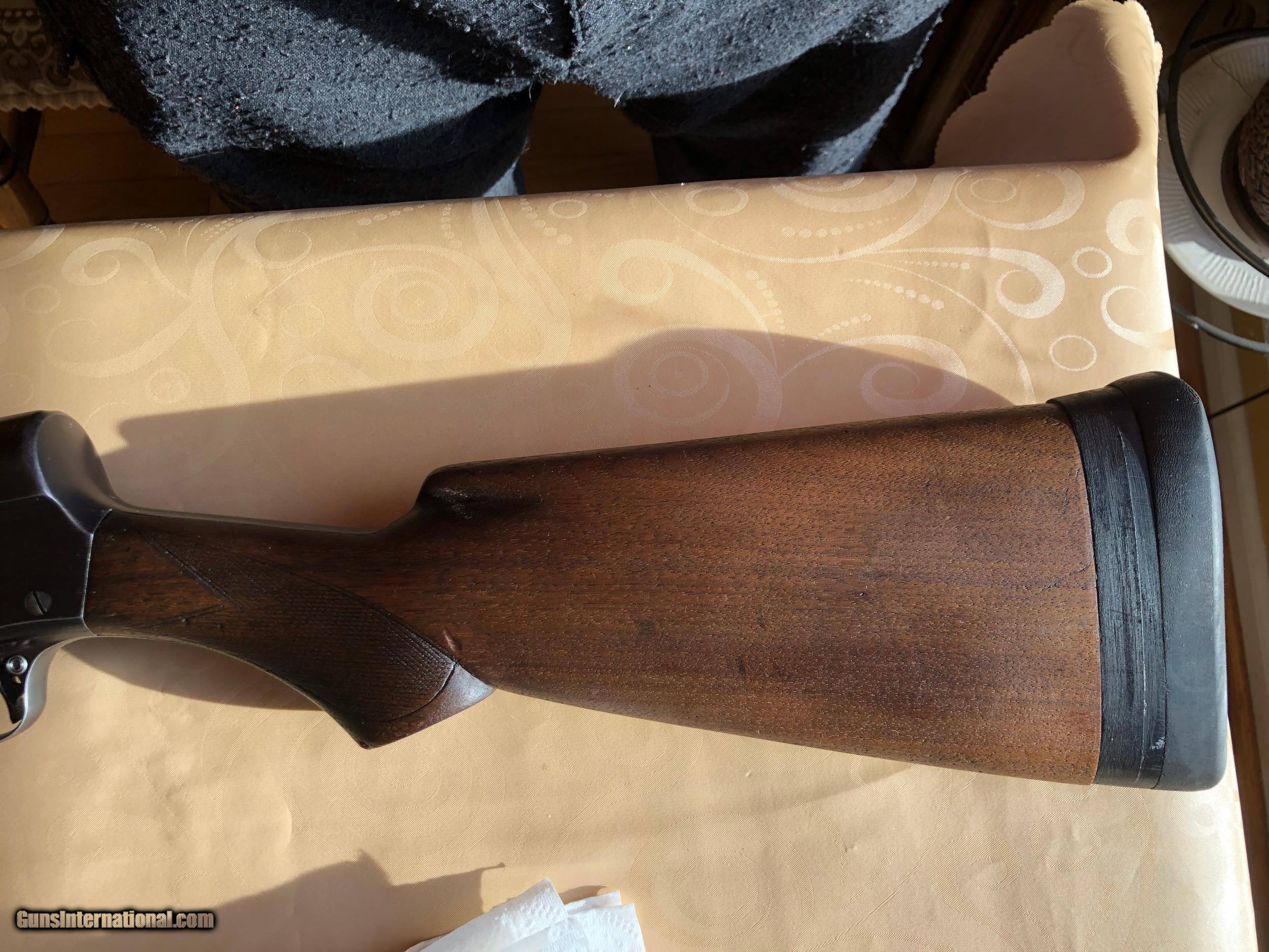 Description: Remington 12 gauge "The Sportman", 26" barrel includling bafle. owned for 35 years. Used for deer and pheasant. Works fine & in good shape. Forestock has been glued by gunsmith, see pic SOLD Shotgun Gauge: 12 Gauge Manufacturer: Remington Model: Model 11? Serial Number: 408977 Condition: good Metal Condition: good Wood Condition: good |