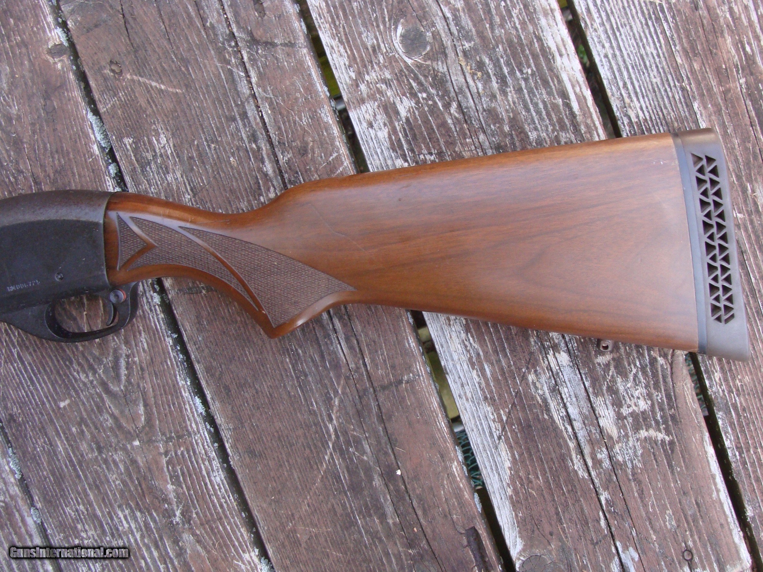 Description: Usually offered for hundreds more we are offereing this SP 10 (Blue/wood stock, not cammo) with 30 " barrel in correct factory box with choke tool (no extra tubes; only the one in the barrel). Gun is in lightly used condtion with a lttile blotchyness top of receiver but not rusted or pitted and no loss of blue or stock finish. Below is the description for these from Remington's when it was last avail. The slug barrel has been spoken for and is not avail. "For those who do not know the history; Remington originally bougth the patent from Ithaca and then improved it edicated waterfowl and turkey hunters have looked to the hard-hitting, extended-range Model SP-10 Magnum autoloading shotgun since its introduction in 1989. This high performance 10-gauge delivers superior patterns at maximum ranges and with its soft-recoiling gas operating system, less felt recoil than most 12 gauge, 31/2-inch shotguns in the marketplace today. Joining this family of special purpose shotguns for 2007 is the Model SP-10 Magnum Waterfowl, fully camouflaged with the new Mossy Oak® Duck Blind™ pattern and optimized for waterfowl hunting with its special Briley® Choke Tube System and HiViz® Fiber Optic Front Sight. This version of America’s most popular, gas-operated 10-gauge features a 26-inch vent rib Rem™ Choke barrel; rugged, weather-defying synthetic stock and fore-end; magazine cap and rear swivel studs for attachment of the included black padded sling; and recoil-taming R3® Recoil Pad. At the core of this magnum 3 1/2-inch gun is the corrosion-resistant gas-operating system featuring a non-traditional design that involves movement of the cylinder, not the piston, making this autoloader more comfortable to shoot. The Model SP-10 Magnum Waterfowl is effective whatever the hunting environment – marshes, potholes, bottomland or corn fields Partner this high performance shotgun with the new heavy-density Wingmaster HD™ loads from Remington and waterfowl don’t have a chance. Waterfowl hunting requires specialized equipment and this autoloader fills the niche. The Model SP-10 Magnum Waterfowl shotgun is available at a suggested retail price of $1853. Please visit oursite at remington for a complete listing of Model SP-10 shotguns.Offerings for 2007 are as follows" Remington Model SP-10 Model SP-10 Magnum Waterfowl Gauge 10 (3 1/2-inch) Mag. Capacity 2 BBL Length 30 inches Barrel Type Vent Rib/Rem Choke Sights Ivory Front Bead Steel Mid Bead Metal Overall Length 47 1/2 inches Length of Pull 14 inches Drop (Comb) 1 1/2 inches Drop (Heel) 2 1/2 inches Stock Stock Average Weight 10 7/8 lbs. SOLD |