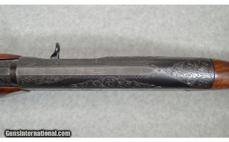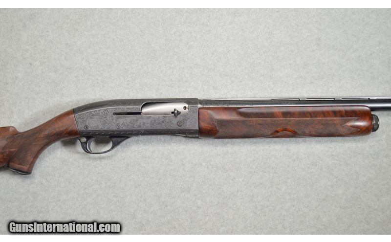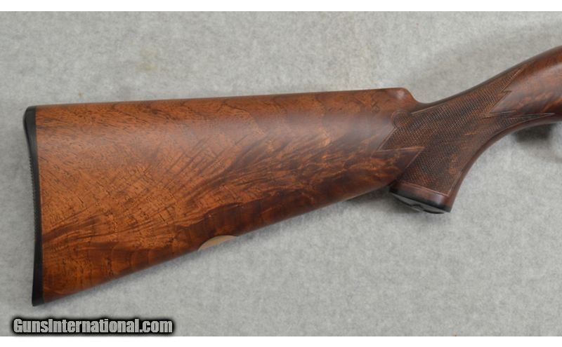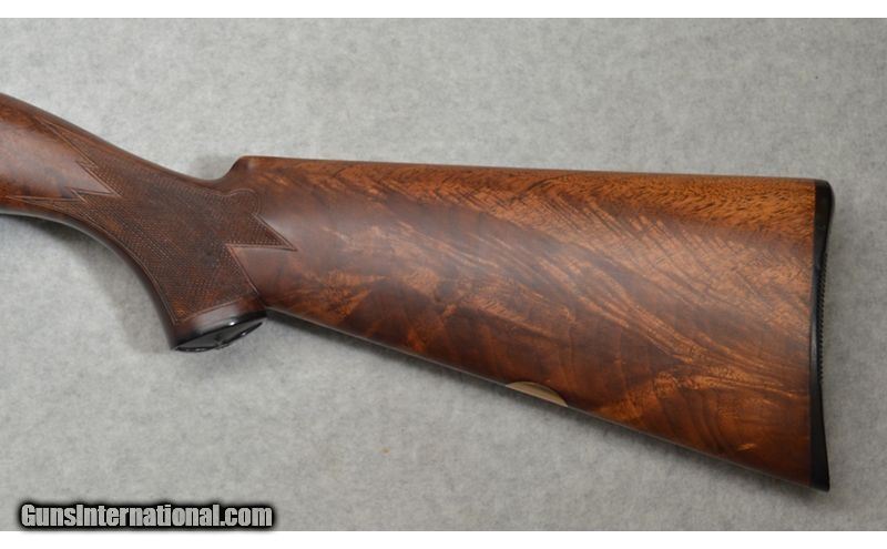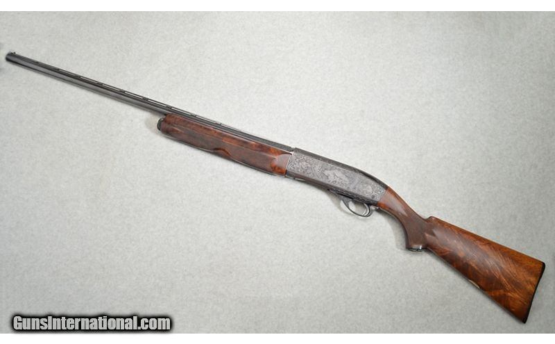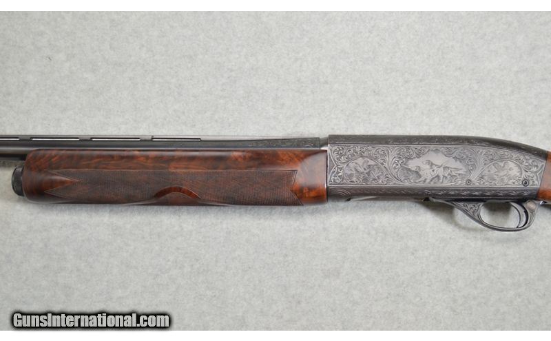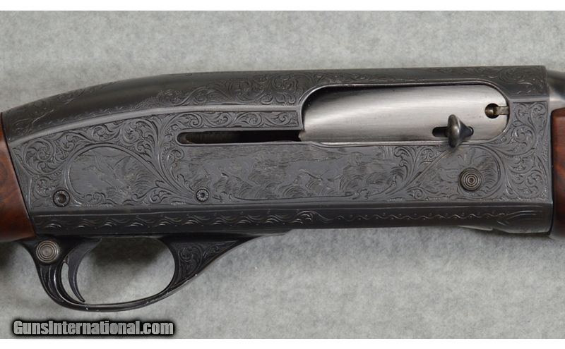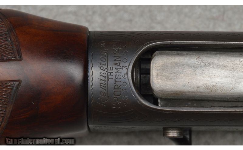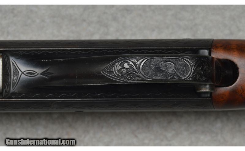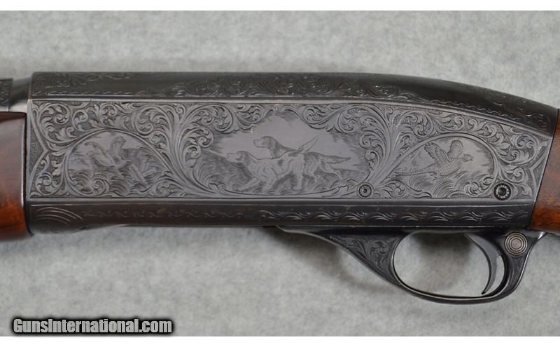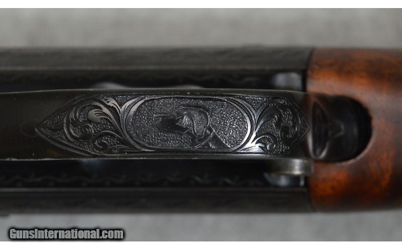 Description: Rare Factory Engraved, Remington Sportsman 48 F-Grade, 16 gauge shotgun is in excellent condition. It features master engraving on the frame and the top of the barrel. Both the left and right side feature two dogs and multiple different game birds in a grass scene. It has a 28" blued barrel and a wooden fore end and stock with a checkered pattern on the fore end and grip. It has minor handling marks on the barrel, frame and stock. SN: 3506306 16 Gauge SOLD Chambers: 2 3/4" or shorter Metal Condition: Excellent condition with handling marks Wood Condition: Excellent condition with handling marks Bore Condition: Clean and shiny Barrels: 28 Stock Dimensions: LOP 14 Fore End: Wooden with a checkered pattern Butt Pad: Remington butt plate Weight: 7lbs 2oz Chokes: cylinder Item Location: Fort Worth, TX |