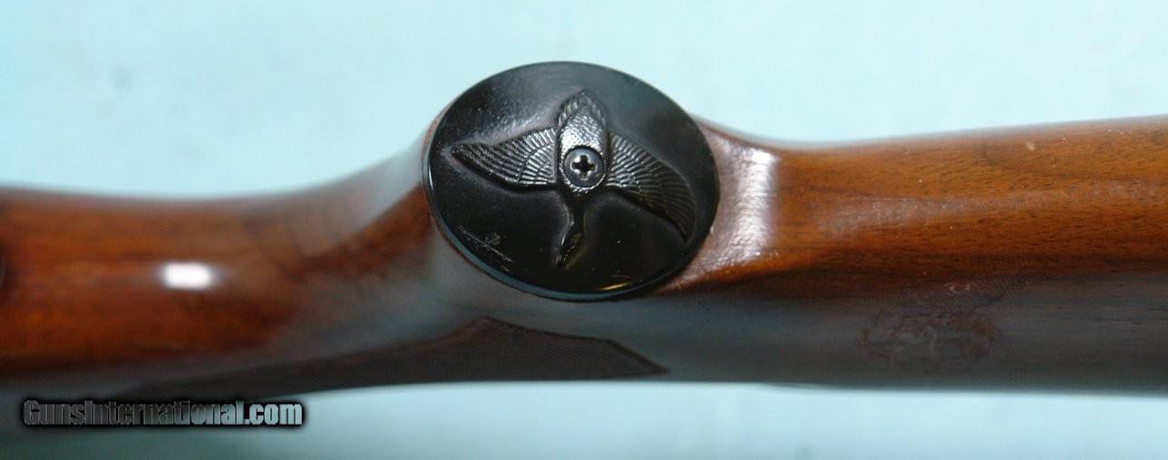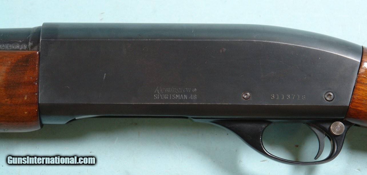 32893- REMINGTON SPORTSMAN 48 SEMI-AUTO 12 GA. SHOTGUN MFG. 1954. 26” Improved Cylinder choked barrel with 2 ¾” chamber. Checkered walnut stock and forend. 14” pull. All original excellent overall with approximately 98% blue. Wood with the original finish with modest use and with original factory hard rubber butt plate. Tight working order and bright bore. Nice gun for the money. $425.