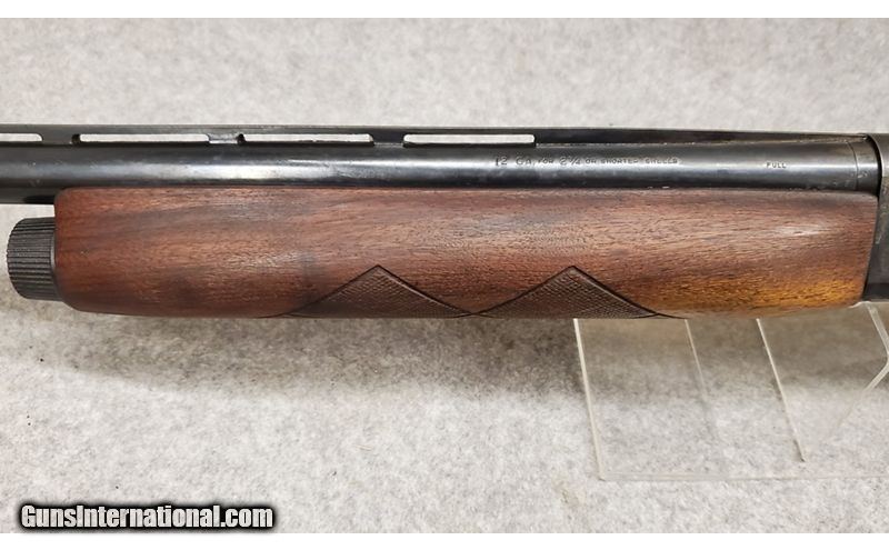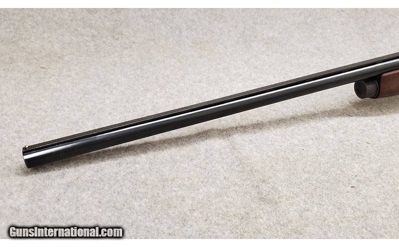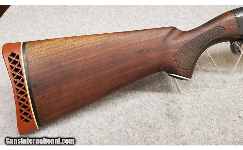 Description: The Model 58 was Remington's first gas-operated, semi-automatic shotgun. It featured a magazine cap that you turned to adjust the size of the gas ports to allow the appropriate amount of gas to cycle the action for light and heavy loads. Because the gun was introduced in 1956, when everything was "-A-Matic," the feature was of course called "Dial-A-Matic" load control. The Model 58's gas system was located inside the magazine tube, limiting its magazine capacity to two shells. It came in 12, 16, and 20 gauge, and it contained many shared parts with the Remington 870 12 Gauge SOLD Chambers: 12 GA Metal Condition: Ok Wood Condition: Good Bore Condition: Great Barrels: 30 Stock Dimensions: 15" LOP Fore End: Good Butt Pad: Rubber / Great Weight: 8 lbs. 1 oz. Sights: Front Bead Chokes: Fixed Modified Item Location: Berlin |