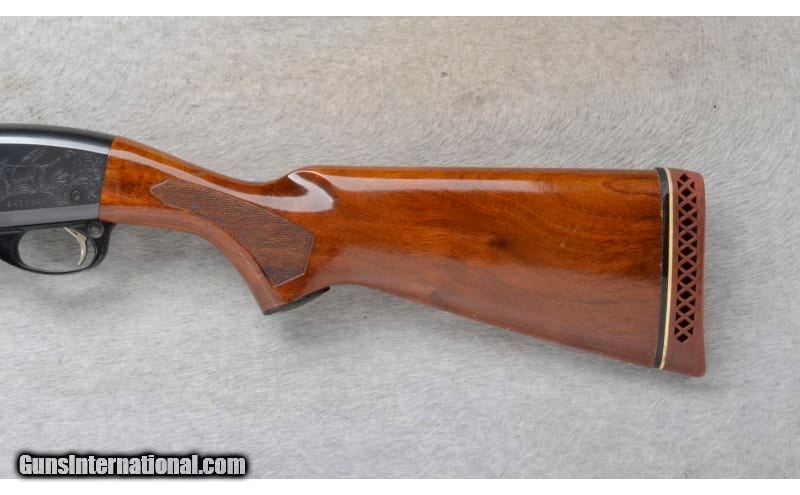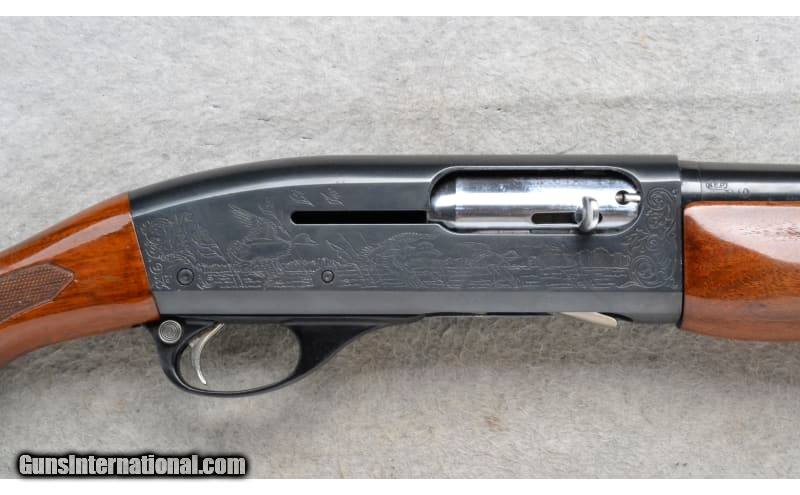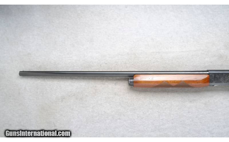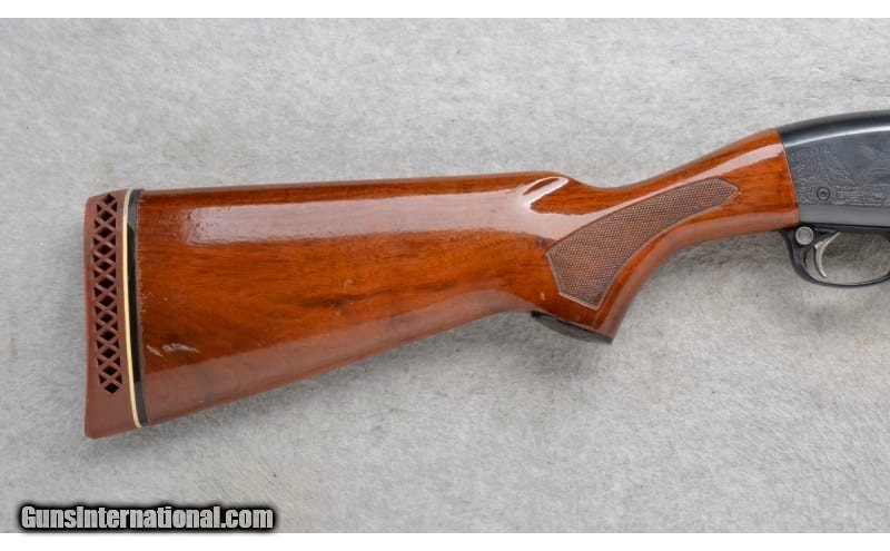 Description: This Remington Model Sportsman - 58 is a right hand semi-auto shotgun in 12 Ga. It has a 30 inch barrel with a metal bead front sight. With a 3 inch chamber it has a fixed Full Choke. The butt stock is a checkered grip walnut pistol grip with a black cap. The forearm is a checkered grip walnut with finger grooves. The receiver is nicely engraved with hunting dog and game birds in flight in outdoor scenes. 12 Gauge SOLD Chambers: 3 inch. Metal Condition: Very Good. Has some minor handling marks. Wood Condition: Good. Some minor handling marks. Finish missing at the recoil pad that appears to have been replaced. May have been refinished. Bore Condition: Shiny. Barrels: 30 inch. Stock Dimensions: LOP 14 inches. Fore End: Checkered grip walnut with finger grooves. Butt Pad: Remington red rubber recoil pad. Weight: 7 Lb. 6 Oz. Sights: Metal front bead. Chokes: Fixed Full. Item Location: Richfield, WI |