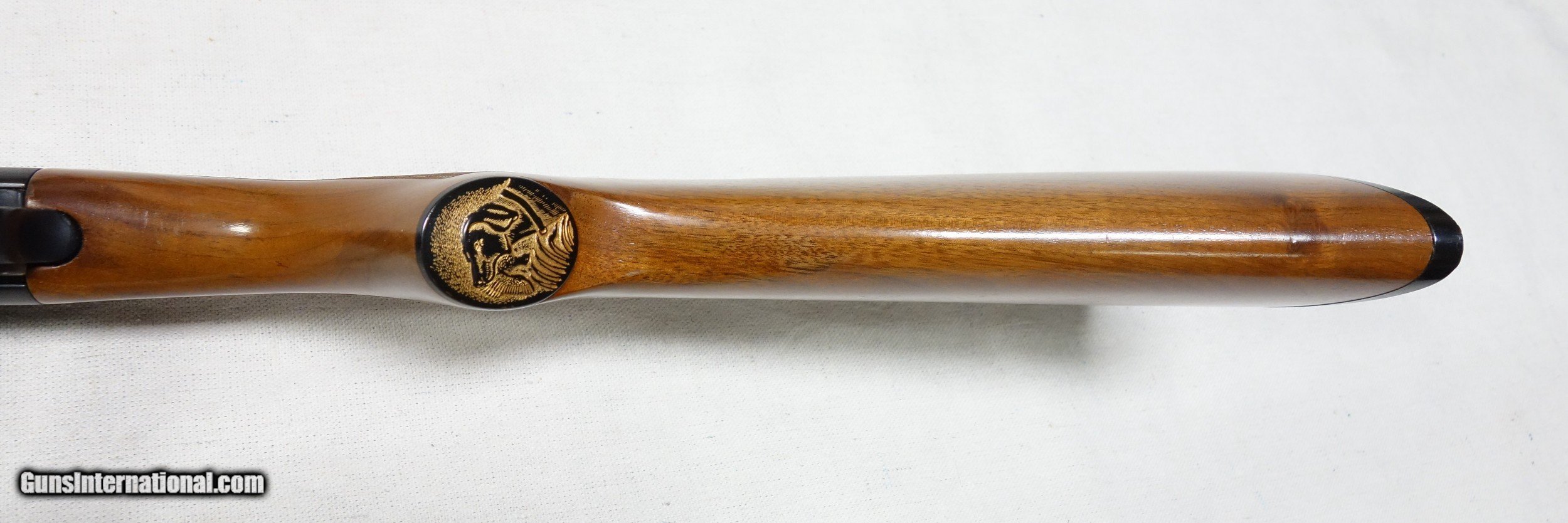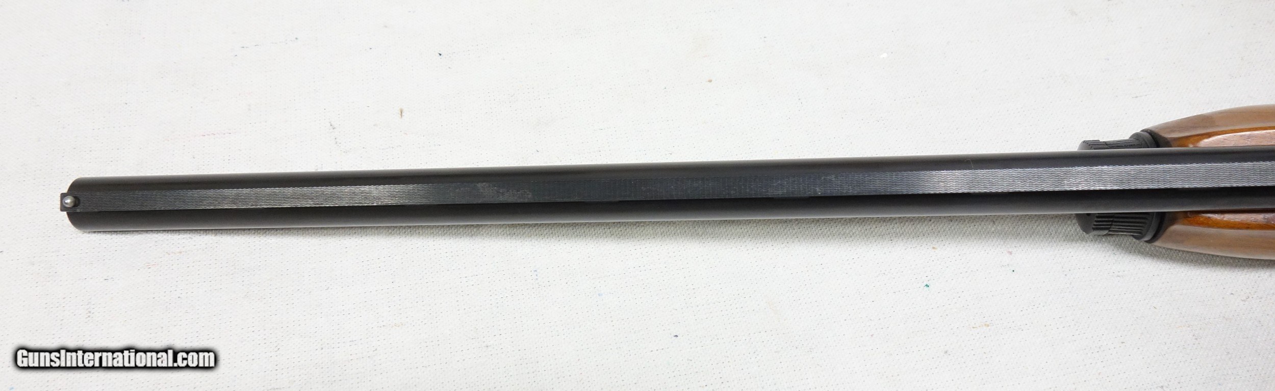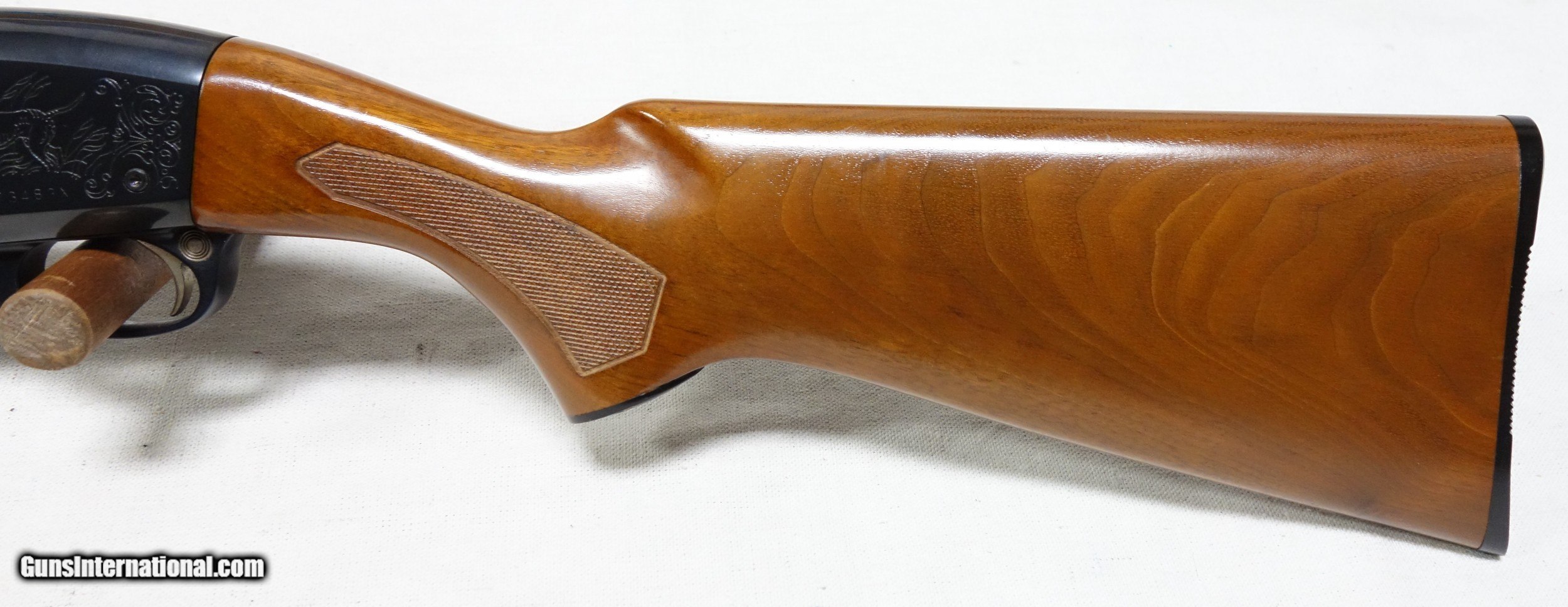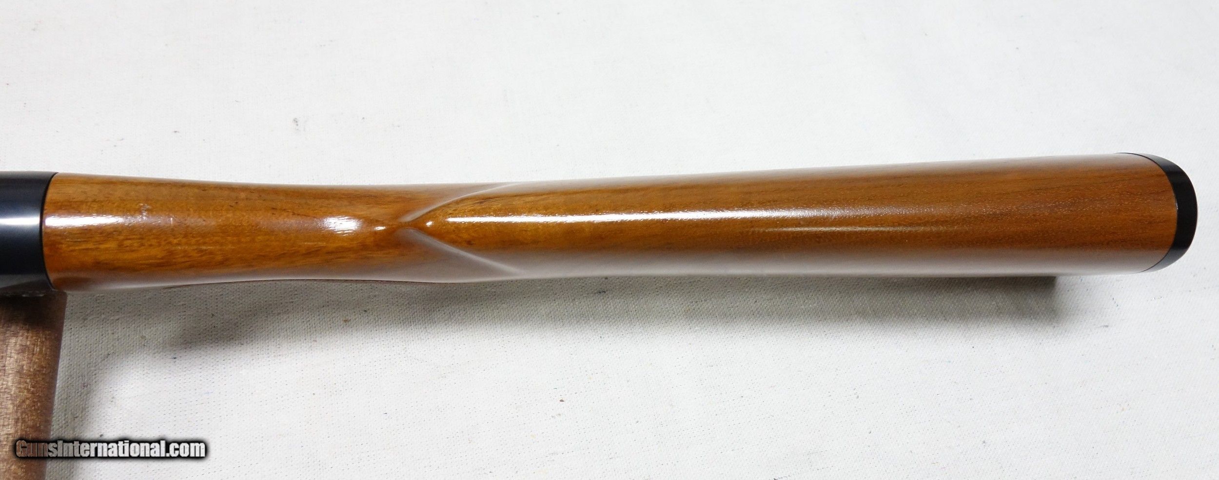 Description: Near mint throughout. Remington 58 20 gauge semi-automatic shotgun. 25" ventilated rib barrel choked IMP CYL. 2 3/4" chamber. S/N 273483X. 99% plus Blue and Varnish. Factory embellished on sides of receiver with simple game scenes. Recoil pressure can be adjusted for Light or Heavy loads with knob dial in front of fore end. The nicest example you will find! SOLD Curio/Relic: Yes |