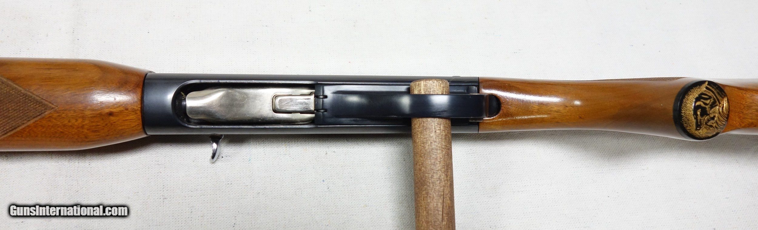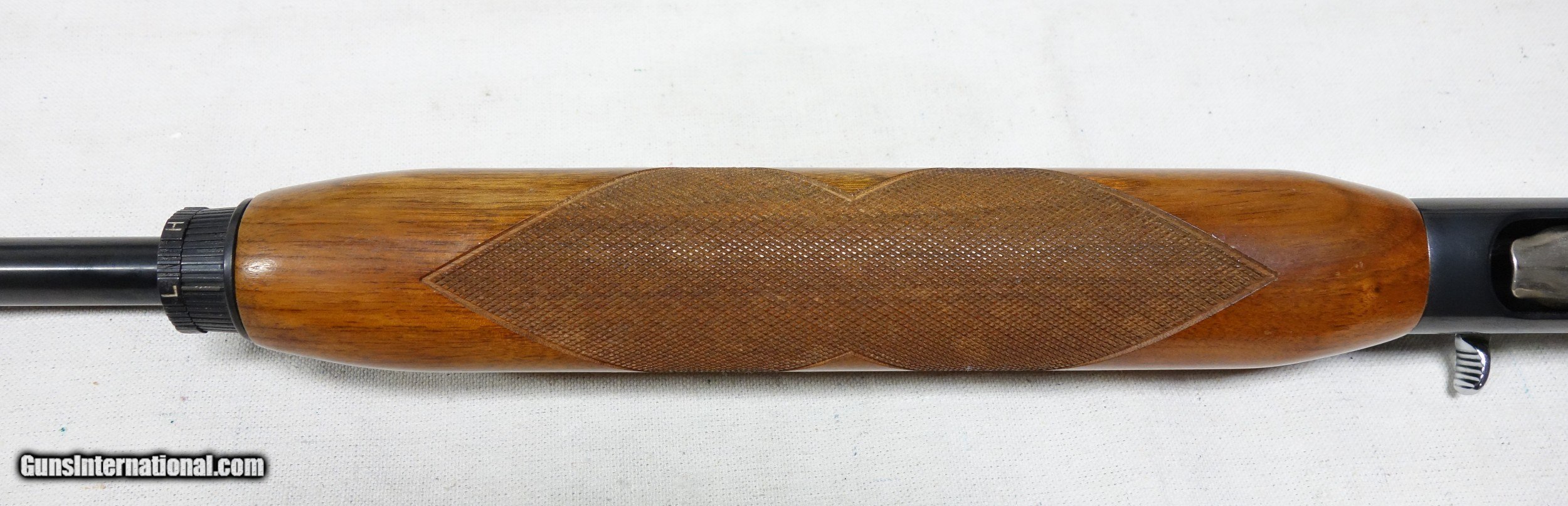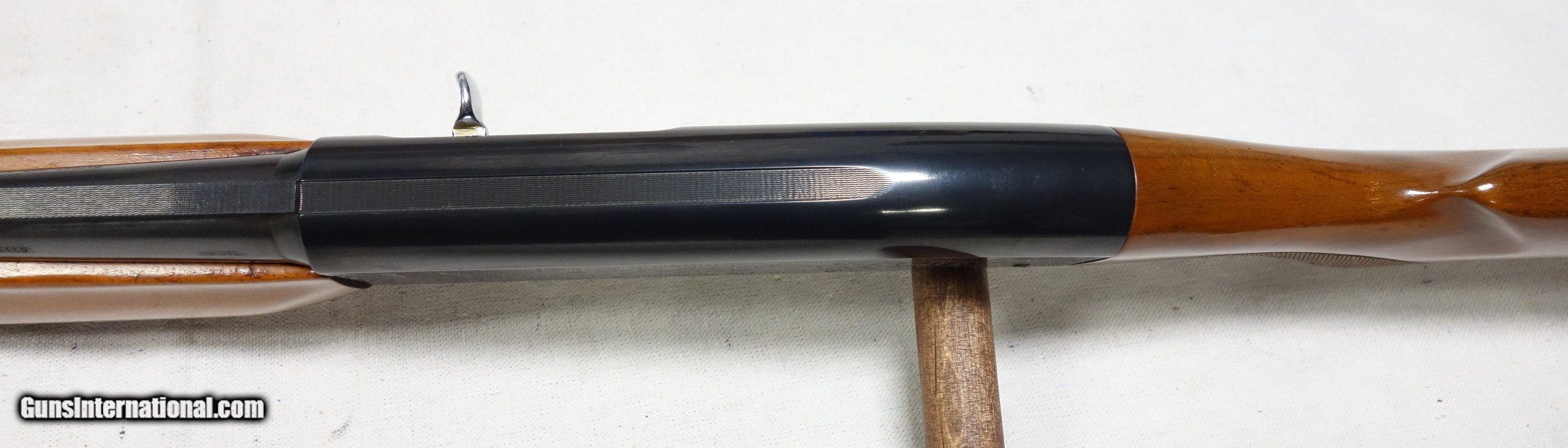 Description: Near mint throughout. Remington 58 20 gauge semi-automatic shotgun. 25" ventilated rib barrel choked IMP CYL. 2 3/4" chamber. S/N 273483X. 99% plus Blue and Varnish. Factory embellished on sides of receiver with simple game scenes. Recoil pressure can be adjusted for Light or Heavy loads with knob dial in front of fore end. The nicest example you will find! SOLD Curio/Relic: Yes |