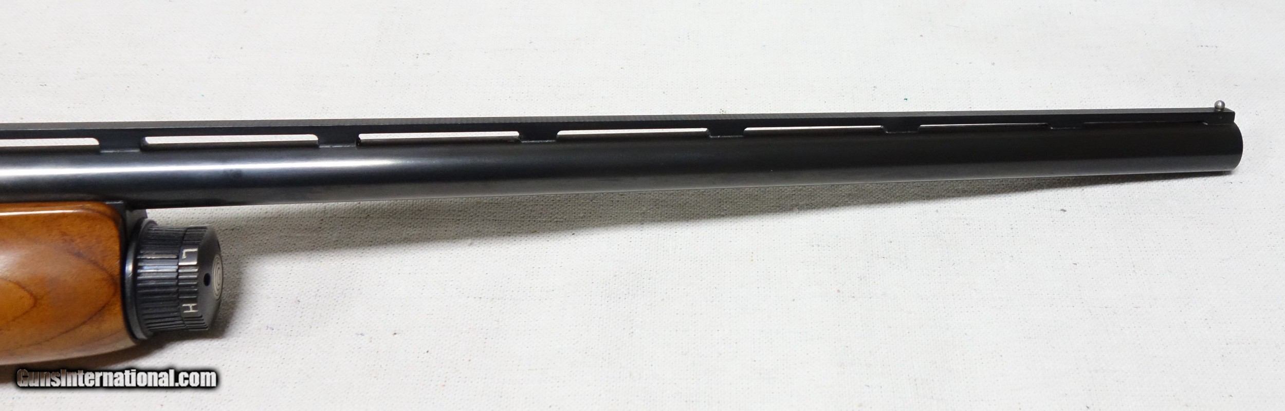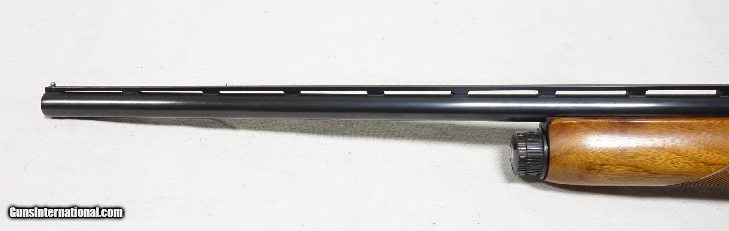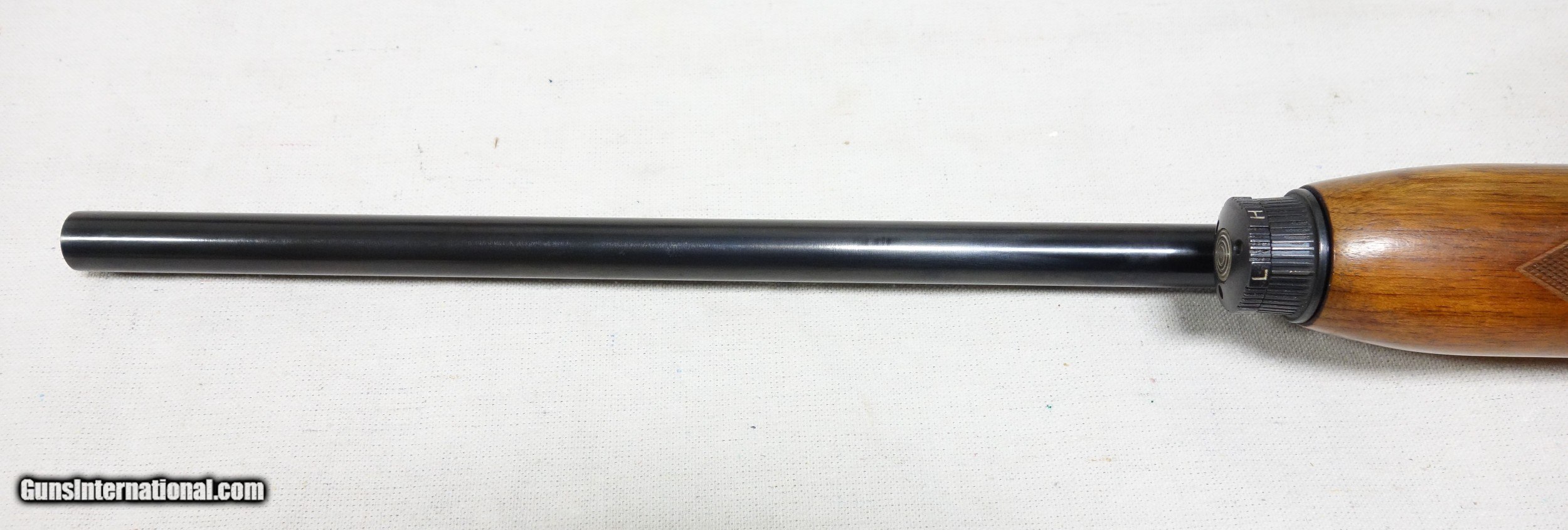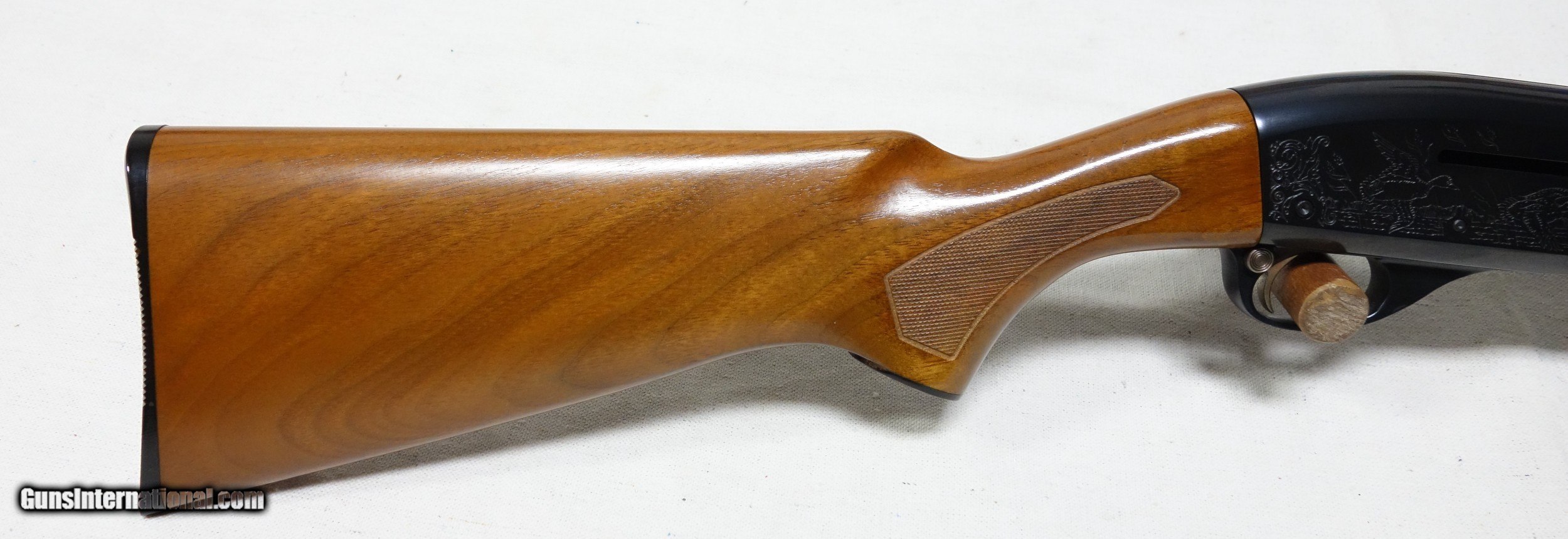 Description: Near mint throughout. Remington 58 20 gauge semi-automatic shotgun. 25" ventilated rib barrel choked IMP CYL. 2 3/4" chamber. S/N 273483X. 99% plus Blue and Varnish. Factory embellished on sides of receiver with simple game scenes. Recoil pressure can be adjusted for Light or Heavy loads with knob dial in front of fore end. The nicest example you will find! SOLD Curio/Relic: Yes |