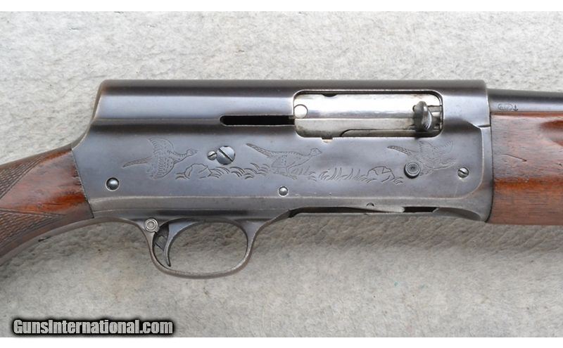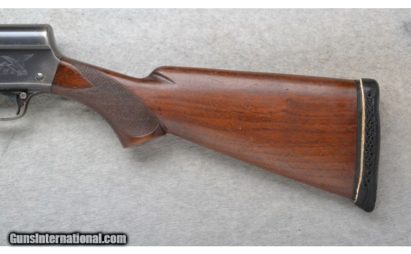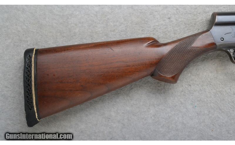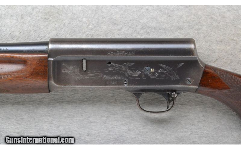 Description: This Remington Model The Sportsman is a right hand semi-auto shotgun in 20 Ga. It has a 28 inch barrel with a raised bead front sight. With a 2 3/4 inch chamber it has a fixed Full choke. The butt stock is a checkered grip walnut pistol grip. The forearm is a checkered grip walnut with finger grooves. S/N S6481. 20 Gauge SOLD Chambers: 2 3/4 inch. Metal Condition: "Fair. Has handling marks, blue wear and freckling. Wood Condition: Fair. Light handling marks and wear. Bore Condition: Shiny. Barrels: 28 inch. Stock Dimensions: LOP 14 inches. Fore End: Checkered grip walnut with finger grooves. Butt Pad: White Line black rubber. Needs replacement. Weight: 7 Lb. 6 Oz. Sights: Raised bead front. Chokes: Fixed full. Item Location: Richfield, WI |