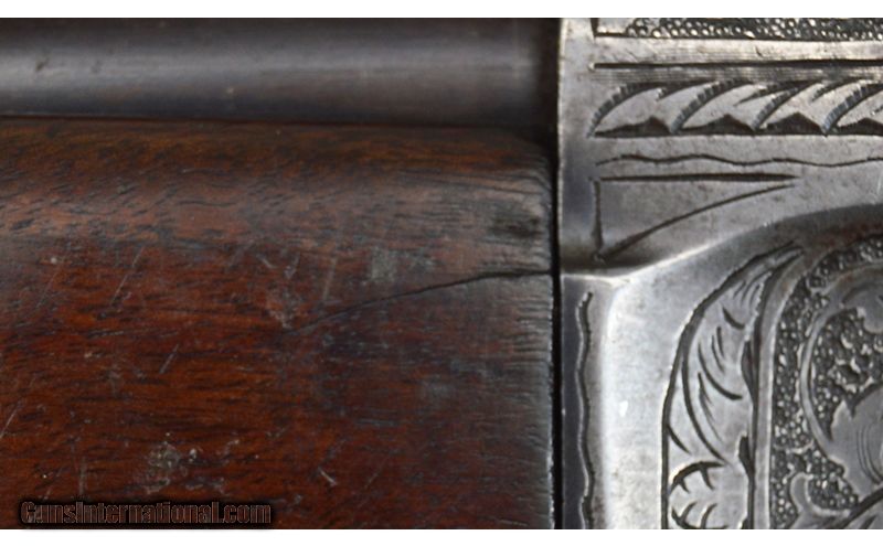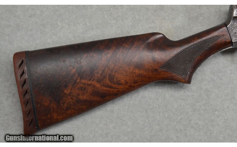 Description: Remington The Sportsman F-Grade "Long Range" 12 gauge shotgun is in good condition. It features factory master engraving on the frame and barrel. Both the right and left side of the frame have scroll engraving around two dogs and multiple game birds. It has a 32" blued barrel that is stamped "Long Range". It has handling marks on the barrel, fore end, frame, and stock. It has small fissures and slight wood loss on the stock. SN: 710441 12 Gauge SOLD Metal Condition: Good condition with handling marks Wood Condition: Good condition with handling marks Bore Condition: Clean and shiny Barrels: 32 Stock Dimensions: LOP 14 1/4 Fore End: Wooden with a checkered pattern Butt Pad: Rubber Weight: 9lbs Sights: Single bead Chokes: Full Item Location: Fort Worth, TX |