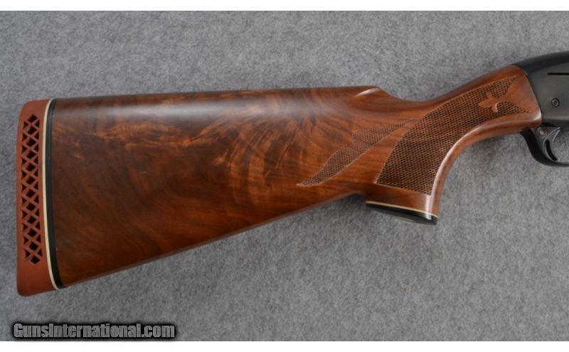 Description: SOLD Manufacturer: S/N L908112V Caliber Info: 12 Gauge. Chambers: 2 3/4 Inch chamber. Metal Condition: Very good condition for age with normal wear and use marks showing. Wood Condition: Very good condition with slight handling marks. Some light scuffing noted on gloss finish. Bore Condition: Very Good Condition. Bright and shiny. No bulges or pitting noted. Barrels: 30 Inches, vent rib. Triggers: LOP - 14 1/2 Inches. Stock: Figured walnut, checkered, gloss finish. Fore End: Figured walnut, checkered, gloss finish. Butt Pad: Remington rubber recoil pad. Weight: 8 Lbs 10 Oz Sights: Front and mid beads. Chokes: Fixed Full choke. Item Location: Lone Tree, CO |