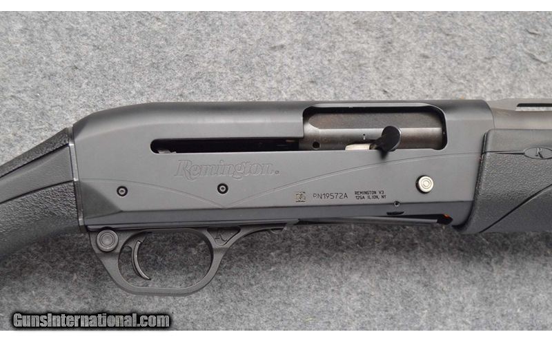 Description: Remington V3 with Versaport gas operated system that regulates pressure based on length of shell and aids in reducing recoil. 12 Gauge SOLD Chambers: 3". Metal Condition: Few noticeable handling marks. Barrels: 28". Stock Dimensions: LOP 14". Fore End: Black synthetic. Butt Pad: Remington supercell recoil pad. Sights: Light contour vented rib with silver mid bead and white front bead. Chokes: Full, IC, M. Item Location: Sidney, NE |