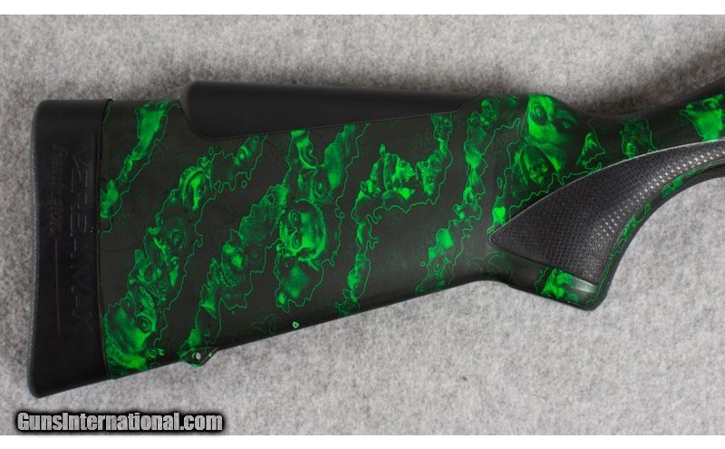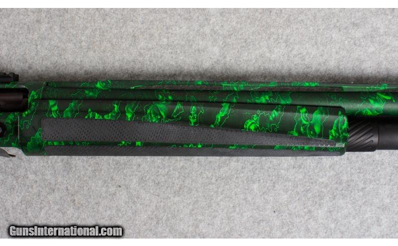 Description: Remington Versa Max zombie hunter in 12 Ga. Shotgun has a vibrant green zombie theme skin over the entire gun. Picatiny rail monted to the reciver and a barrel monted pic rail as well for a light or laser. extended magazine tube. A Nordic speed bolt handle for quick cycling. SOLD Manufacturer: RT36994A Caliber Info: 12 Ga. Chambers: 2 3/4 -3 Metal Condition: Skin covered Bore Condition: Excellent Barrels: 22 Stock: Polymer Stock Dimensions: LOP 14.25 Fore End: Polymer Butt Pad: Rubber Weight: 8.5 Lbs Sights: Reciever mounted Picatiny rail, Vented rib with mid bead and green fiber optic Chokes: Screw in glass break muzzle device Item Location: East Hartford, CT |
