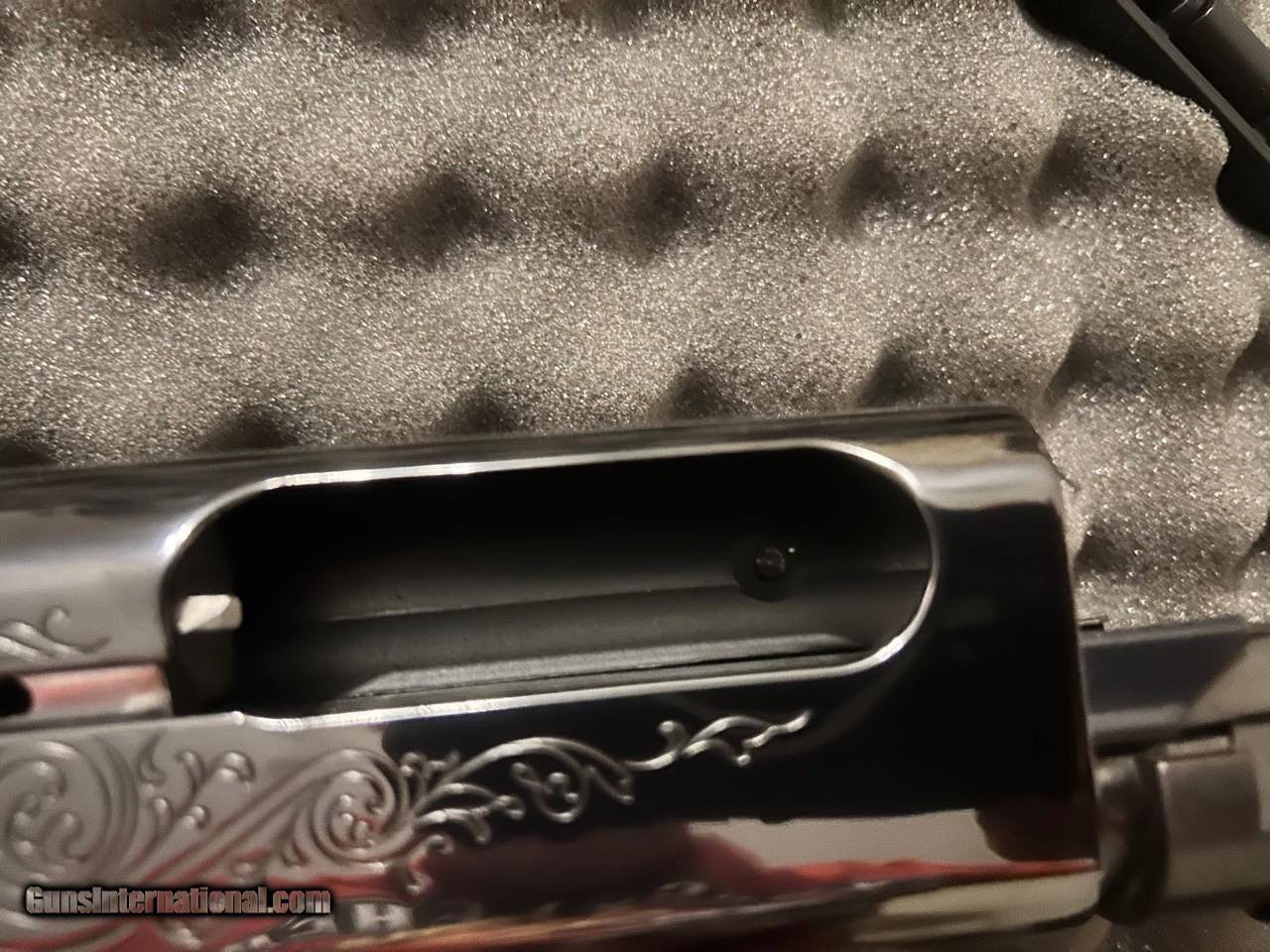 Description: I have never seen one so nice in 40 years, not even one fresh from the factory. The deep dark bluing has a mirror finish. I have never seen bluing this nice. The high-grade American Walnut stock doesn't have a mark on it. The original owner put a load of money into this gun. The receiver is like a mirror. You can see your reflection in it. I should not sell it, but that is what I do. The price is firm. Will ship in a hard case. Description: Show class Remington 1100 12 Gauge Semi-Automatic Shotgun with a 25" doubled beaded vented rib barrel and a fixed skeet choke. It has a neutral cast with a 13 3/4" LOP. Layaway 1/3 down 90 days Shipping: $75, insurance $105 Payment: Personal Check, Money Order, Cert. Check, or Zelle randywine2000yahoo (703) 858-2881 Returns without damage or alteration within 3 days of delivery minus 20% restocking fee SOLD Shotgun Gauge: 12 Gauge Manufacturer: Remington Model: 1100 Serial Number: L937938V Chambers: 3 w/Plug 2 3/4 Ejectors: Auto Condition: Excellent Metal Condition: Excellent Wood Condition: Excellent Bore Condition: Excellent Action: Semi-Auto Triggers: Single Stock: High-Grade American Walnut Butt Pad: factory Plate LOP: 13 3/4 Rib: Vented Finish: High Gloss Sights: Double Beads Manufacture Date: 1990 Chokes: Fixed Skeet Engraving: Factory Case: Yes |