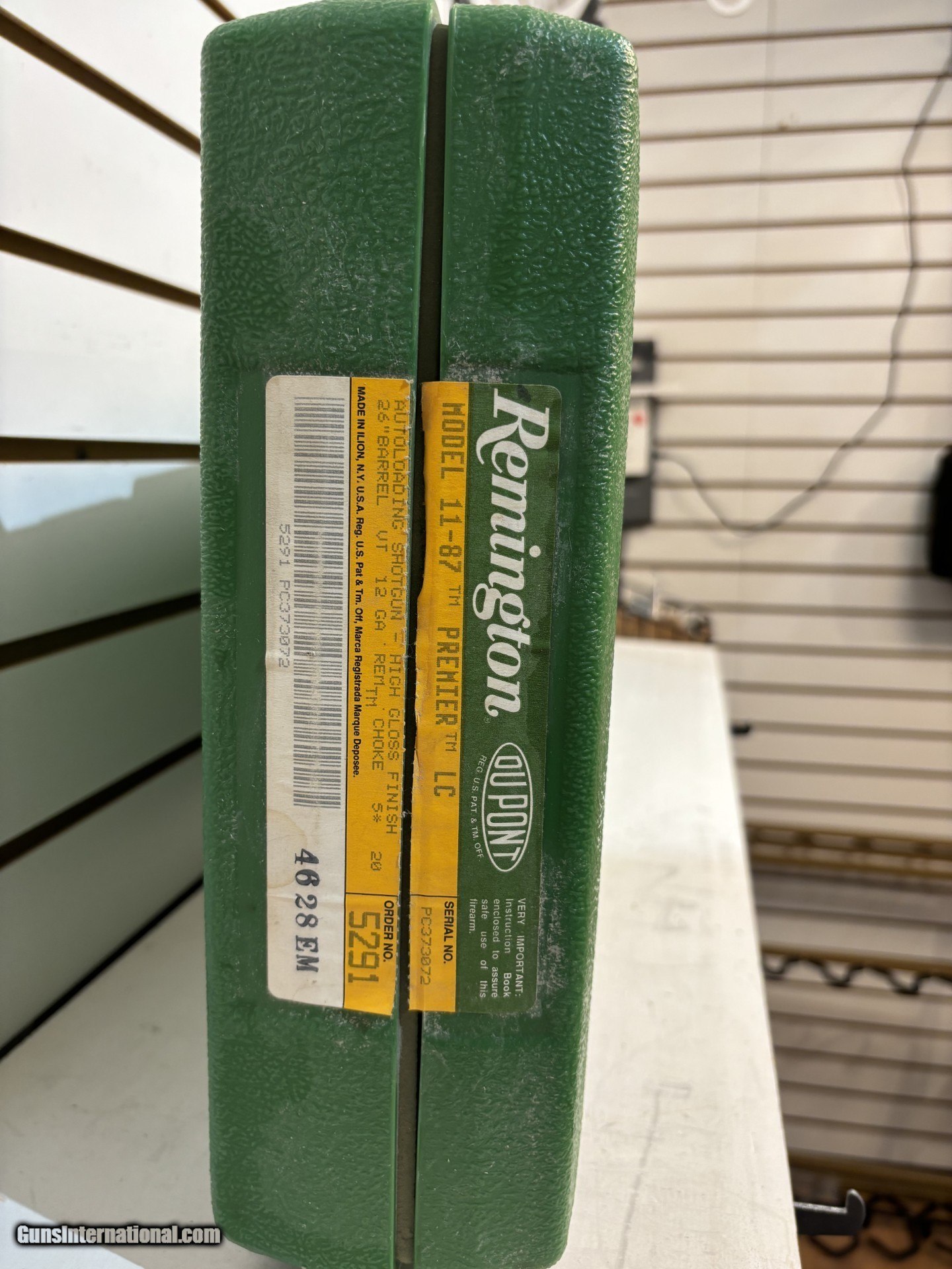 Description: Pre Owned 11-87 Premier Caliber 12 gauge Chamber 2 3/4" & 3" Barrel 26 Has the original Green Remington box. Manual SOLD Shotgun Gauge: 12 Gauge Manufacturer: Remington Model: 11-87 Premier Serial Number: PC373072 Condition: VERY GOOD Metal Condition: VERY GOOD Wood Condition: VERY GOOD Bore Condition: VERY GOOD |