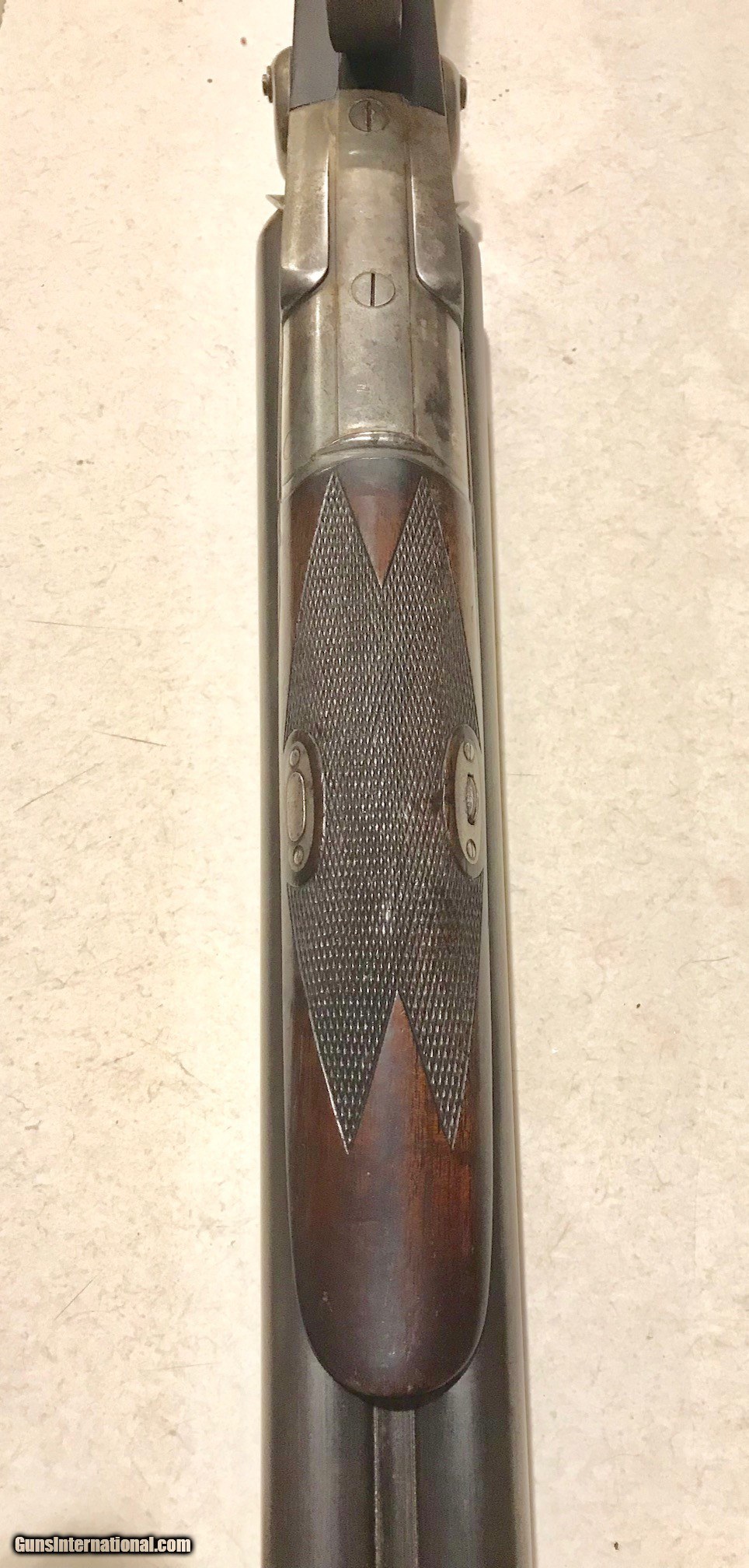 Description: Reduced - Scarce Remington 1876 Model Grade 2 Whitmore 12 gauge shotgun, original 28" barrels, shiny bores, tight action, excellent wood and checkering, no cracks. Very nice, difficult to find 1876 Model, only about 2500 made. Money order or cashier's check + $ 40 shipping. SOLD Antique: Yes Manufacturer: Remington Model: 1876 Whitmore Serial Number: 3432 Barrel Length: 28 Condition: Nice Metal Condition: Nice Wood Condition: Nice Bore Condition: Shiny Action: Double shotgun Triggers: 2 Gauge Info: 12 Stock: Pistol Grip, checkered Fore End: Checkered Butt Pad: Original Butt Plate |