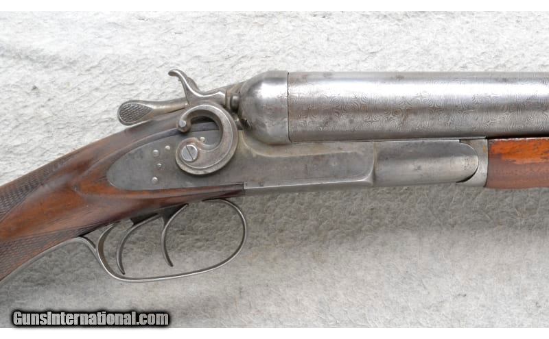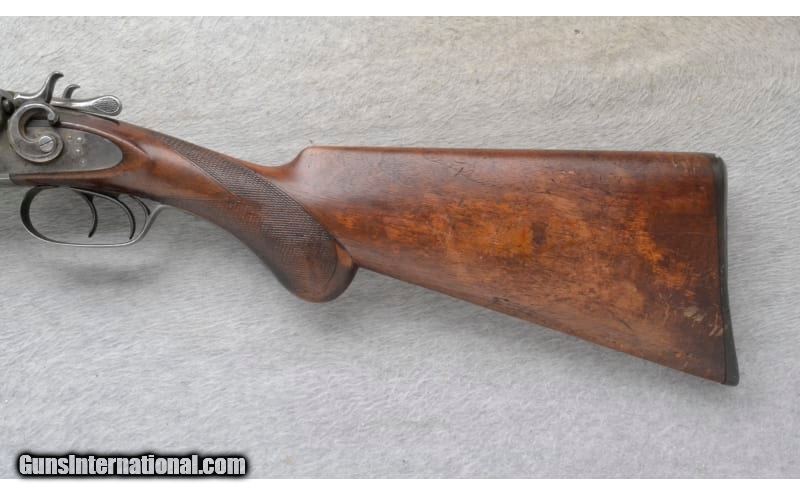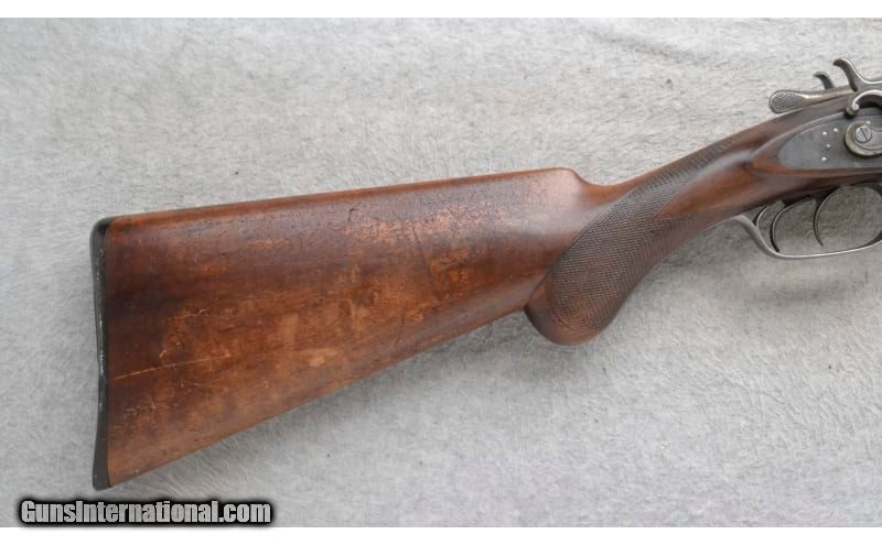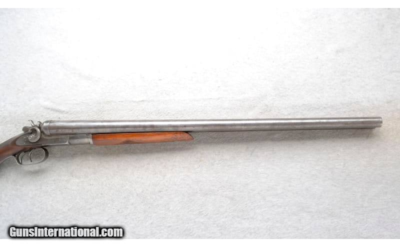 Description: This Remington Model 1889 is a side by side shotgun in 10 Ga. It has 27 inch Damascus steel barrels with extractor and a solid rib. The barrels have been cut down from their original length. The brass bead front sight is worn. With 2 3/4 inch chambers the fixed choke measures more open that Cyl. on both barrels using the shotgun hand gauge. It has double triggers and external hammers. The butt stock is a checkered grip walnut round knob pistol grip. The forearm is a checkered grip walnut splinter. Serial Number 87589. 10 Gauge SOLD Chambers: 3 inch. Metal Condition: "Shows age, use and wear. A few minor barrel dents. Dents in the top rib. Wood Condition: Many handling /use marks. Top finish wear. Bore Condition: Needs a good cleaning. Barrels: 27 inch Damascus steel barrels with extractor and a solid rib. Barrels have been cut down from their original length. Triggers: Double. Stock Dimensions: LOP 14 1/8 inches. Fore End: Checkered grip walnut splinter. Butt Pad: Remington checkered black plate. Weight: 9 lb. 10 oz. Sights: Worn down brass bead front. Chokes: Choke measures more open than Cyl. on both barrels using the shotgun hand gauge. Item Location: Richfield, WI |