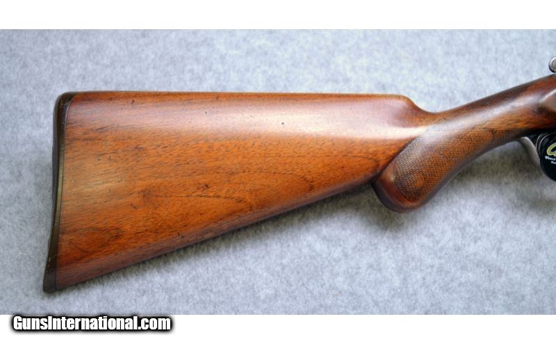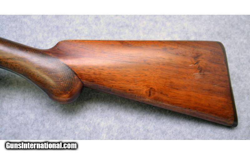 Description: Good condition overall. Damascus barrels. SOLD Antique: Yes Metal Condition: Good Wood Condition: Good, checkering worn but visible Bore Condition: Good Barrels: 30" Damascus barrels Triggers: Double trigger Stock: Checkered walnut with wear Stock Dimensions: 13 7/8" LOP, 2 1/4" DAC, 3 1/4" DAH Fore End: Checkered walnut splinter fore end with wear Butt Pad: Metal with logo Sights: Front bead Item Location: Christiana, DE |
