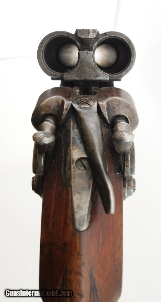 Description: Remington 1889 Hammered 12GA SXS GD I MFG Early 1900's, 30" fixed IMPMOD bbls, smooth shiny bores, nice checkered grip stock - forearm, double trigger, LOP - 14", DAC - 2 1/8", DAH - 3 3/8", and black butt plate. Add 3% for Credit Card Shipping $30.00 SOLD |