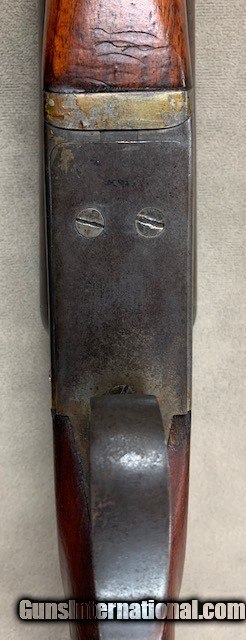 Description: This model 1894 Remington has a few issues - top lever spring is non functional, buttstock drilled for swivel and also the bottom of the barrel (see the last photo), etc. However, the 28 inch barrels have bores and 2&5/8 inch original chambers that are excellent. It would be a good gun to restore but having lost our 80+ year old gunsmith last year we are selling it cheap. SOLD Curio/Relic: Yes |