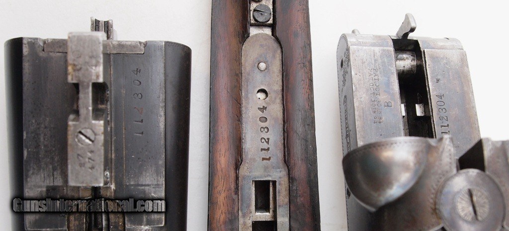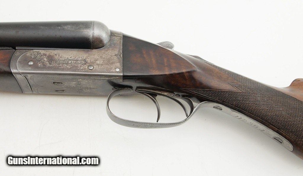 Description: Remington 1894 Grade BE SXS 12 GA, 32" bbls, shiny bright smooth bores, blued finish, brass bead front sight, matching numbers, MFG 1894 - 1910, steel ORDNANCE barrels, border engraved receiver, nice checkered Prince of Whales grip stock - forearm, LOP - 13 7/8", and black Remington Arms butt plate. Add 3% for Credit Card Shipping $35.00 SOLD |