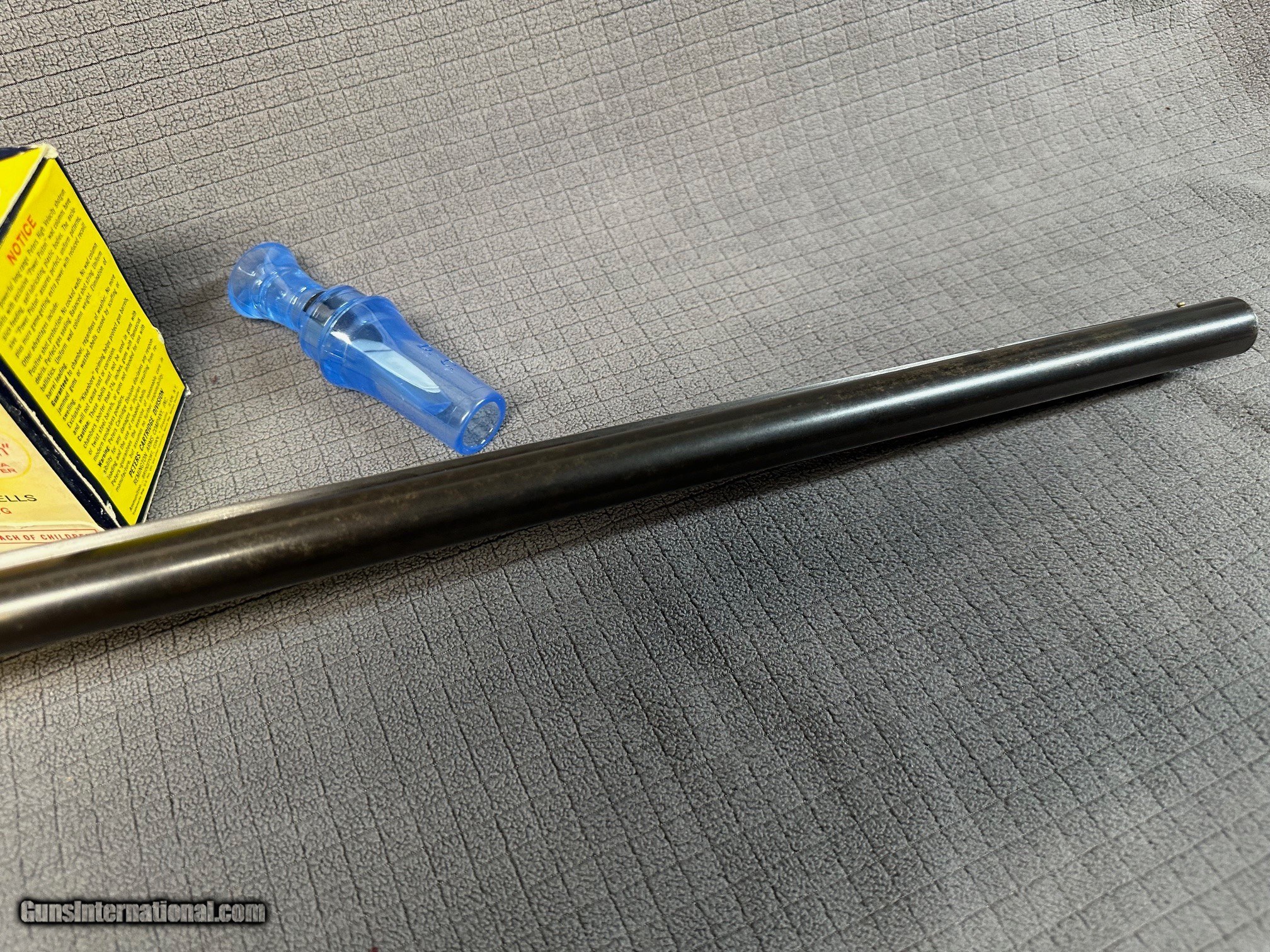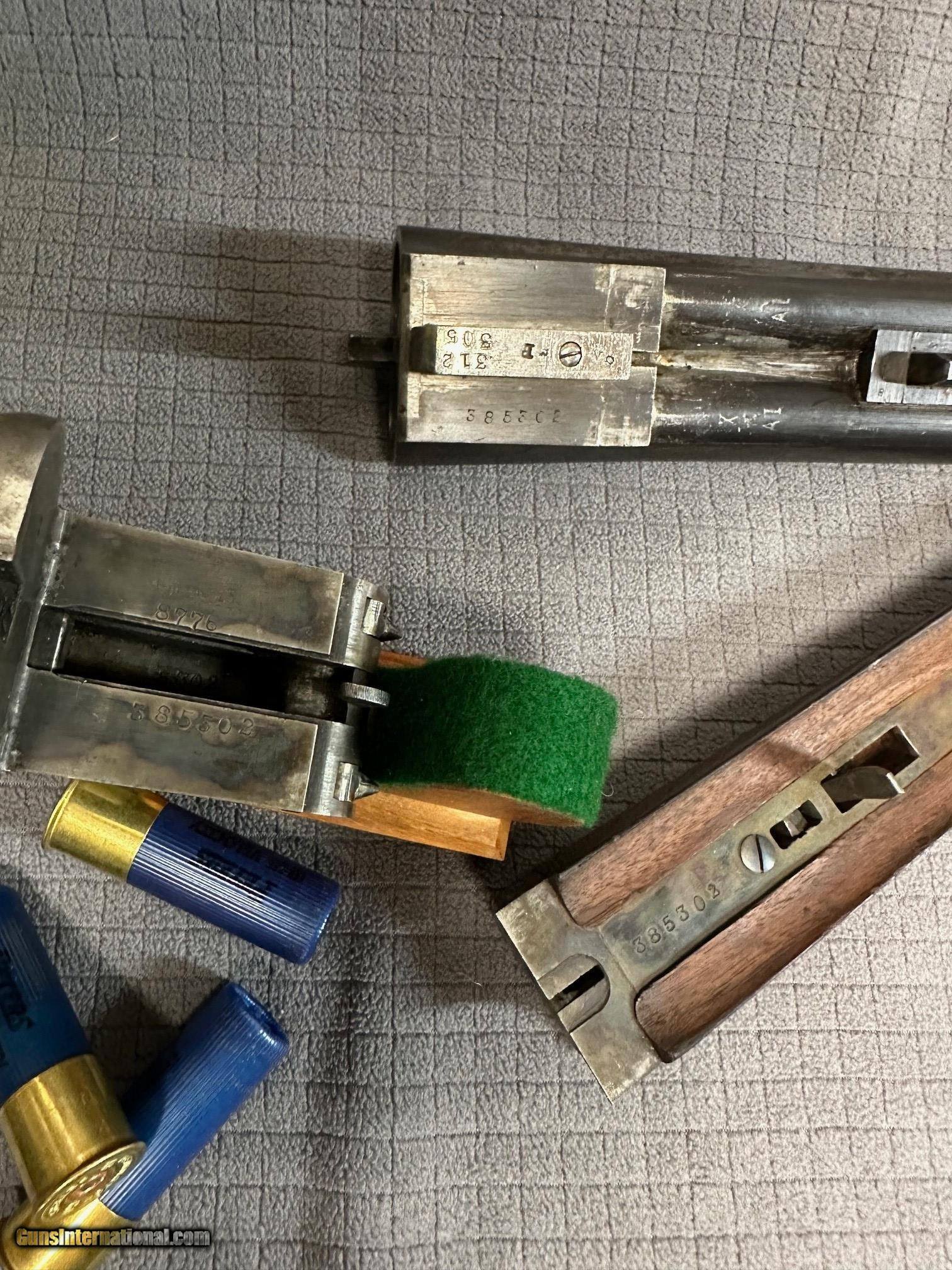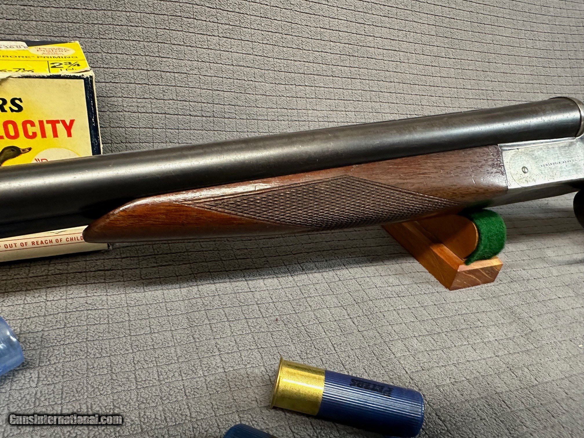 Description: NICE , Solid 16 ga. Remington SXS 1900 K Grade. circa 1905-10. All #'s are matching. Has DT/Extractors. 28" IC/M. Remington Steel barrels. Bores are absolutely mirror bright with zero imperfections. Chambers opened to 2 3/4". This guns action is rock solid. Blueing on right barrel has some very light erosion on the side on rearward half and rest of barrels quite good. Strong case colors still present. Wood appears to have had some refinishing at some time although checkering appears original and is very good.. LOP is 14" over replaced Remington Auto plate. Drop at comb is 2". Drop at heel is 3". All in All a very nice example of a classic early American double gun. $75.00 Shipping & insurance to your FFL(lower 48). No CA Sales. Thanks for looking. SOLD |