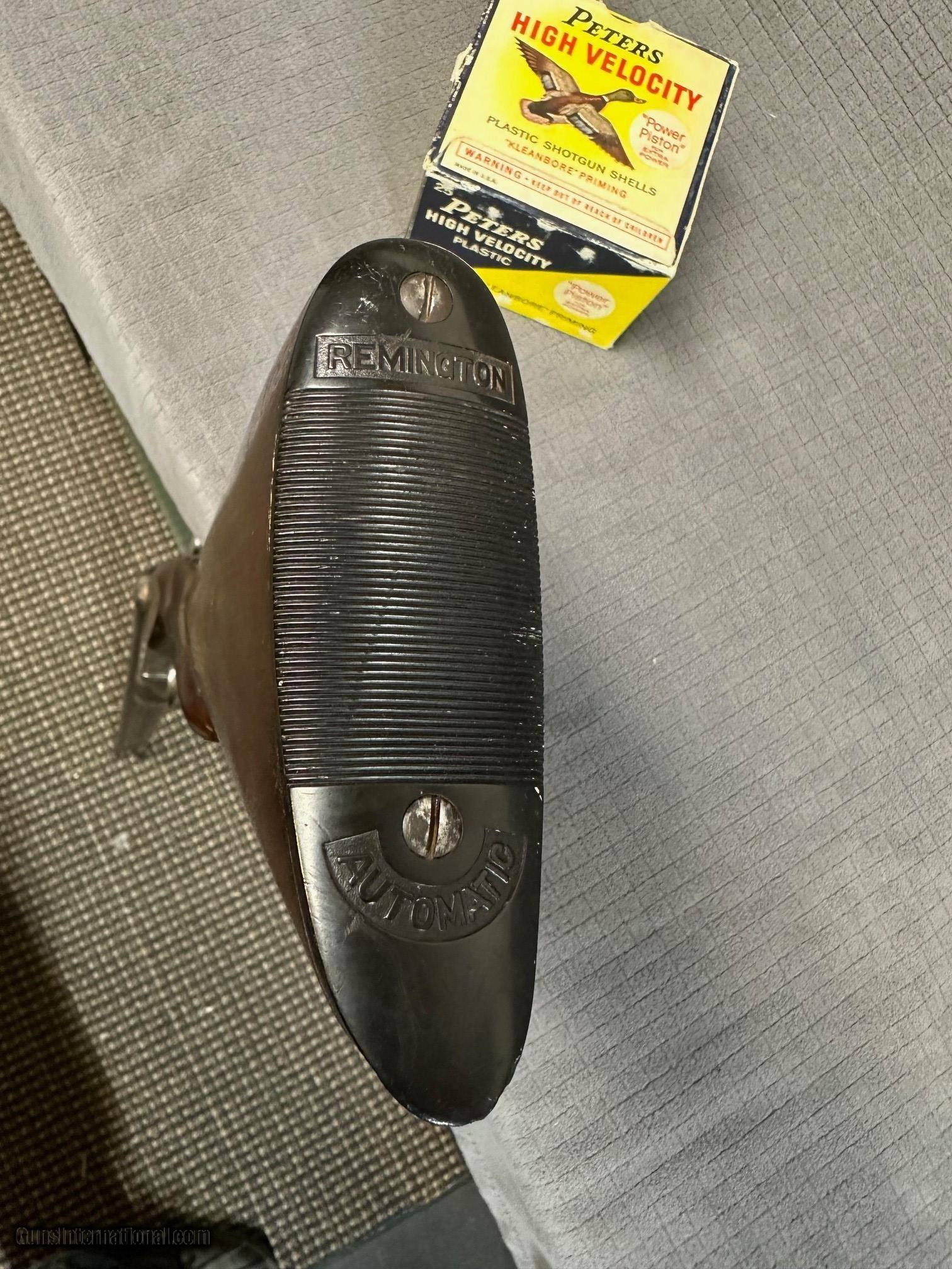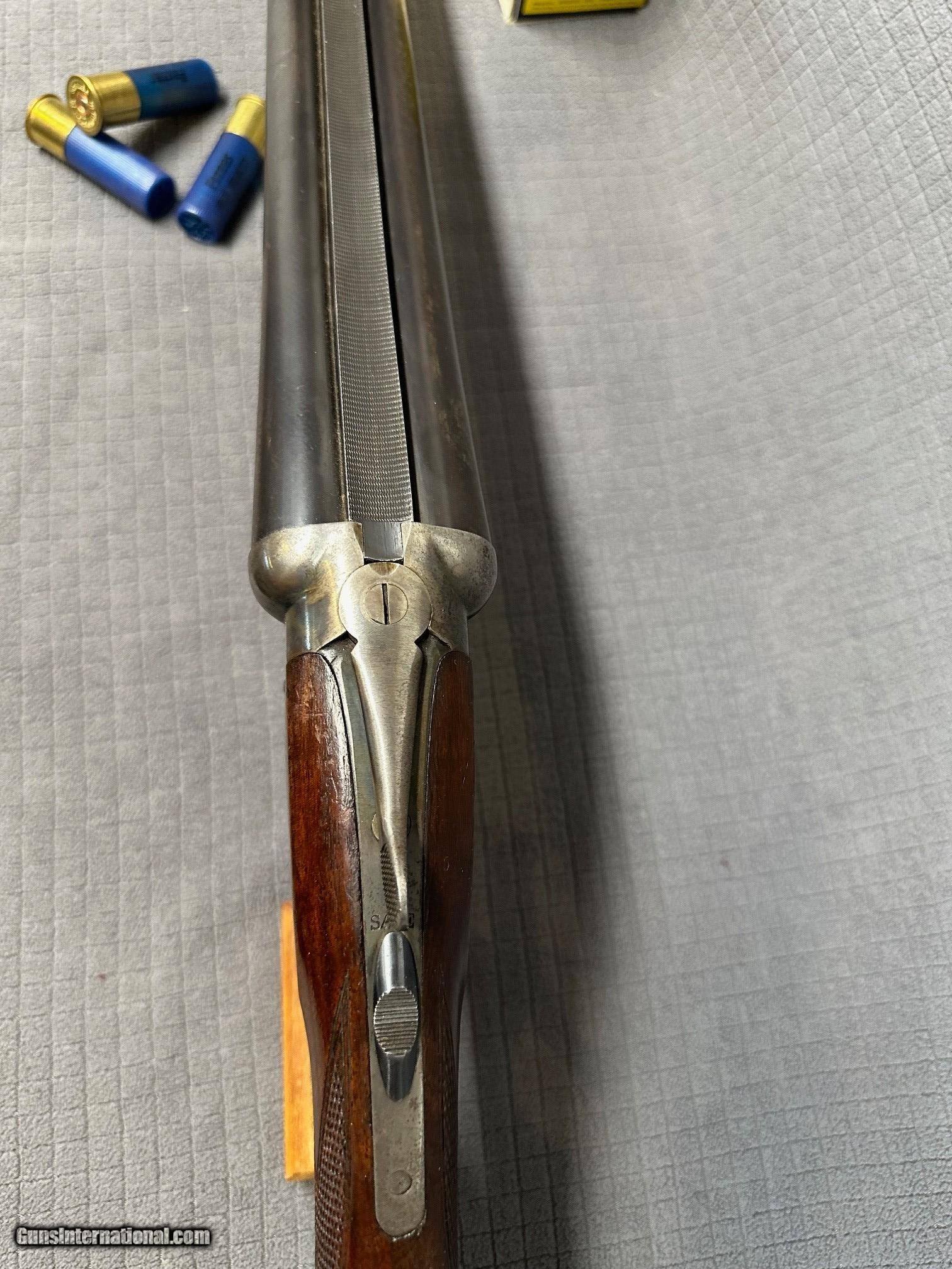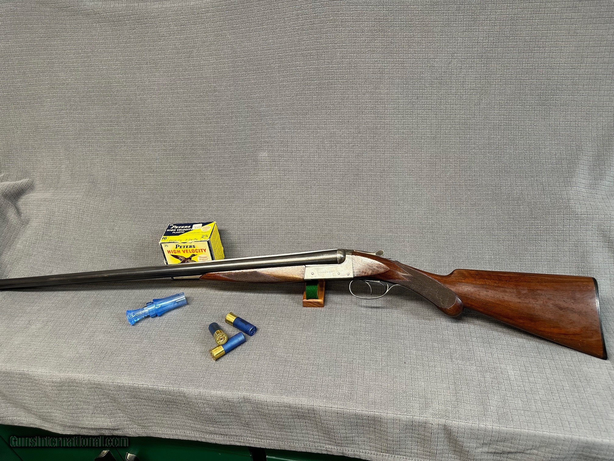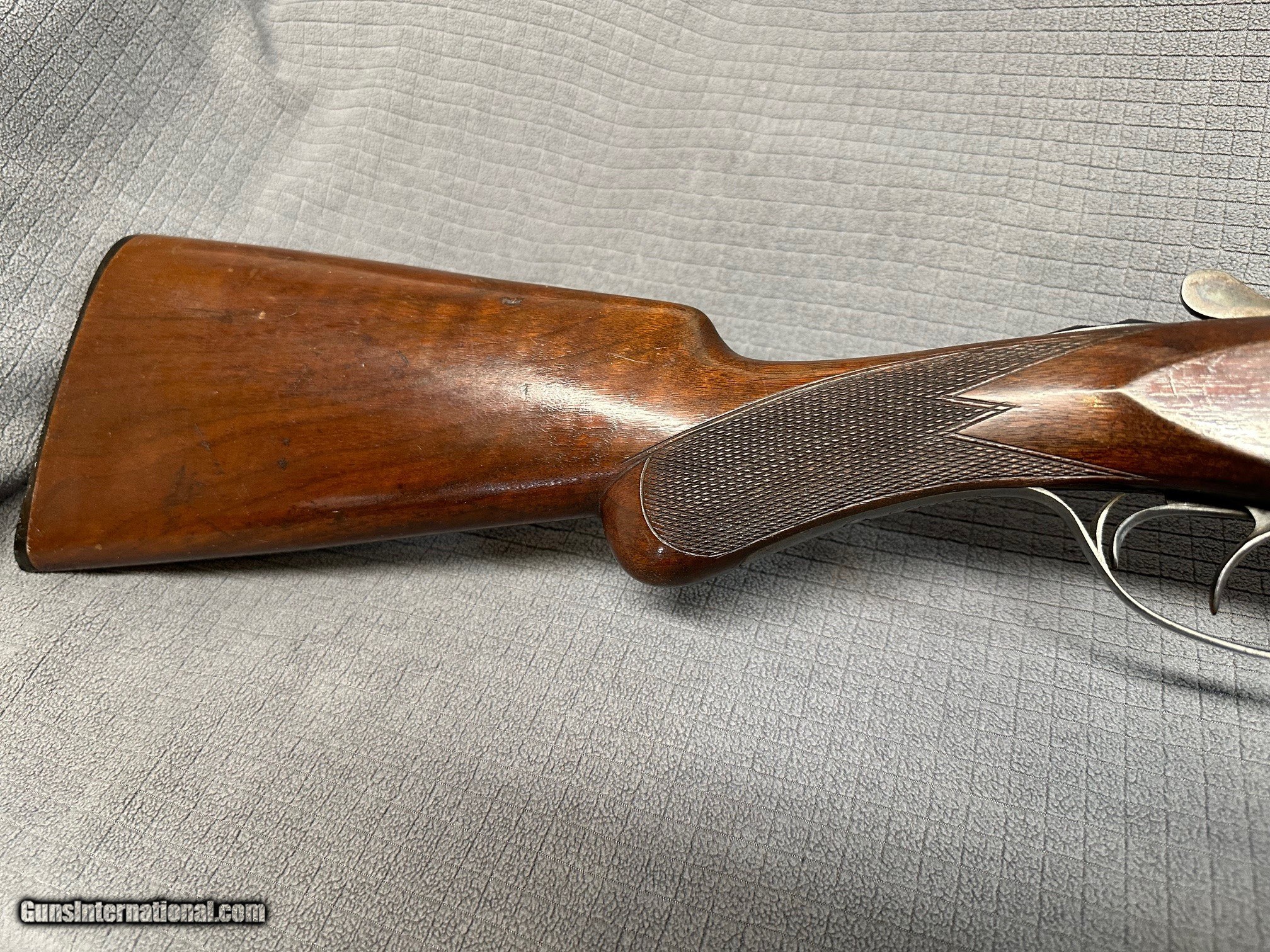 Description: NICE , Solid 16 ga. Remington SXS 1900 K Grade. circa 1905-10. All #'s are matching. Has DT/Extractors. 28" IC/M. Remington Steel barrels. Bores are absolutely mirror bright with zero imperfections. Chambers opened to 2 3/4". This guns action is rock solid. Blueing on right barrel has some very light erosion on the side on rearward half and rest of barrels quite good. Strong case colors still present. Wood appears to have had some refinishing at some time although checkering appears original and is very good.. LOP is 14" over replaced Remington Auto plate. Drop at comb is 2". Drop at heel is 3". All in All a very nice example of a classic early American double gun. $75.00 Shipping & insurance to your FFL(lower 48). No CA Sales. Thanks for looking. SOLD |