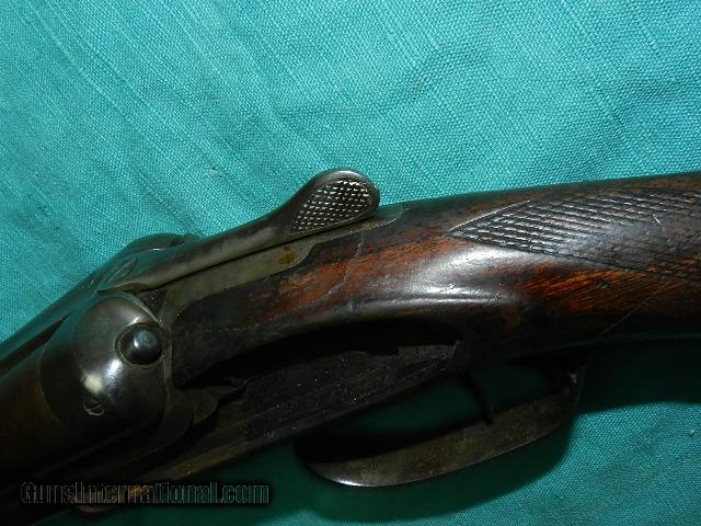 Description: A very good Remington 12 ga double shotgun without locks but complete otherwise, with 30" damascus barrel chocked at a tight Full and Full, and the bores are clean down to the breech area where there is mold corrosion and some pits but not fully involved. Chambers the 2 3/4" shell but for black powder. The left tube has a slight dent hardly noticeable The American walnut stocks still shallow hand checkering, with a LOP of 14 3/8", and the forend has the black hard rubber nose piece, and it's number matches the receiver SN 17977, last patent date is Apr 16th 1872. Up near the top tang the wood has an age grain lift near the breech, and the toe of the black hard rubber Remington factory butt-plate has a small chip.Overall a good start if you have the locks or need to find these hard to find parts. We don’t have asite .I prefer money orders or a check. Item ships when funds come in. If you can only pay with a card let me know. I’m sorry I don’t list my phone number, did that for 30 days, never again.. I can’t talk on the phone all day…who will ship the guns? I’m just one person, and it’s very bust here! I do a brisk volume! I hope you like my wide selection of unusual guns, knives and gun parts. Shipping price determined by zip code. I try to keep the prices affordable, which means I make less money than most dealers. You won’t get altitude sickness with my prices! I consistently have the best selection of older guns If you BUY IT NOW you must still contact us for details buy it now doesn't end the sale, it just sends an email telling us you want to buy this gun. A phone call won’t secure a sale! Not home many times, the first buyer by email buys the gun !Thissite doesnot close down a sale when you do a BUY IT NOW like Ebay!I can get six buy it nows in an hour, first buyer to email gets the guns, others are in second place! Best to send another email . Sometimes not home to get calls. Some guns are required shipment to a gun dealer near you for a transfer to you when it arrives. With the widest selection of older guns at great prices, We don’t have a store, and sell on the internet only. SOLD Antique: Yes |