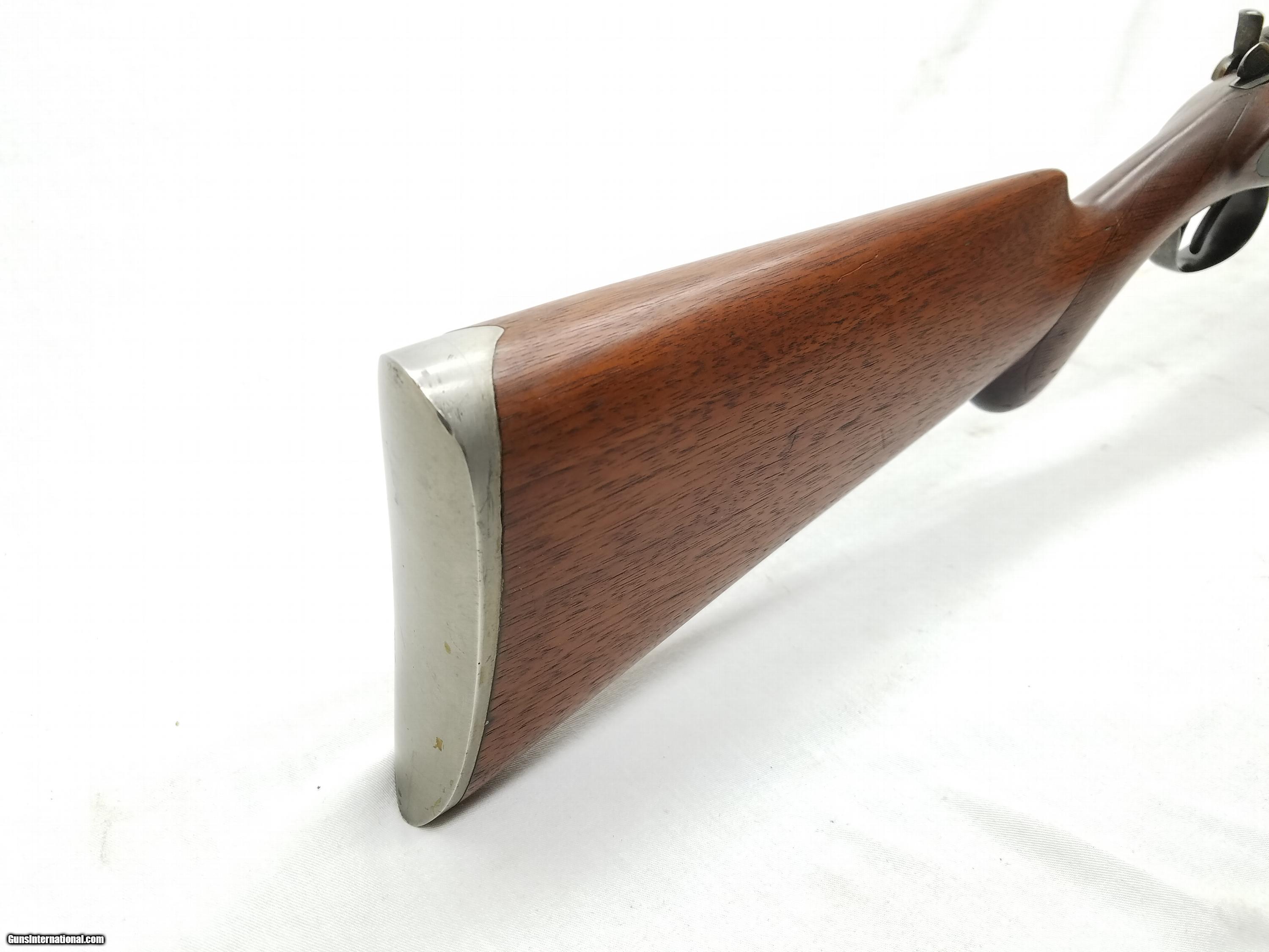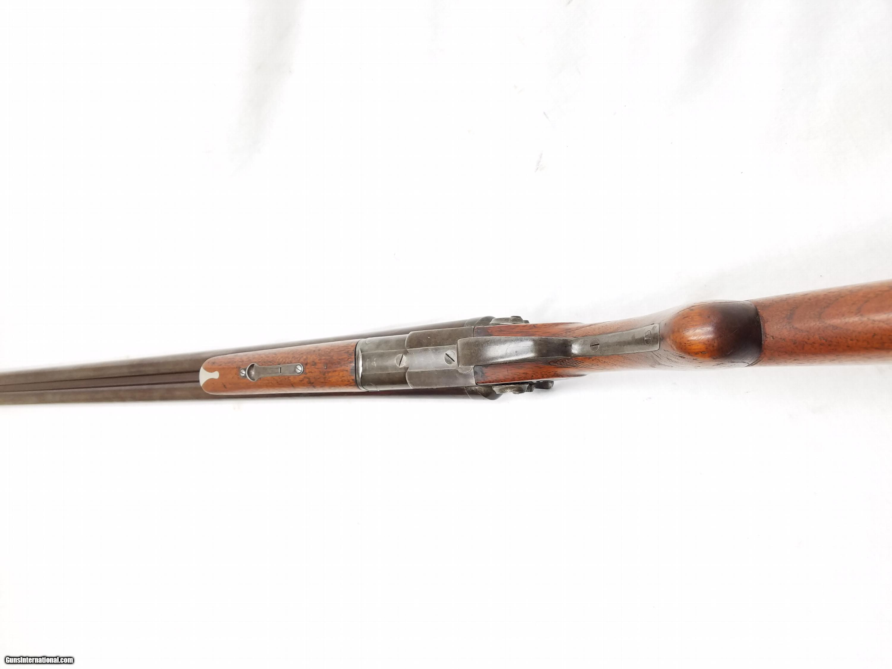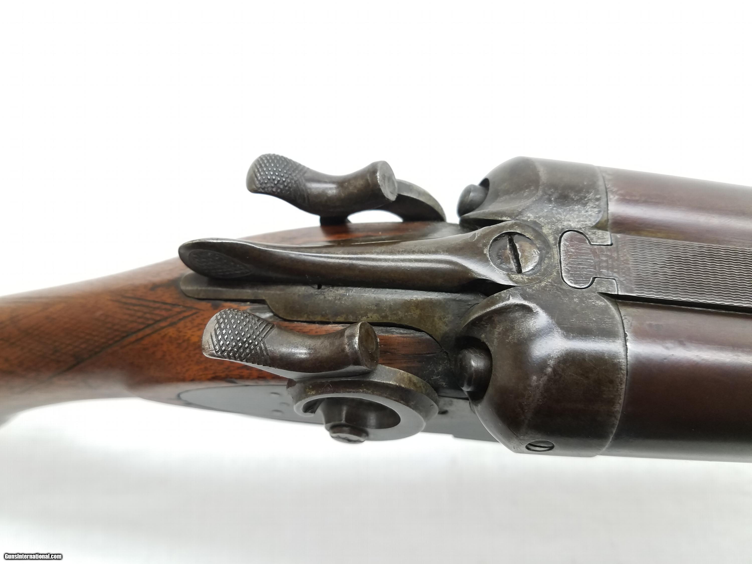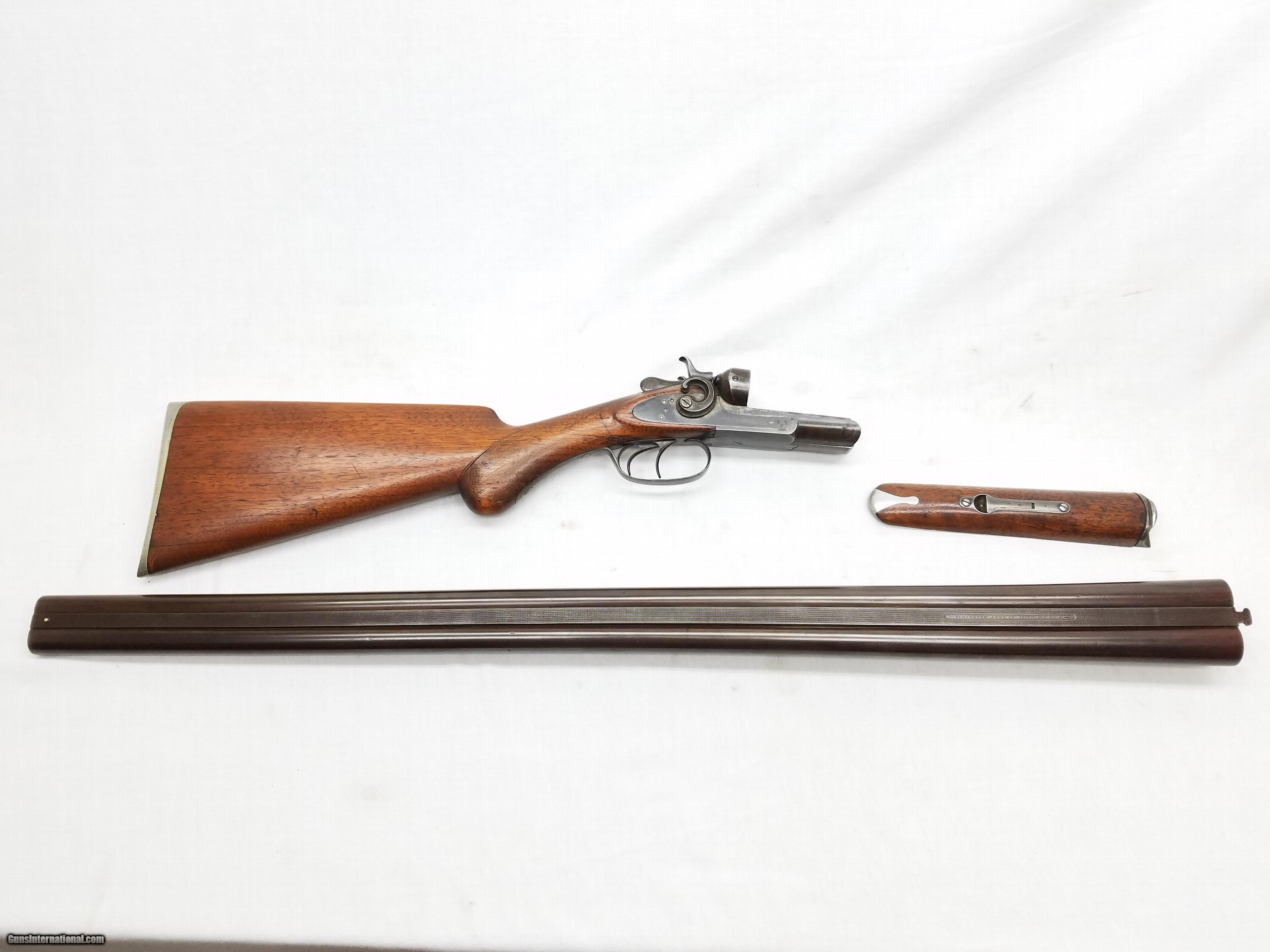 Description: This is a Model 1889 made by Remington Arms Co chambered for 12 gauge shells. The 32” barrels are in acceptable condition with a few tiny dings and an even finish. The bore is smooth but has pitting towards the breech. The right choke is full and the left choke is modified. The receiver is developing a patina but is not scratched or pitted. The hammers and lever are checkered and all screws are in good working condition. The walnut forend and pistol grip buttstock are also in good condition. There are a few scattered dings but few disturb the finish. There is also a repaired crack near the toe of the stock. There is checkering at the wrist and forend and it is fitted with a German silver nose cap and aluminum buttplate. Length of pull is 14”, overall length is 49”, and weight is 9.6 lbs. Our stock number is #A490. Willing to ship anywhere in the US, buyer pays freight and insurance. SOLD Manufacturer: Remington Model: 1889 Metal Condition: good Wood Condition: good Bore Condition: fair Triggers: 2 Gauge Info: 12 Ga Stock: walnut Fore End: walnut LOP: 14 Finish: blued Weight: 9.6 lbs Choke Left: mod Choke Right: full |