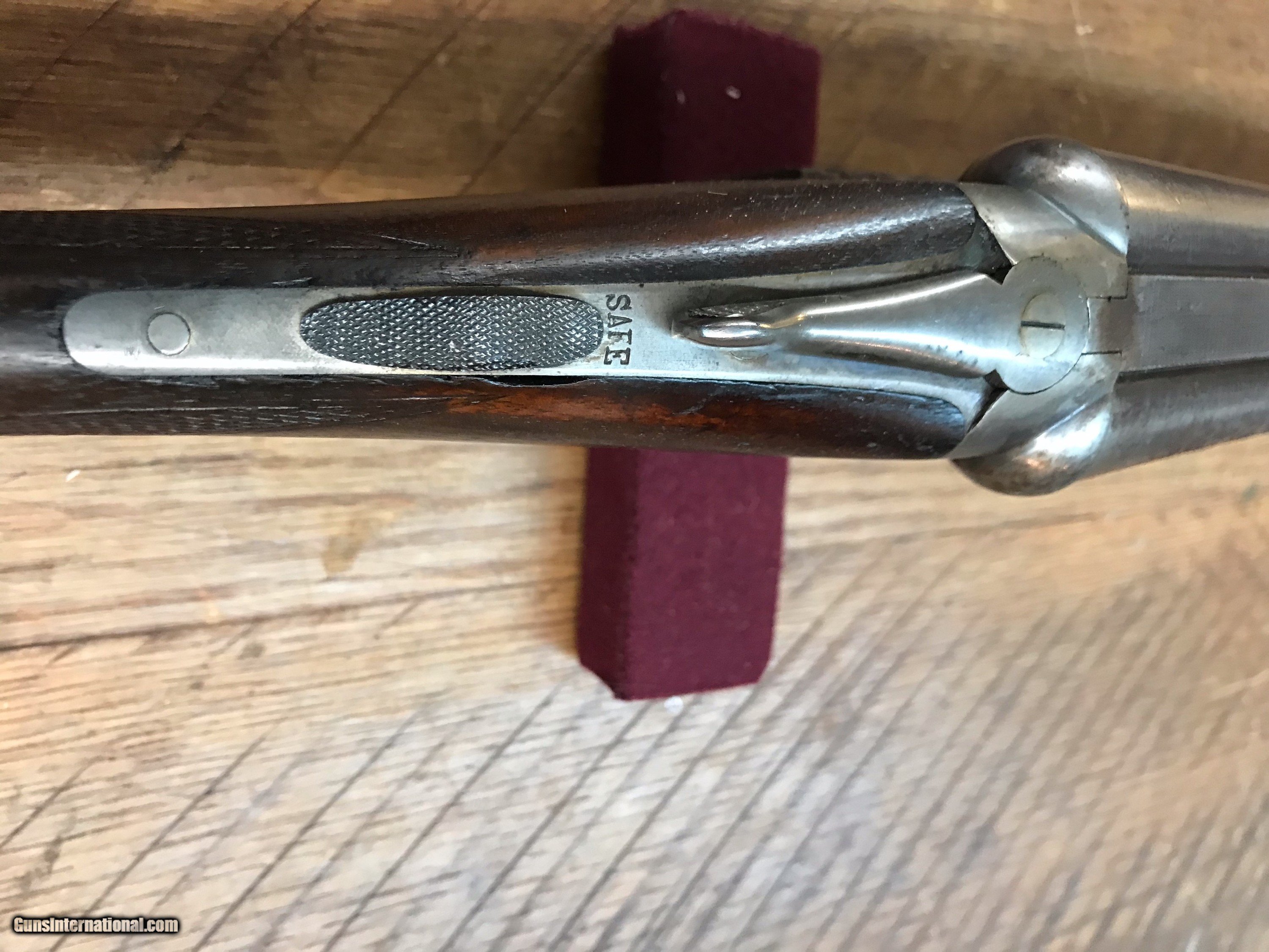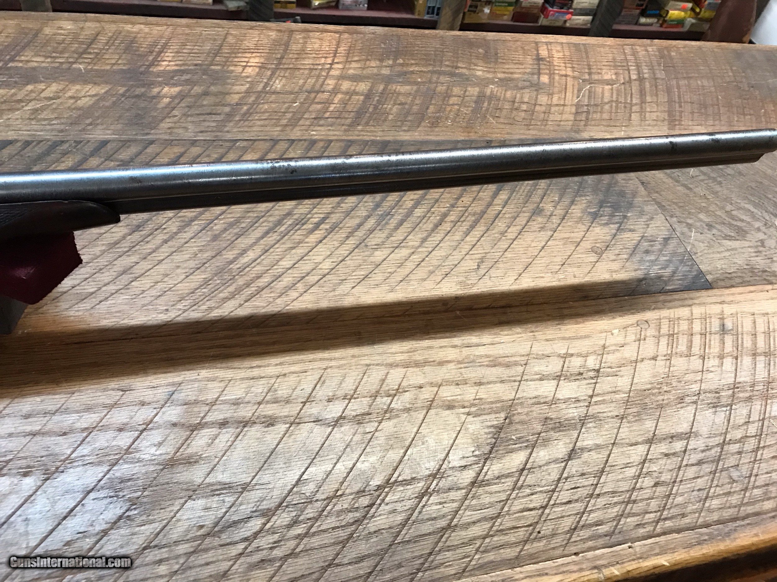 Description: 16 Gauge 30 " Damascus barrels with excellent bores choked 1c and modwith ejectors 20 % case colors on action barrels tight on face Original stock and woods No cracks or oil soaking 14 1/8 lop over hawkins pad 1 moderate dent in barrel ....dent can be raised 6lbs. 14 oz. $ 399 all personal checks take 3-5 days to clear Shipping ....$ 45 SOLD |