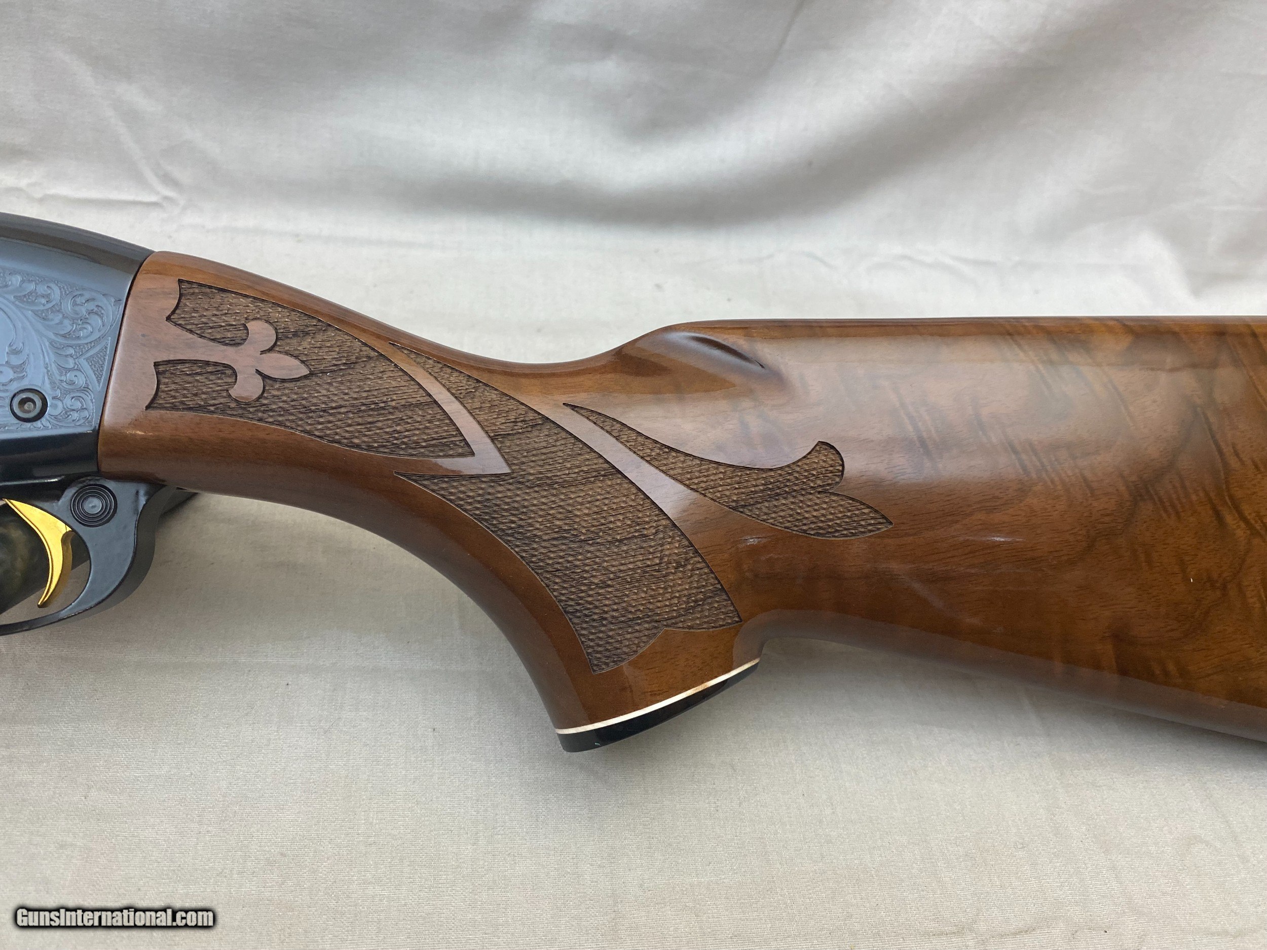 Description: SOLD Up for sale is my Remington 1100 special 50 Year Anniversary edition chambered in 12 gauge with 28" vent rib remchoke barrel! These shotguns were produced in limited numbers and feature a very highly figured Fleur De Lis checkered walnut stock and 24K gold inlaid game scene engraved receiver! Condition is truly pristine, New Old Stock, New In Box! There are no signs of handling and I would say that it is likely factory fired only! A true top tier collector and investment grade piece! This is a true collectible condition, unlike what you will see from some large sellers on this platform. I will not name them but they will blow smoke up everyone's behind about "no regular consumer use that we can see" or how their guns are "the best ever on the market". Do not believe them and make sure to do your research before investing in and collecting firearms. I am a Board Member for the Browning Collectors Association and vintage firearms are a passion of mine. I am more than happy to provide any insight or info that I can regarding vintage Brownings as well any other collectible guns you may have questions or concerns about. Do not hesitate to call/text me at 402-314-2729. FROM A LARGE COLELCTION OF HIGH QUALITY COLT, BROWNING, WINCHESTER, RUGER, and SMITH AND WESSON FIREARMS!!! 5 DAY INSPECTION PERIOD. Shipping is a flat $55 to lower 48 (PRIORITY MAIL, INSURED FOR THE PRICE OF THE GUN, INDIVIDUAL TO FFL SHIPMENT), NO MORE PAYPAL! Thank you for looking, happy and have a wonderful day! SOLD Shotgun Gauge: 12 Gauge Manufacturer: Remington Model: 1100 |