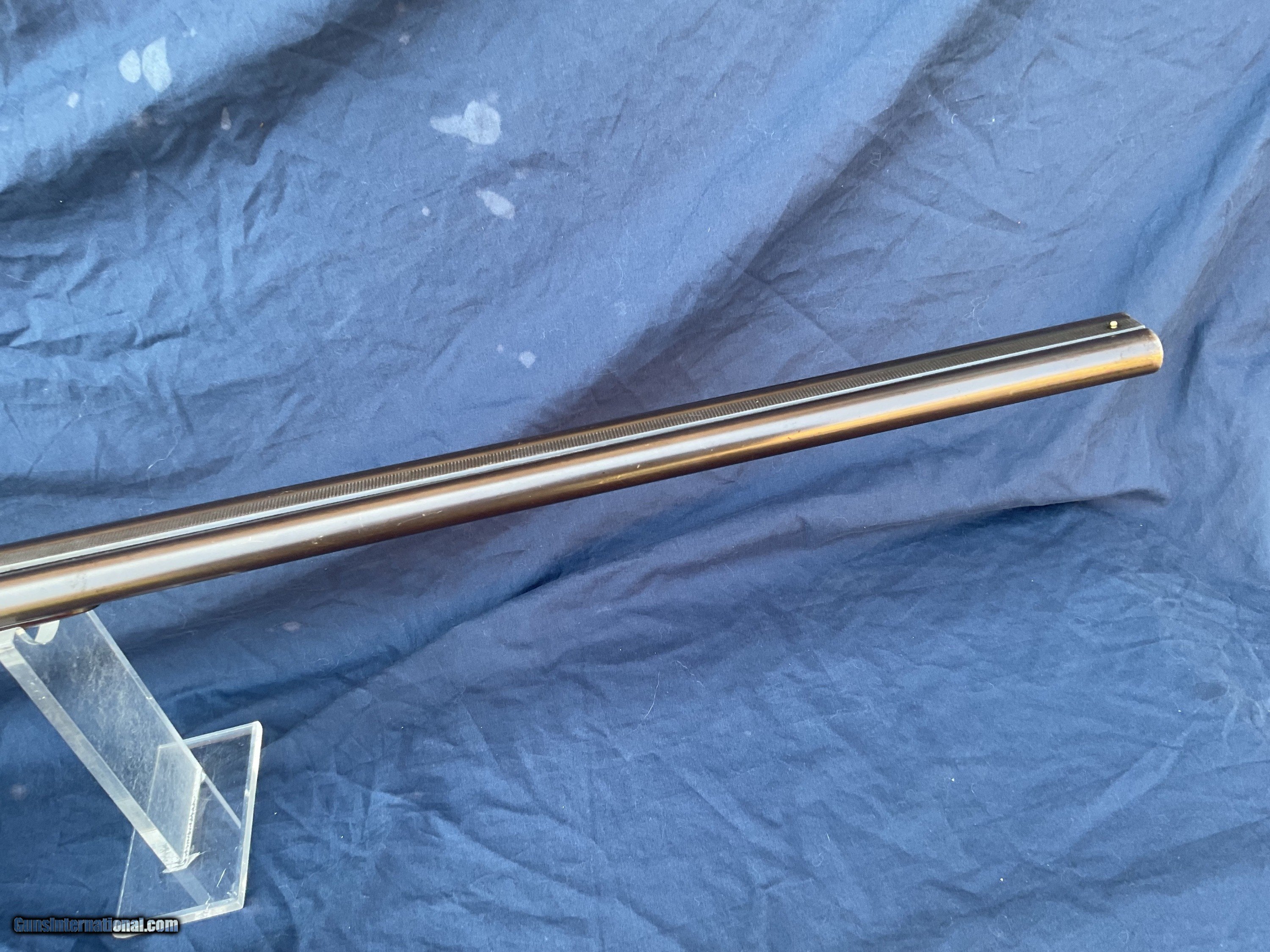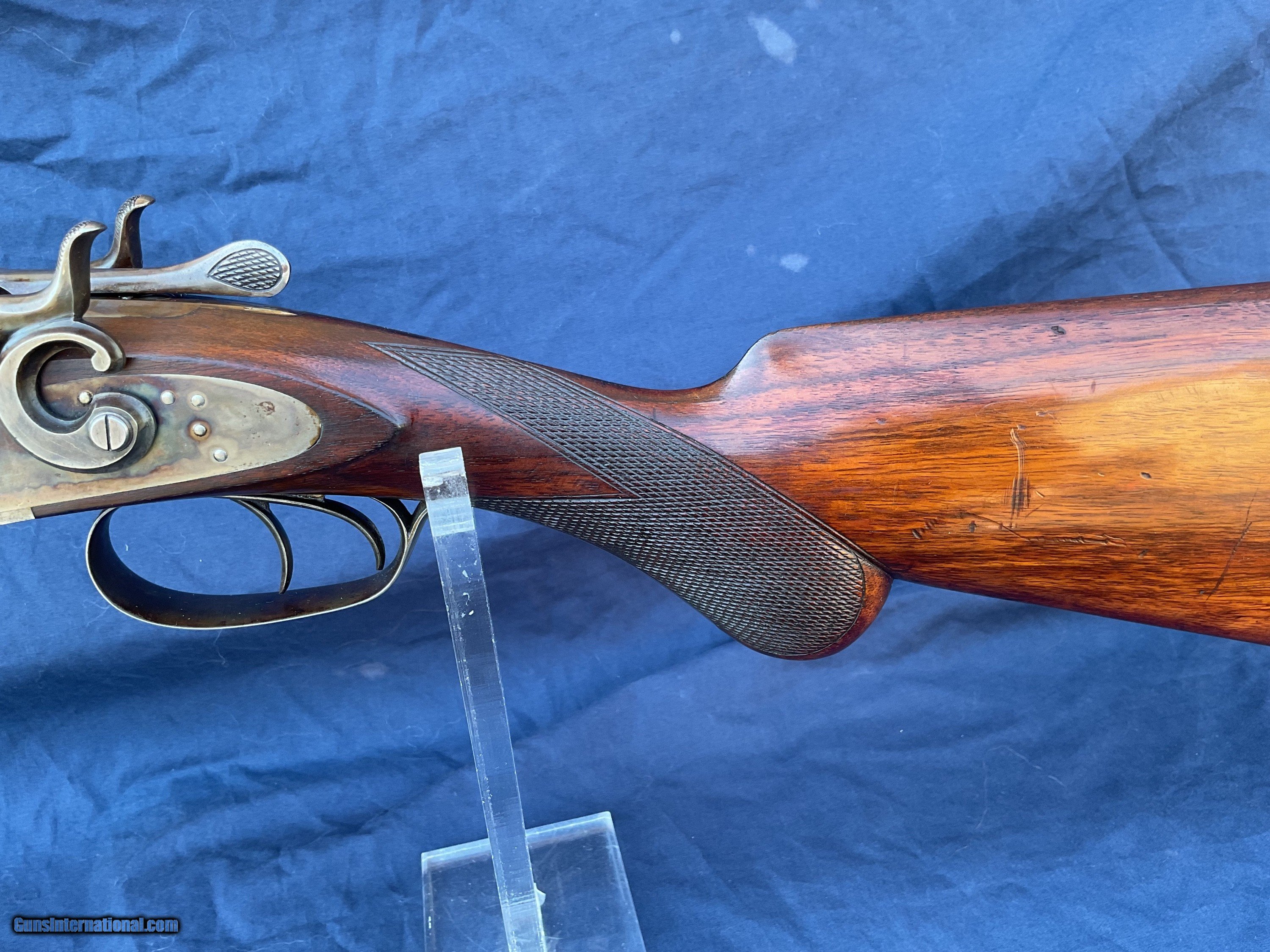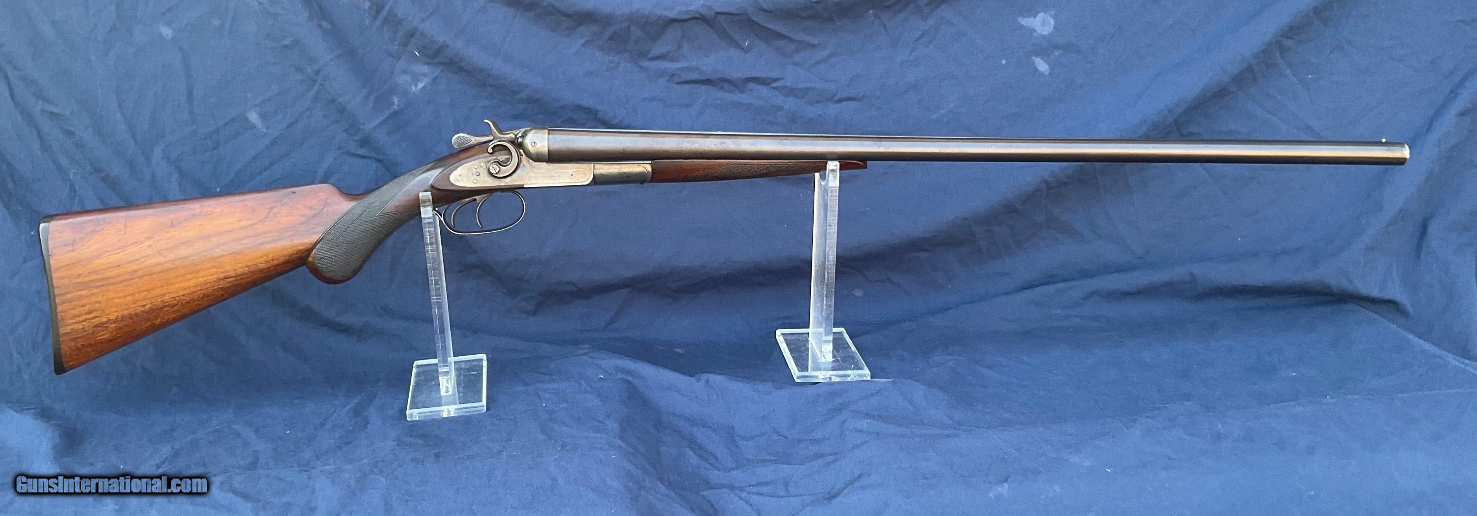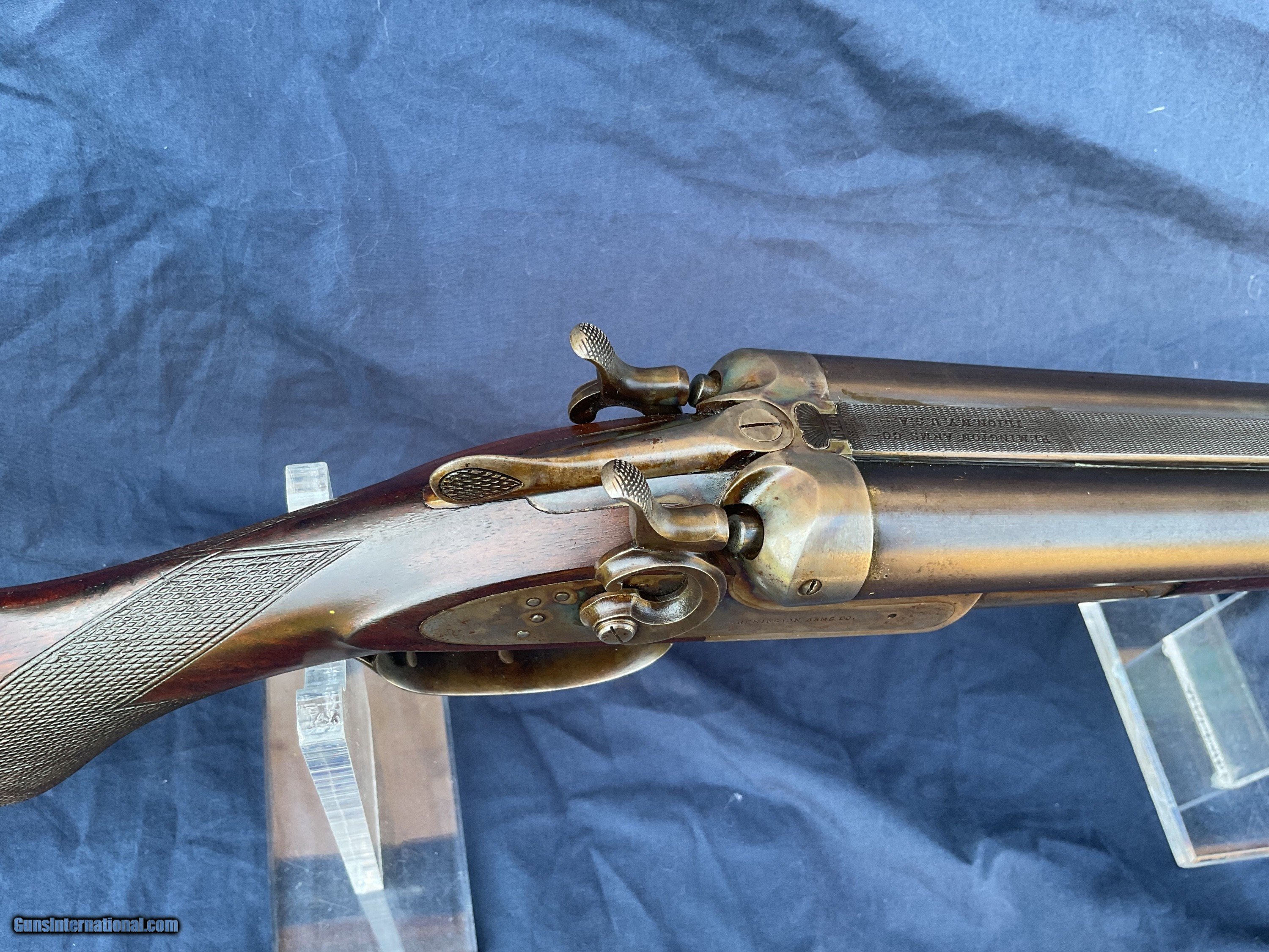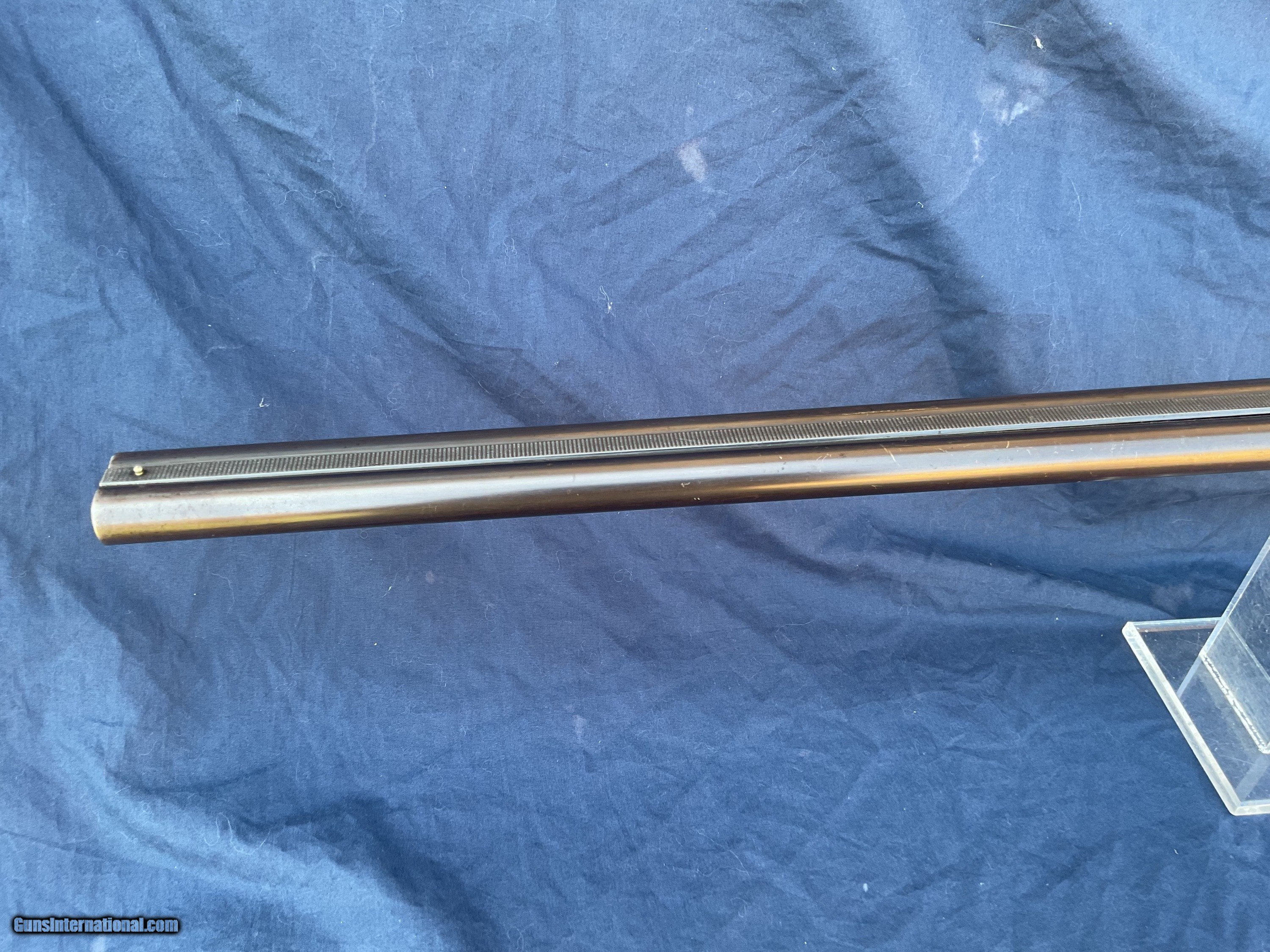 Description: Very nice condition Remington Model 1889 12 gauge hammer double barrel shotgun. Considered one of the finest shotguns of the period, the Remington Model 1889 proved popular through the 1890s. All serial numbers / assembly numbers match. Offered from plain to fancy grades, this example with serial number 88765 sports a checkered pistol grip stock and forend, case colored action and steel barrels. The forend also has a fancy inletted steel release lever for quick removal of the forend and barrels for cleaning, storing or traveling. Frequently, these pre-20th century shotguns are found in very hard used and often abused condition. This outstanding example still retains fine vivid case colors on the side plates, frame, lever lock, and hammers. Finding any original case color is unusual and desirable. The 30" barrels retain 60-65% original blue with remainder a nice brown / gray patina. The top of the barrels in front of the breech are marked “REMINGTON ARMS CO. ILION, NY USA” and each side lock plate are also marked “REMINGTON ARMS CO.” The stock and forend show fine checkering with the forend displaying a factory inletted forend cap. The wood is solid and in generally excellent condition. The butt stock is fitted with the correct factory hard rubber checkered butt plate with the attractive Remington logo embossed in the upper center. The action is extremely tight with no play between the barrels and receiver. Both hammers function perfectly with their corresponding triggers. Amazingly, both bores are in great condition with no pitting or corrosion, which is unusual for any shotgun from this period. These Remington made double guns are quite scarce now and are rarely found in this kind of condition. I offer a layaway plan and will consider trades. Please feel free to ask questions. SOLD Antique: Yes |