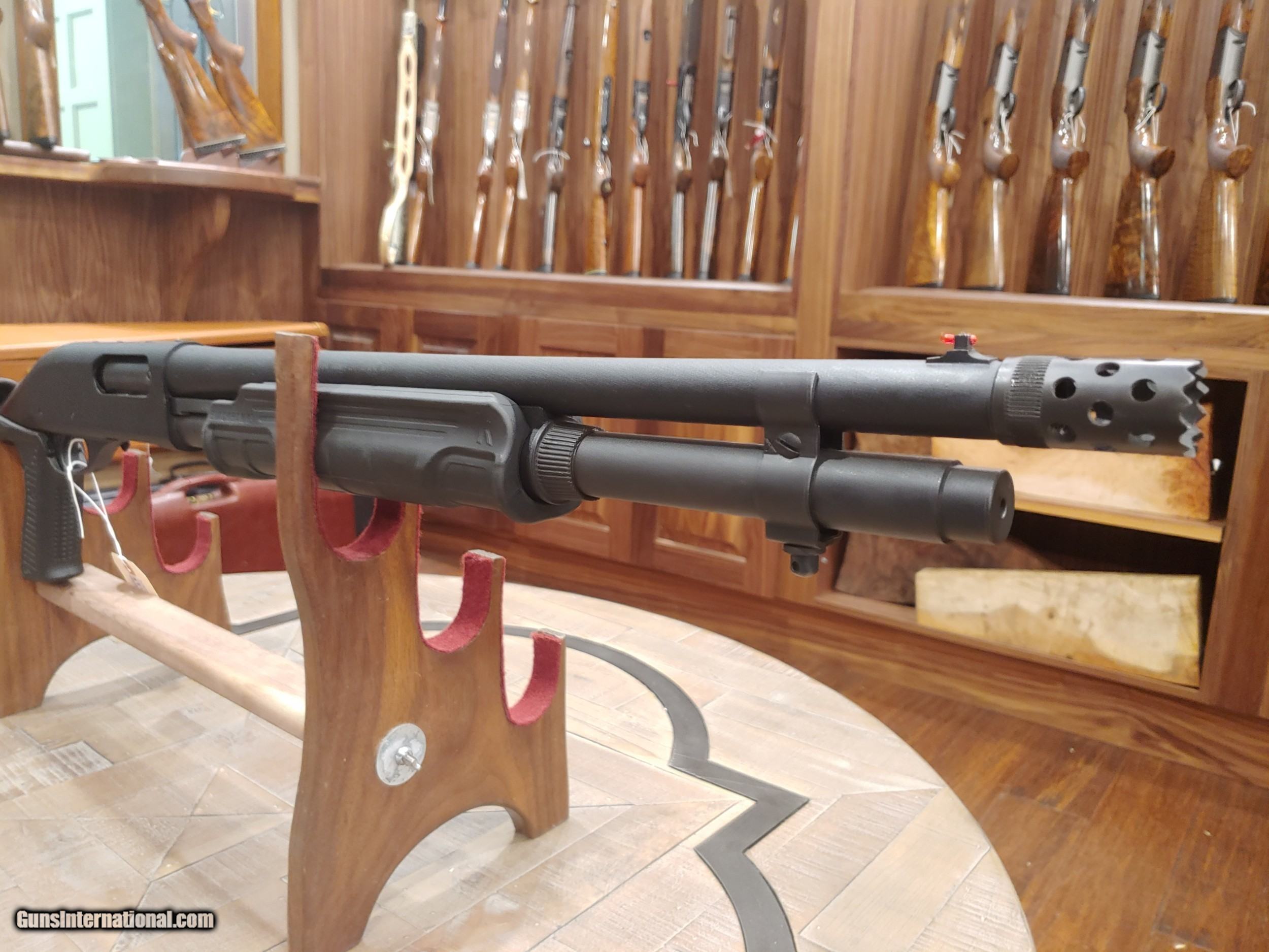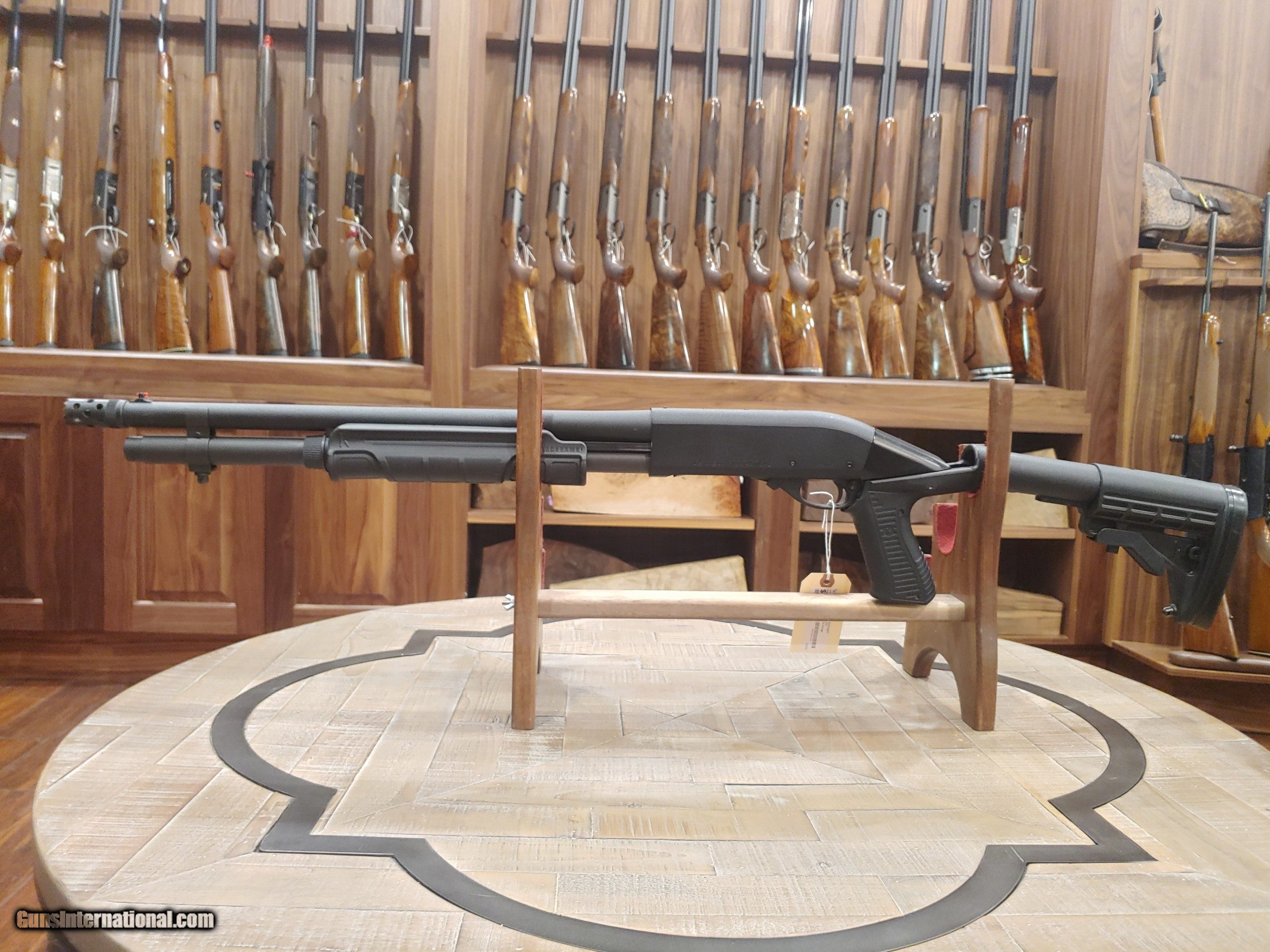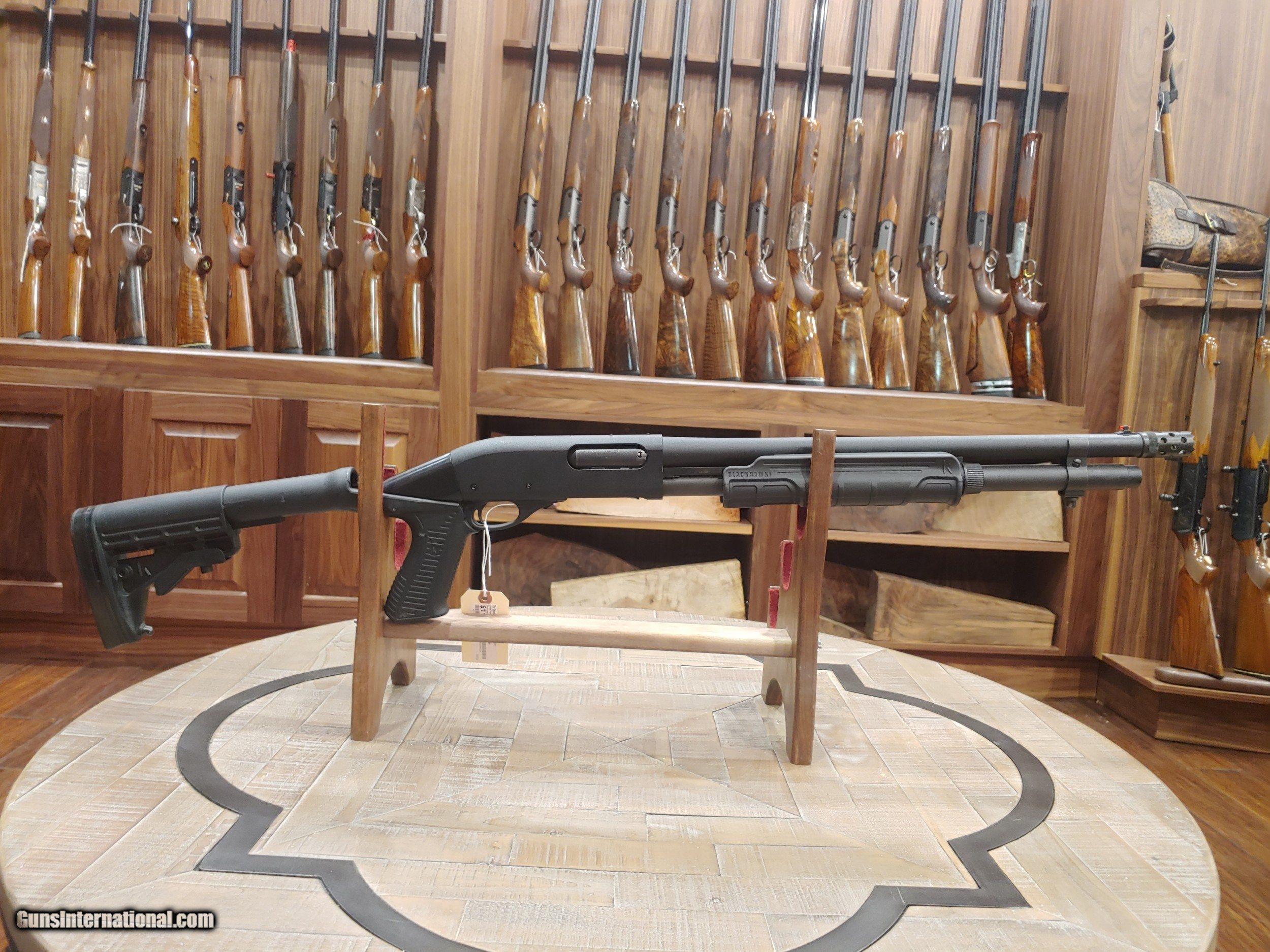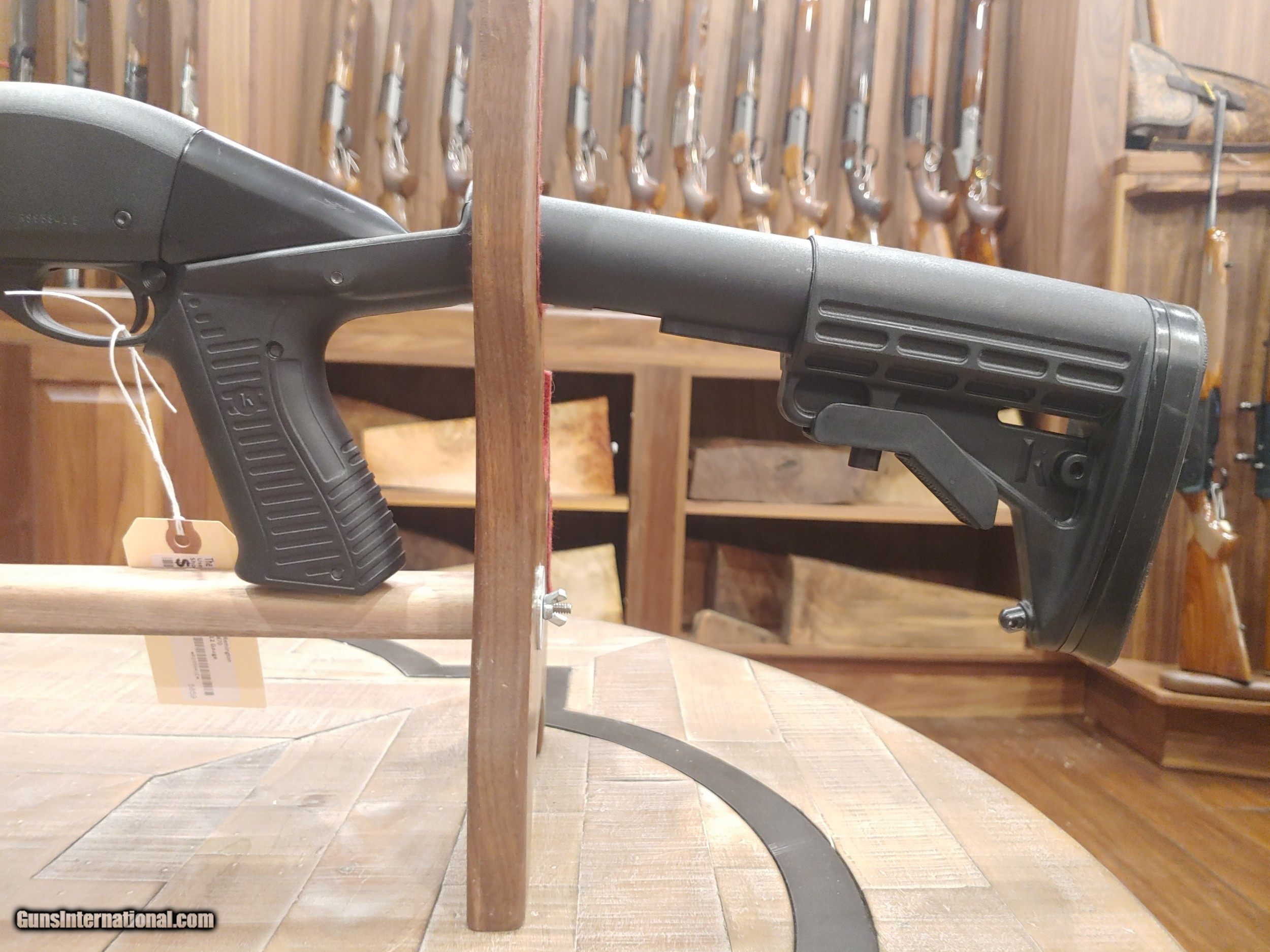 Description: This Remington 870 is an 18" 12-gauge pump-action shotgun with a 2" muzzle. It chambers 2-3/4" & 3" shells. The overall length is 38.5" - 41.5" and the length of pull is 12" - 15" both depending on the position of the adjustable tactical stock. The gun also features a polymer grip and Blackhawk forend. The gun is in amazing condition.