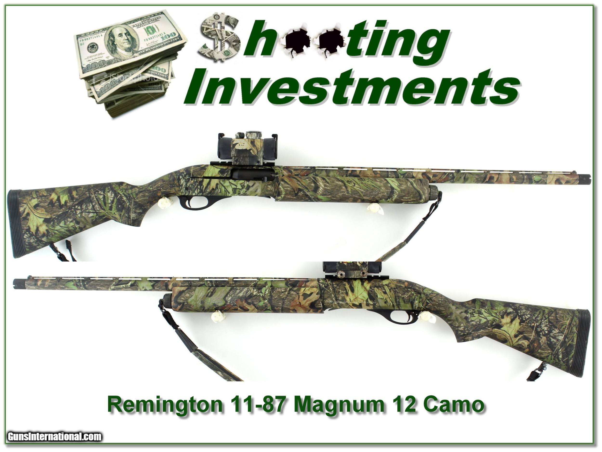 Description: This is an as new Remington 11-87 Super Magnum 12 Ga 3.5in Magnum. It was bought new by its owner who used it once. It has a 24in barrel with one extended choke tube. It includes matching camo sling and camo TruGlo red dot scope. It is a turkey getter! I am selling this one on consignment and as such lay-a-way can’t be used. It does of course have the standard 3-day inspection. Shipping with insurance is $69. Please email me with any questions or larger pictures. (Consign your quality firearms with Shooting Investments for only 12%! Let me know if you have any you would like to sell!) 20-0062 Payment: Payment is by Money Order, Cashiers Check or Personal Check. I can now also accept Credit Cards (MasterCard, Visa, Discover & American Express) with a 3% convenience fee. PayPal can be used for some items but never for firearms. Shipping: The shipping charge will be listed in each description. It is $39 for most firearms. Some heavy guns or those insured for over $2000 will be higher. Shipments to Alaska and Hawaii are higher because air shipment is required. Most firearms are shipped on Tuesday and Thursday and usually in 5 days of receipt of payment. We package all shipments carefully and insure them. Optics are shipped Priority Mail and most other non-firearm shipments are shipped First Class. Returns: Our return policy is simple. If for any reason you are not pleased with your purchase, you may return your item for a full refund of purchase price. Ammunition cannot be returned. It is important to us that you are happy. Guns cannot be fired or dissembled before returning them and they must be returned in the same condition as received. Notification of a return must occur with-in 3 days of receipt at your dealer. Shipping, convenience and dealer fees are not refundable and are the responsibility of the buyer. Lay-a-way: If needed, we offer a 60 day lay-a-way option on most firearms. It is 1/3 now, 1/3 in 30 days and 1/3 in 60 days. Lay-a-way firearm sales are final and if not completed the first payment cannot be returned. Consigning your firearms with Shooting Investments: We will help you get top dollar for your firearms. While most local guns shops charge 20% or more, our fee is only 12% with a minimum of $75. At your local gun shop it might take months to sell. Selling on-line provides instant access to thousands of interested buyers. You won’t find any other on-line dealer willing to sell your firearms for only 12% or listing every gun on 3 separate s. Selling through an House typically costs the seller 15% and the buyer an addition 15% (so 30%) and you have to wait several months to sell and longer to receive funds. If properly priced, we will sell your firearms in a few weeks. Send us an email or give us a call and we’ll explain how easy it is for you to get top dollar. Trading: Trading for use is really just buying your gun to re-sell. If you have a gun you want to trade, please email a picture and we will let you know what we can give or it. You will always get more if we sell it for you on consignment. Help for California Buyers: We are happy to ship to California. It is the buyer’s responsibility to make sure any item you buy is legal in your state. We are also happy to help with your purchase of a firearm from someone other than us. If you see a gun you would like to buy but the seller can’t or won’t ship to California they can ship to use and we’ll then ship it to your California dealer. The cost for this service is only $30 + shipping. Let us know if we can help! SOLD |