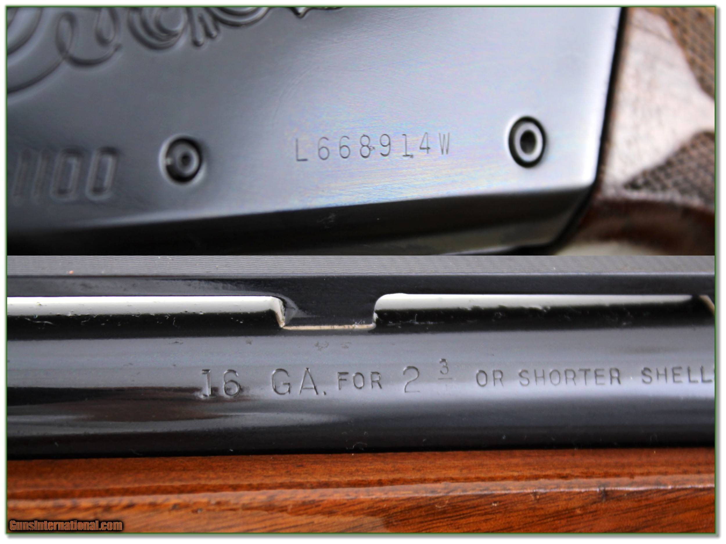 Description: This is a very hard to find Remington 1100 16 Gauge! It has a 28in Vent Rib Modified barrel. I think the receiver was reblued but no visible reason I see for a reblue. No faded or polished numbers or letters or underlying pits. The stock looks to have a clear coat added with 3 mars otherwise nice. The forearm has original finished with just some light marks. This one could be restored to perfect or used as intended as a nice classic field gun! I am selling this one on consignment and as such lay-a-way can’t be used. It does of course have the standard 3-day inspection. Shipping and insurance is $39. Please email me with any questions or larger pictures. (Consign your quality firearms with Shooting Investments for only 12%! Let me know if you have any you would like to sell!) 20-1209 Payment: Payment is by Money Order, Cashier’s Check or Personal Check. I can now also accept Credit Cards (MasterCard, Visa, Discover & American Express) with a 3% convenience fee. Shipping: The shipping charge will be listed in each description. It is $39 for most firearms. Some heavy guns or those insured for over $2000 will be higher. Shipments to Alaska and Hawaii are higher because air shipment is required. Most firearms are shipped on Tuesday and Thursday and usually in 5 days of receipt of payment. We package all shipments carefully and insure them. Optics are shipped Priority Mail and most other non-firearm shipments are shipped First Class. Returns: Our return policy is simple. If for any reason you are not pleased with your purchase, you may return your item for a full refund of purchase price. Ammunition cannot be returned. It is important to us that you are happy. Guns cannot be fired or dissembled before returning them and they must be returned in the same condition as received. Notification of a return must occur with-in 3 days of receipt at your dealer. Shipping, convenience and dealer fees are not refundable and are the responsibility of the buyer. Lay-a-way: If needed, we offer a 60 day lay-a-way option on most firearms. It is 1/3 now, 1/3 in 30 days and 1/3 in 60 days. Lay-a-way firearm sales are final and if not completed the first payment cannot be returned. Consigning your firearms with Shooting Investments: We will help you get top dollar for your firearms. While most local guns shops charge 20% or more, our fee is only 12% with a minimum of $75. At your local gun shop it might take months to sell. Selling on-line provides instant access to thousands of interested buyers. You won’t find any other on-line dealer willing to sell your firearms for only 12% or listing every gun on 3 separate s. Selling through an House typically costs the seller 15% and the buyer an addition 15% (so 30%) and you have to wait several months to sell and longer to receive funds. If properly priced, we will sell your firearms in a few weeks. Send us an email or give us a call and we’ll explain how easy it is for you to get top dollar. Trading: Trading for use is really just buying your gun to re-sell. If you have a gun you want to trade, please email a picture and we will let you know what we can give or it. You will always get more if we sell it for you on consignment. Help for California Buyers: We are happy to ship to California. It is the buyer’s responsibility to make sure any item you buy is legal in your state. We are also happy to help with your purchase of a firearm from someone other than us. If you see a gun you would like to buy but the seller can’t or won’t ship to California they can ship to use and we’ll then ship it to your California dealer. The cost for this service is only $30 + shipping. Let us know if we can help! SOLD |