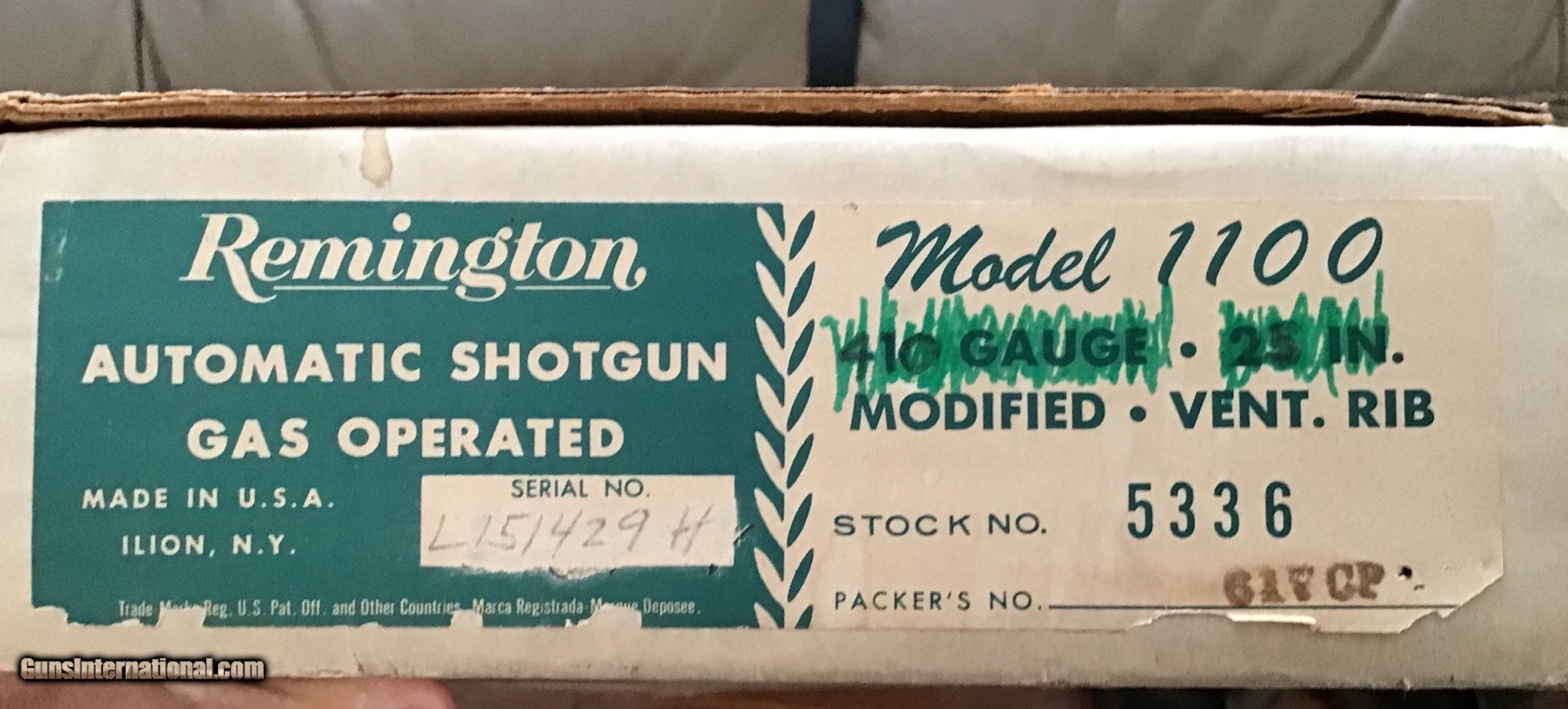 REMINGTON 1100, 410 GA., 25” MOD., 3” CHAMBER, VENT RIB, NEW UNFIRED, 100% COND. IN THE REMINGTON DUPONT BOX