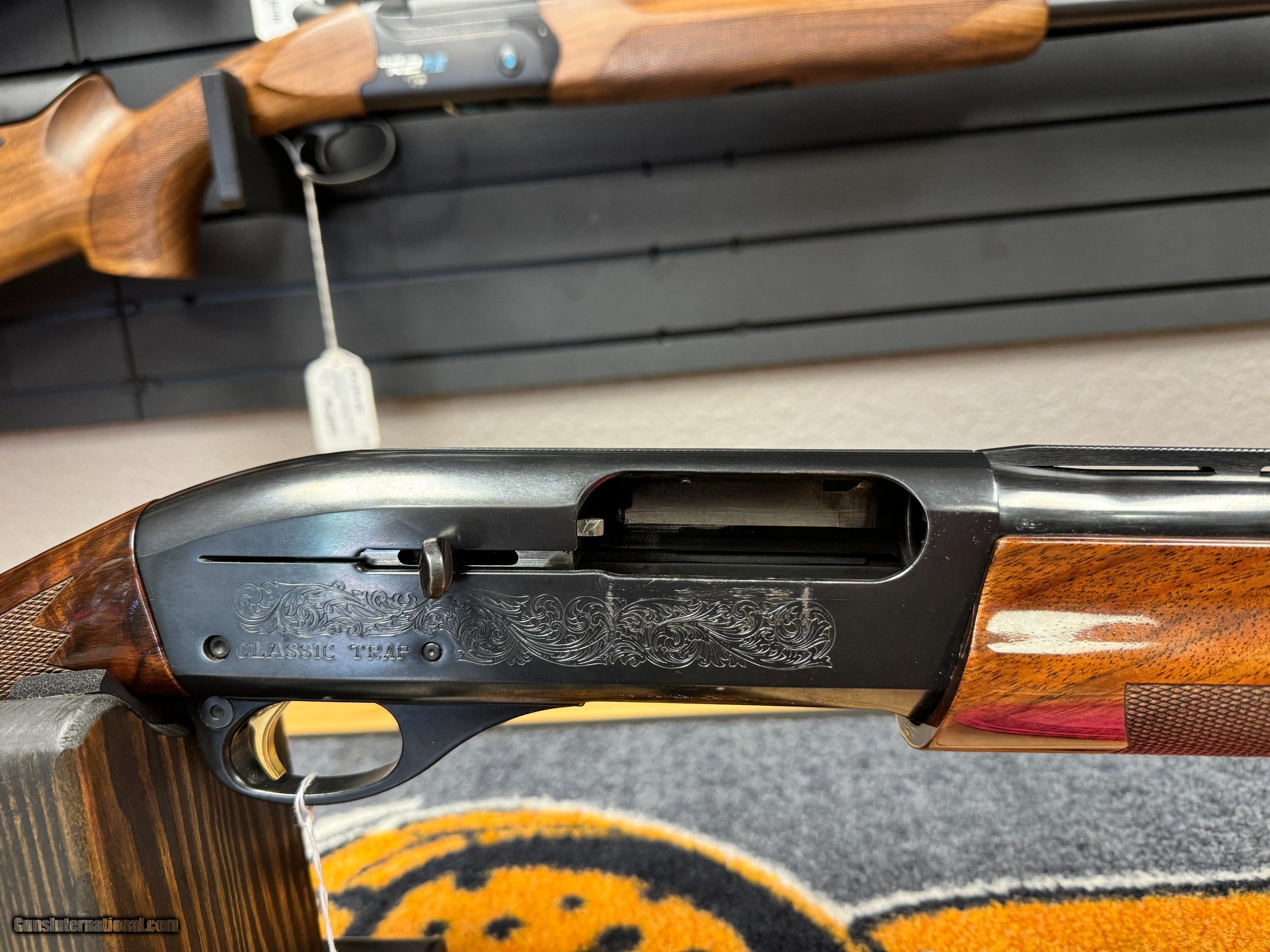Description: Just Arrived Consignment Remington 1100 Classic Trap 12ga 30" New to our store is this great condition Remington 1100 Classic Trap. Looking for a quality trap gun but don't feel like paying premium prices for a new auto? We've got you covered. This 1100 Classic Trap has been lovingly maintained and looked after by its previous owner and it shows. Only a few nicks and handling marks to be had. Other than that, it looks and operates just like new, including the fantastic looking gold eagle inlay. Featuring Remington's classic gas system that has been cycling shells since the 60's, this gun won't balk at whatever shells you want to use and will serve you well on the trap range! For more information or to purchase this gun contact Bad Oscar Shooting Sports and ask for Don. 715-388-8411 SOLD Shotgun Gauge: 12 Gauge Manufacturer: Remington Model: 1100 Classic Trap Serial Number: R190765V Chambers: 2 3/4 Ejectors: Auto Condition: Great Metal Condition: Great Wood Condition: Great Bore Condition: Excellent Action: Automatic Stock: Monte Carlo Butt Pad: Red Rubber Sights: High Visibility Red Bead Front, metal mid bead Manufacture Date: 2001 Engraving: Gold Eagle Inlay Case: No Item Location: Wisconsin |