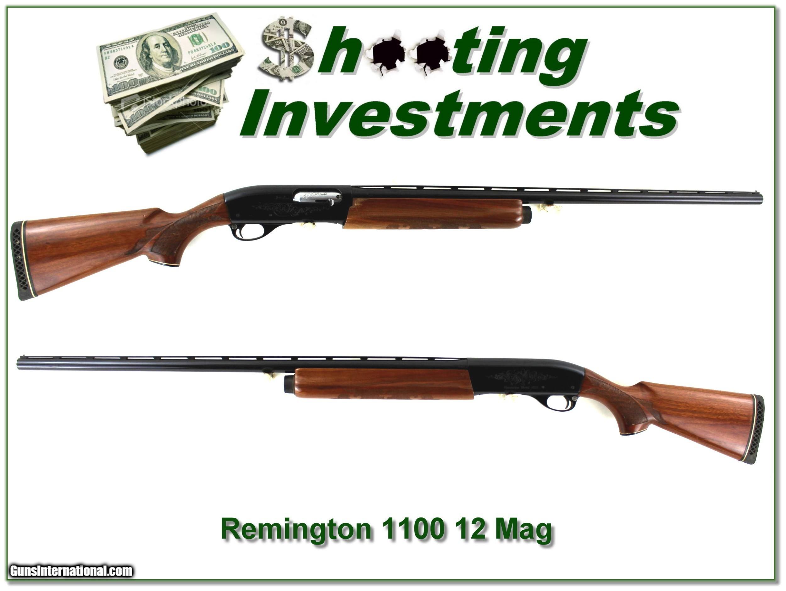 Description: This is a Remington 1100 Magnum 12 Gauge. The metal is excellent, and it has a 30in Vent Rib full choked barrel. Aside from the top rear of the right side of the forearm the wood is excellent too. It will make a classic Duck or Turkey Remington and there won’t ever be any more like this one! Shipping and insurance is $49. Please email me with any questions or larger pictures. (Consign your quality firearms with Shooting Investments for only 12%! Let me know if you have any you would like to sell!) 22-0740 Payment: Payment is by Money Order, Cashiers Check or Personal Check. I can now also accept Credit Cards (MasterCard, Visa, Discover & American Express) with a 3% convenience fee. Shipping: The shipping charge will be listed in each description. It is $49 for most long guns. Some heavy guns, over 48in boxes or those insured for over $2000 will be higher. Shipments to Alaska and Hawaii are higher because air shipment is required. Most firearms are shipped on Tuesday and Thursday and usually in 5 days of receipt of payment. We package all shipments carefully and insure them. Optics are shipped Priority Mail and most other non-firearm shipments are shipped First Class. Returns: Our return policy is simple. If for any reason you are not pleased with your purchase, you may return your item for a full refund of purchase price. Ammunition cannot be returned. It is important to us that you are happy. Guns cannot be fired or dissembled before returning them and they must be returned in the same condition as received. Notification of a return must occur with-in 3 days of receipt at your dealer. Shipping, convenience and dealer fees are not refundable and are the responsibility of the buyer. Lay-a-way: If needed, we offer a 60 day lay-a-way option on most firearms. It is 1/3 now, 1/3 in 30 days and 1/3 in 60 days. Lay-a-way firearm sales are final and if not completed the first payment cannot be returned. Consigning your firearms with Shooting Investments: We will help you get top dollar for your firearms. While most local guns shops charge 20% or more, our fee is only 12% with a minimum of $75. At your local gun shop it might take months to sell. Selling on-line provides instant access to thousands of interested buyers. You won’t find any other on-line dealer willing to sell your firearms for only 12% or listing every gun on 3 separate s. Selling through an House typically costs the seller 15% and the buyer an addition 15% (so 30%) and you have to wait several months to sell and longer to receive funds. If properly priced, we will sell your firearms in a few weeks. Send us an email or give us a call and we’ll explain how easy it is for you to get top dollar. Trading: Trading for use is really just buying your gun to re-sell. If you have a gun you want to trade, please email a picture and we will let you know what we can give or it. You will always get more if we sell it for you on consignment. Help for California Buyers: We are happy to ship to California. It is the buyer’s responsibility to make sure any item you buy is legal in your state. We are also happy to help with your purchase of a firearm from someone other than us. If you see a gun you would like to buy but the seller can’t or won’t ship to California they can ship to use and we’ll then ship it to your California dealer. The cost for this service is only $30 + shipping. Let us know if we can help! SOLD |