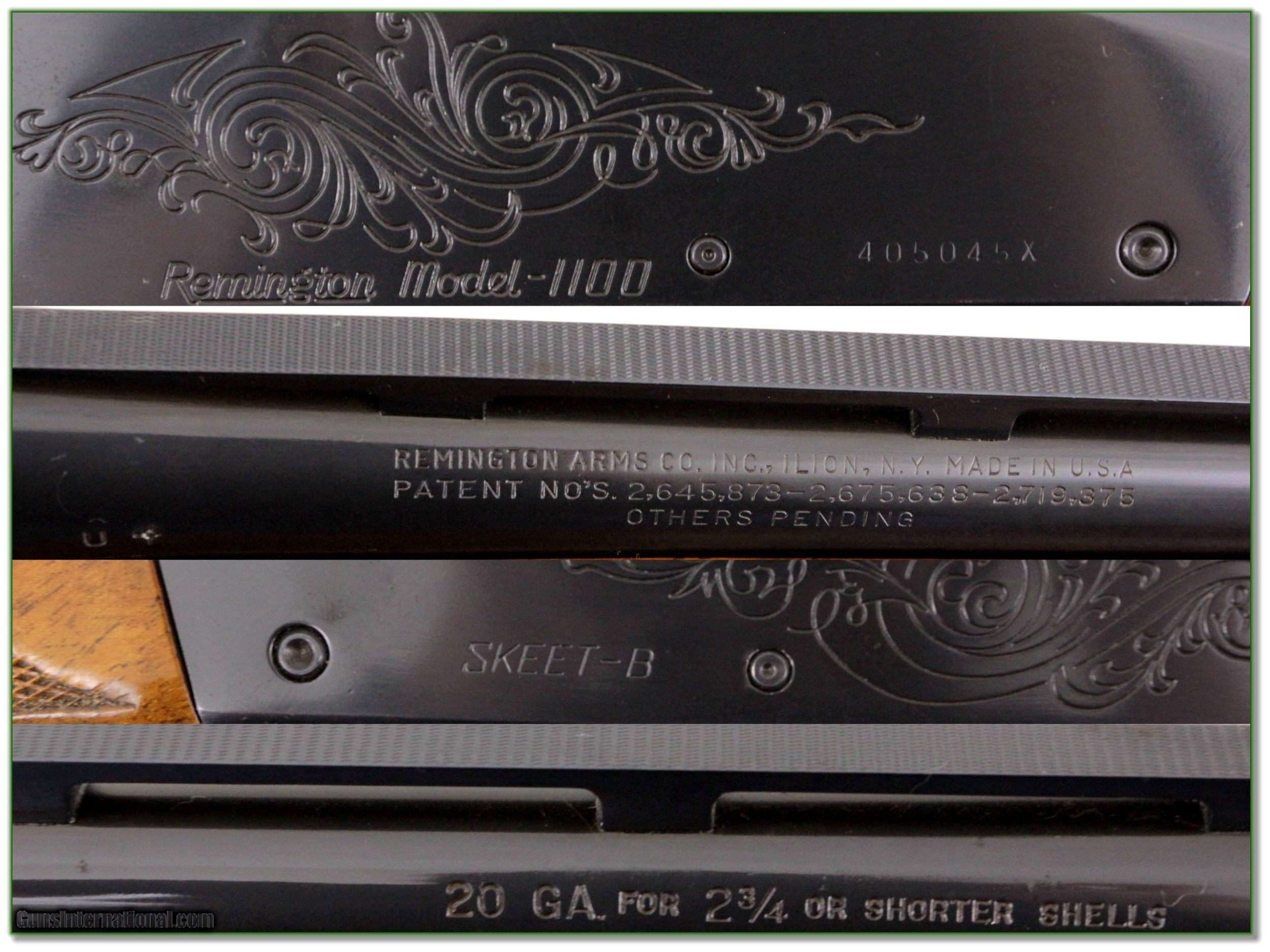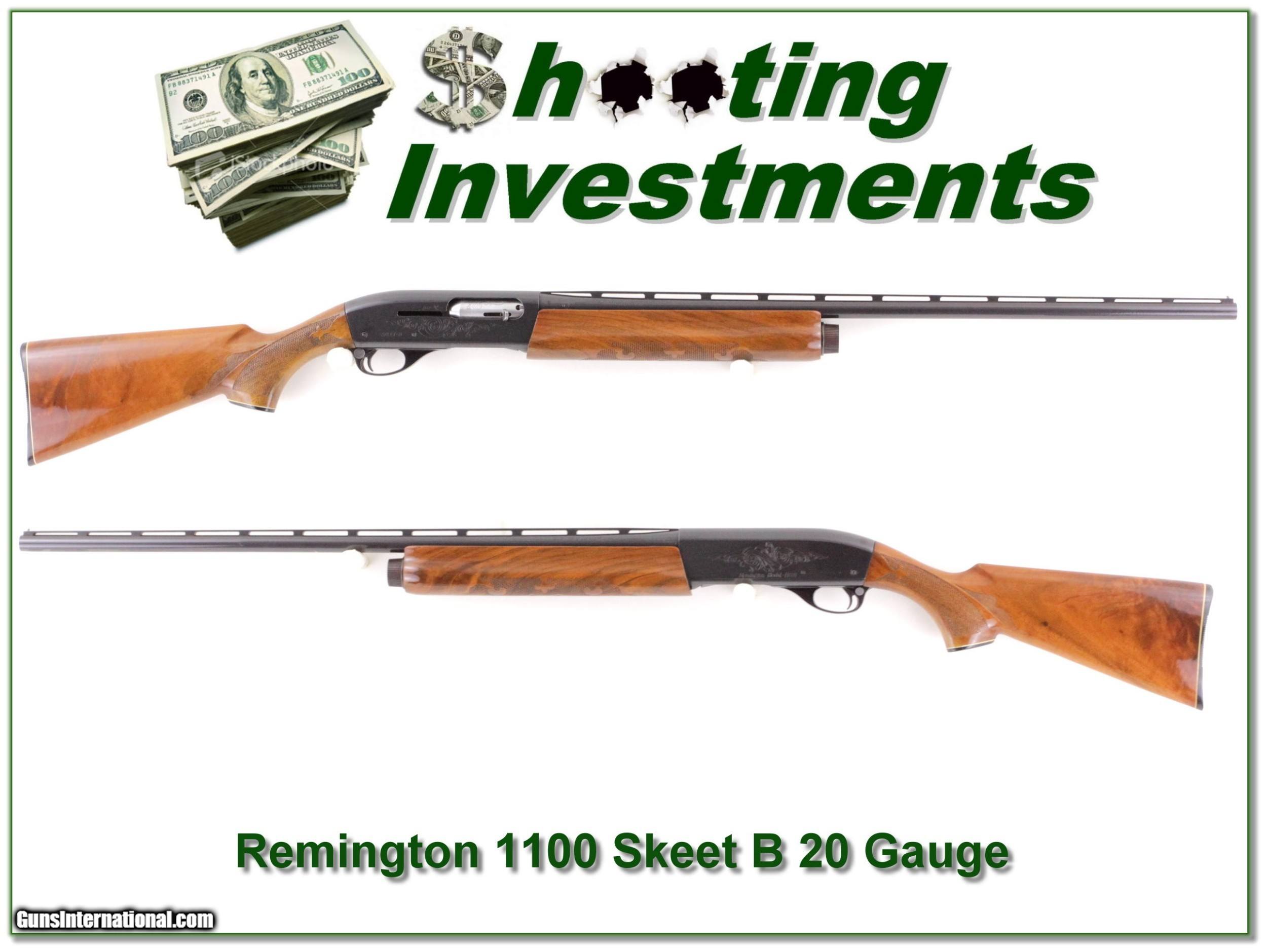 Description: This is a beautiful and early Remington 1100 Skeet-B in the hard to find 20 gauge. It is in excellent condition and show only light use with just a few minor handing marks. The barrel is Vent Rib 28in Modified. I am selling this one on consignment and as such lay-a-way can’t be used. It does of course have the standard 3-day inspection. Shipping with insurance is $39. Please email me with any questions or larger pictures. (Consign your quality firearms with Shooting Investments for only 12%! Let me know if you have any you would like to sell!) 19-1242 Payment: Payment is by Money Order, Cashiers Check or Personal Check. I can now also accept Credit Cards (MasterCard, Visa, Discover & American Express) with a 3% convenience fee. PayPal can be used for some items but never for firearms. Shipping: The shipping charge will be listed in each description. It is $39 for most firearms. Some heavy guns or those insured for over $2000 will be higher. Shipments to Alaska and Hawaii are higher because air shipment is required. Most firearms are shipped on Tuesday and Thursday and usually in 5 days of receipt of payment. We package all shipments carefully and insure them. Optics are shipped Priority Mail and most other non-firearm shipments are shipped First Class. Returns: Our return policy is simple. If for any reason you are not pleased with your purchase, you may return your item for a full refund of purchase price. Ammunition cannot be returned. It is important to us that you are happy. Guns cannot be fired or dissembled before returning them and they must be returned in the same condition as received. Notification of a return must occur with-in 3 days of receipt at your dealer. Shipping, convenience and dealer fees are not refundable and are the responsibility of the buyer. Lay-a-way: If needed, we offer a 60 day lay-a-way option on most firearms. It is 1/3 now, 1/3 in 30 days and 1/3 in 60 days. Lay-a-way firearm sales are final and if not completed the first payment cannot be returned. Consigning your firearms with Shooting Investments: We will help you get top dollar for your firearms. While most local guns shops charge 20% or more, our fee is only 12% with a minimum of $75. At your local gun shop it might take months to sell. Selling on-line provides instant access to thousands of interested buyers. You won’t find any other on-line dealer willing to sell your firearms for only 12% or listing every gun on 3 separate s. Selling through an House typically costs the seller 15% and the buyer an addition 15% (so 30%) and you have to wait several months to sell and longer to receive funds. If properly priced, we will sell your firearms in a few weeks. Send us an email or give us a call and we’ll explain how easy it is for you to get top dollar. Trading: Trading for use is really just buying your gun to re-sell. If you have a gun you want to trade, please email a picture and we will let you know what we can give or it. You will always get more if we sell it for you on consignment. Help for California Buyers: We are happy to ship to California. It is the buyer’s responsibility to make sure any item you buy is legal in your state. We are also happy to help with your purchase of a firearm from someone other than us. If you see a gun you would like to buy but the seller can’t or won’t ship to California they can ship to use and we’ll then ship it to your California dealer. The cost for this service is only $30 + shipping. Let us know if we can help! SOLD |