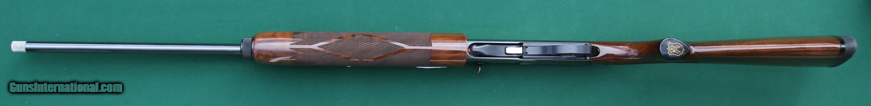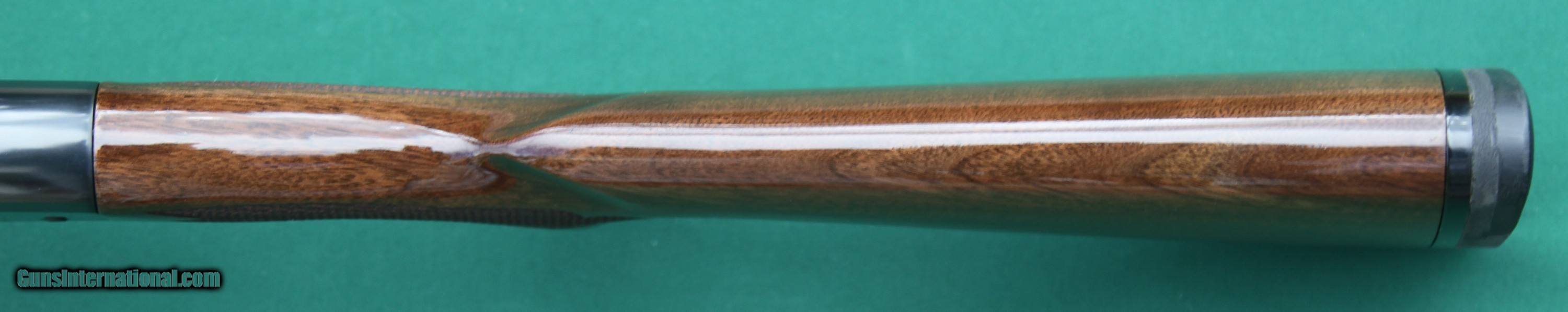 Description: NWTF - 2004 G.O.Y. (National Wild Turkey Federation - 2004 Gun of the Year) Remington 1100 Sporting 28, 28-gauge, autoloading shotgun with high gloss finish, checkered walnut stock and forend; a high-polished blued 25” Rem Choke barrel with one Briley MOD choke tube (installed), a ventilated rig, a 2¾-inch chamber, mid-barrel and muzzle beads, and a gold-colored trigger. Other accessories include the original cardboard box with styrofoam inserts, and the original Owner’s Manual. The barrel is stamped on the left side with a star symbol followed by “28 GA. 2¾””. The barrel is stamped on the right side with “REMINGTON ARMS Co. ILION, NY”. Both sides of the receiver have gold-colored and non-colored engravings. The right side has two gold-colored turkeys facing one another and surrounded by a gold-colored wreath that extends left and right away from the turkeys. Arched over the turkeys is engraved “National Wild Turkey Federation”. Between the two turkeys is “2004”. Behind the turkeys and wreath is a non-colored field and forest scene engraving. On the left side of the receiver is a larger engraving of a single puffed tom turkey with tail feathers fanneed. He is surrounded by a similar but larger gold-colored wreath also extending left and right away from the turkey. Behind the tom is a non-colored forest scene similar that on the right side of the receiver. “REMINGTON 1100” is stamped on the front lower corner of the receiver. The length of pull is 14 inches. The drop at the comb is about 1¾ inches. The drop at the heel is about 2¼ inches. The year of manufacture is 2004 based on the 2004 inscription on the right side of the receiver. I cannot make out code on the left side of the receiver about an inch in front of the receiver (if that is what it is) to determining month manufactured.. The gun is essentially new-in-the-box, though the box has some handling marks and tap marks. The condition of the gun is 100 percent - never fired. The finish on metal and walnut wood is 100 percent. The barrel is 100 percent, with no marks or other blemishes of any type. The receiver and trigger guard are also 100 percent, with no marks or blemished. The forearm is 100 percent, with no other marks on the forearm. The checkering is deep, crisp, and unmarred. The checkering on the pistol grip is also deep, crisp, and unmarred. The pistol grip bears the Remington crest on the bottom of the grip. The stock is also 100 percent. The butt plate is in new condition. The photos are high resolution, so zoom to see details. Contact me for additional photos of any area you would like to see or see better. The buyer pays $55 for USPS Priority mail and $57.85 for insurance – actual cost. Virginia buyers must pay 5.3% sales tax. The fastest way to get this gun is to pay with USPS (U.S. Postal Service) money orders, as they are like cash. I will ship the gun immediately upon receipt of a USPS money order and an FFL. I will also accept a personal check or other type money, as well as bank checks and cashier's checks, but I will hold the gun until it clears my bank; this includes bank checks and cashier’s checks. I do not accept credit cards, debit cards, or PayPal. Check or money order must be made out to Jerry Pownall or Barboursville Arms. If you wish to contact me, please "Email Seller". I will answer your questions, explain the purchase / transfer process, and provide my mailing address. I am available any time, except Friday evenings and Saturdays. I will return emails Saturday evening. SOLD |