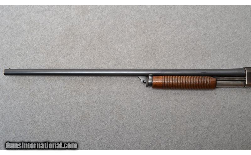 Description: Remington model 31 in 12 gauge with 2 3/4" chamber and 30" plain barrel with single metal bead. The bore is bright with no dings, dents, rings, or bulges. Action blue has thinned and started to turn a dull gray with some light patina. The barrel shows some blue wear at the muzzle along with some light scratches. The stock and fore end have some dings, dents, and scratches with a few through the finish. 12 Gauge SOLD Chambers: 2 3/4" chambers. Metal Condition: Bluing is starting to thin on action and turn dull gray with some light patina. Barrel shows blue wear at the muzzle with some light scratches. Magazine tube bluing is nearly all gone. Wood Condition: "Stock shows some handling marks, dings, and scratches with a few through the finish. Fore end has some light marks and dings, though none are through the finish. Bore Condition: "Bright bore with no dings, dents, rings, or bulges. Barrels: 30" barrel. Triggers: Smooth trigger. Stock Dimensions: "14 1/8"" LOP, 2"" DAC, 2 3/4""DAH Fore End: Walnut pistol grip stock and fore end. Butt Pad: Factory brown plastic butt plate. Weight: 7 lb - 12 oz Sights: Single metal bead. Chokes: Full Item Location: Mitchell, SD |
