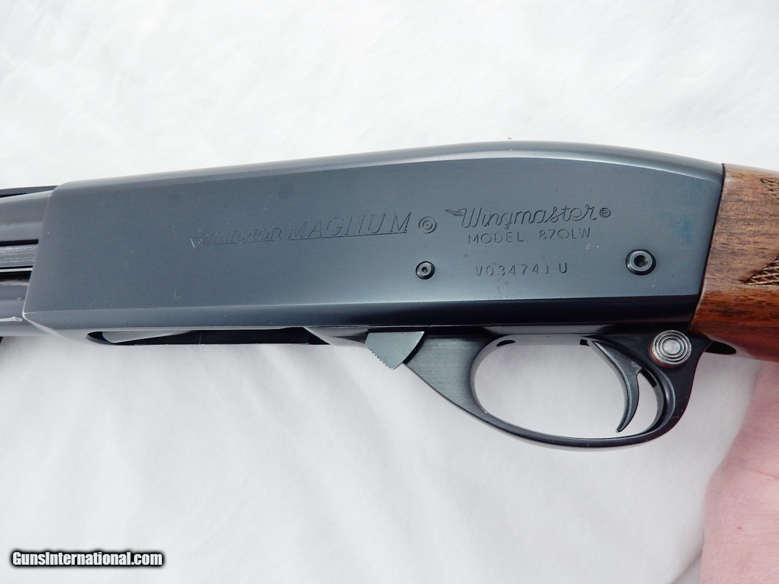 Description: This is a Remington 870 LW magnum with a 25 1/2 inch improved cylinder barrel. The barrel is 2 3/4 inch only. Gun is 98% wood and 97% metal. Buyer pays 35.00 shipping. Thank you. 48-13-12 SOLD |