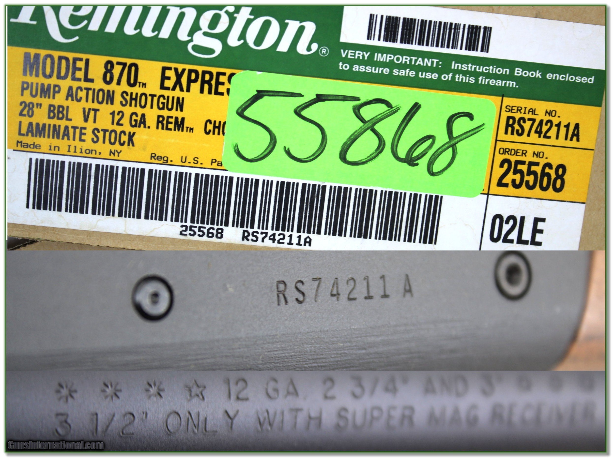 Description: This is a new, unfired and in the box Remington 870 with Laminated stock. It has a 28in Vent Rib Rem Choke barrel. It comes as seen in box with papers and 1 tube with wrench. I am selling this one on consignment and as such lay-a-way can’t be used. It does of course have the standard 3-day inspection. Shipping with insurance is $39. Please email me with any questions or larger pictures. (Consign your quality firearms with Shooting Investments for only 12%! Let me know if you have any you would like to sell!) 21-1524 Payment: Payment is by Money Order, Cashiers Check or Personal Check. I can now also accept Credit Cards (MasterCard, Visa, Discover & American Express) with a 3% convenience fee. Shipping: The shipping charge will be listed in each description. It is $39 for most firearms. Some heavy guns or those insured for over $2000 will be higher. Shipments to Alaska and Hawaii are higher because air shipment is required. Most firearms are shipped on Tuesday and Thursday and usually in 5 days of receipt of payment. We package all shipments carefully and insure them. Optics are shipped Priority Mail and most other non-firearm shipments are shipped First Class. Returns: Our return policy is simple. If for any reason you are not pleased with your purchase, you may return your item for a full refund of purchase price. Ammunition cannot be returned. It is important to us that you are happy. Guns cannot be fired or dissembled before returning them and they must be returned in the same condition as received. Notification of a return must occur with-in 3 days of receipt at your dealer. Shipping, convenience and dealer fees are not refundable and are the responsibility of the buyer. Lay-a-way: If needed, we offer a 60 day lay-a-way option on most firearms. It is 1/3 now, 1/3 in 30 days and 1/3 in 60 days. Lay-a-way firearm sales are final and if not completed the first payment cannot be returned. Consigning your firearms with Shooting Investments: We will help you get top dollar for your firearms. While most local guns shops charge 20% or more, our fee is only 12% with a minimum of $75. At your local gun shop it might take months to sell. Selling on-line provides instant access to thousands of interested buyers. You won’t find any other on-line dealer willing to sell your firearms for only 12% or listing every gun on 3 separate s. Selling through an House typically costs the seller 15% and the buyer an addition 15% (so 30%) and you have to wait several months to sell and longer to receive funds. If properly priced, we will sell your firearms in a few weeks. Send us an email or give us a call and we’ll explain how easy it is for you to get top dollar. Trading: Trading for use is really just buying your gun to re-sell. If you have a gun you want to trade, please email a picture and we will let you know what we can give or it. You will always get more if we sell it for you on consignment. Help for California Buyers: We are happy to ship to California. It is the buyer’s responsibility to make sure any item you buy is legal in your state. We are also happy to help with your purchase of a firearm from someone other than us. If you see a gun you would like to buy but the seller can’t or won’t ship to California they can ship to use and we’ll then ship it to your California dealer. The cost for this service is only $30 + shipping. Let us know if we can help! SOLD |