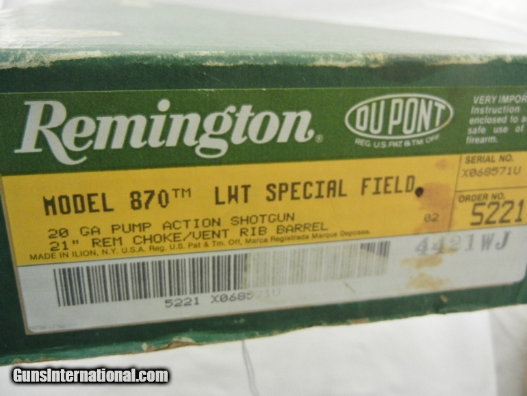 Description: This is a Remington 870 20 gauge with a 21 inch RemChoke barrel. This gun is 99% in the box. Buyer pays 35.00 shipping. Thank you. 32-11-1 SOLD |