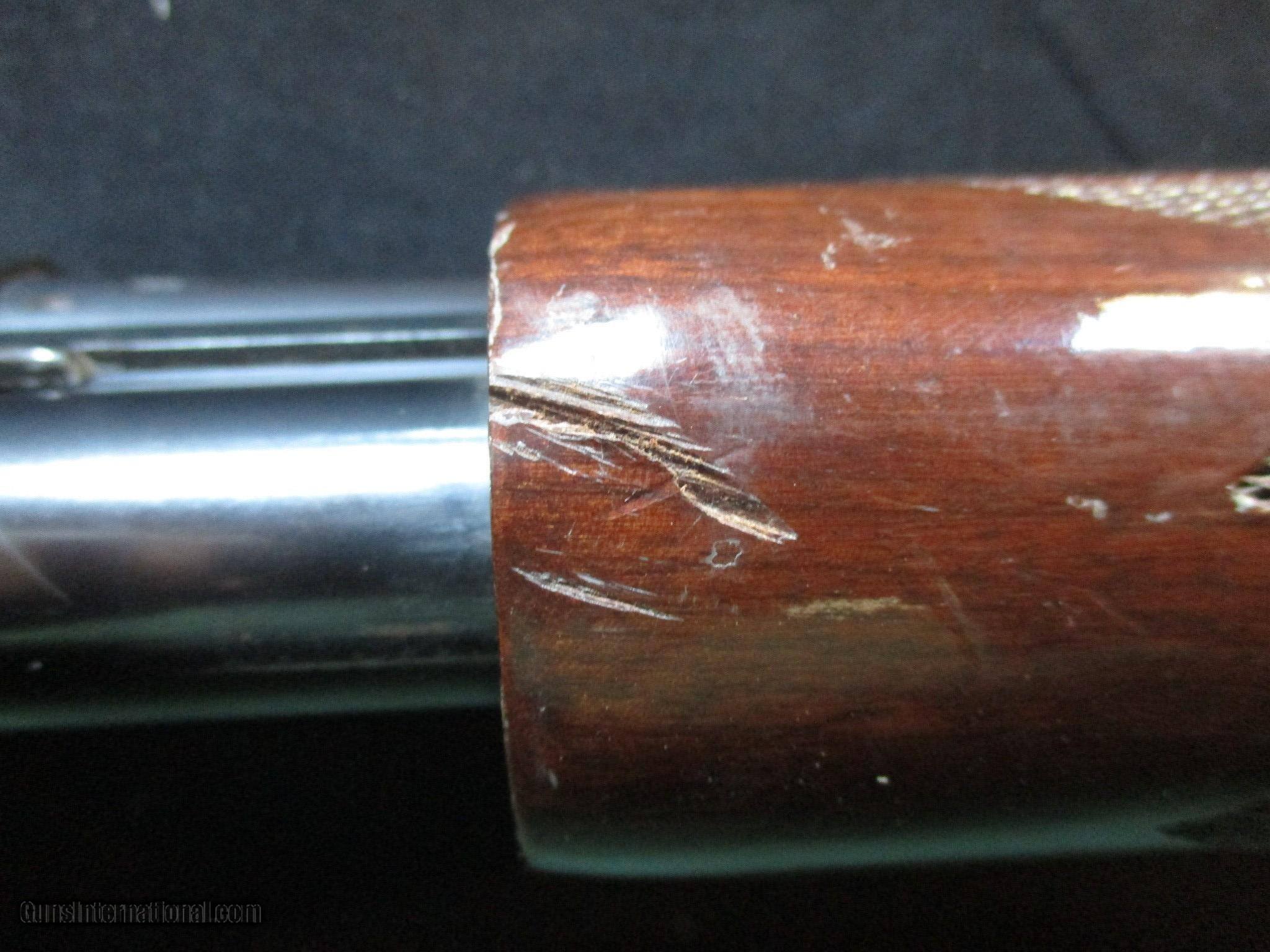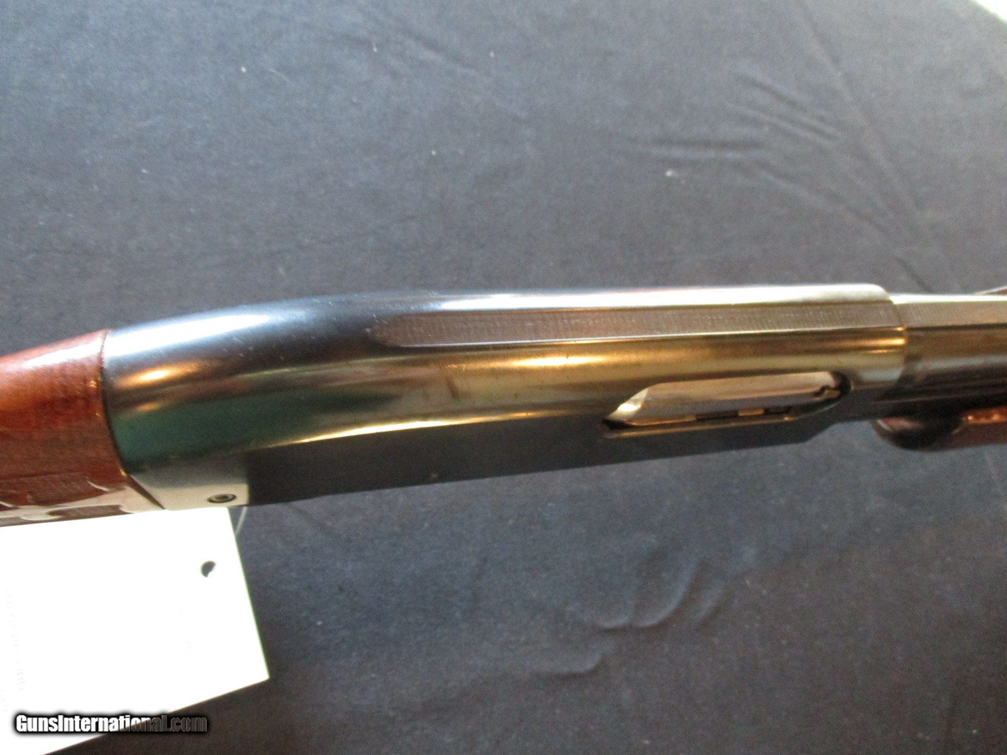 Description: Remington 870 Wingmaster, 12ga, 28" Vent rib, 2.75" chamber, fixed full choke, factory finish on both wood and metal, factory recoil pad. Nice gun with one ding (not a crack) in the forearm. SN is V7375xxV. Email me if you would like these pics sent to you, they will come through bigger and better than on the listing page here. Email me with any questions. I am a store front dealer, and I will close s if the gun sells locally. Once ahas reached my reserve, I will pull it from my shelves. Please check your local laws to confirm it is legal to own in your state! Buyer pays $25 shipping and insurance to your FFL, in the lower 48. AK, HI or PR is extra. I will ship to California, NO PROBLEM! All my guns come with a non firing, 3 day unconditional return privilege, from the day UPS delivers to your dealer. Buyer pays shipping both ways if the gun comes back. I can add a new hard case by PLANO for secure shipping for $25 if the buyer wishes (highly recommended, cheap insurance, really helps keep the UPS monster from eating my guns!). No sales tax on guns ship out of Kansas, guns sold in Kansas are subject to Kansas sales tax. I am a licensed FFL, and will include a copy of my FFL with the gun for your dealers records. I will ship to a C&R if the gun is eligible (you look it up!). I will ship to California, but you need to confirm the gun is legal where you are, California or other. I am always looking for good clean, old original Winchesters to buy, consign, or trade, especially pre '64's model 70's and model 54's. WE ALSO TRADE FOR CLASSIC CARS AND TRUCKS! I will leave feedback as soon as the buyer leaves feedback on me. Email me with any questions, and good luck! SOLD |
