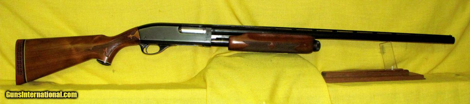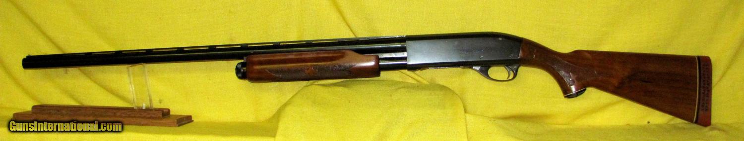 Description: REMINGTON model 870 WINGMASTER in 12 GA CAL., with 28" barrel. Color BLUE. REMINGTON MODEL 870 WINGMASTER, VENT RIB WITH FIXED MODIFIED CHOKE AND BRIGHT SHINY BORE, WALNUT STOCK AND FORE GRIP EXCELLENT, 95%+ FACTORY FINISH. OUR NEW STOCK # D31290 Condition 95%+. Serial number S287595V. SOLD |