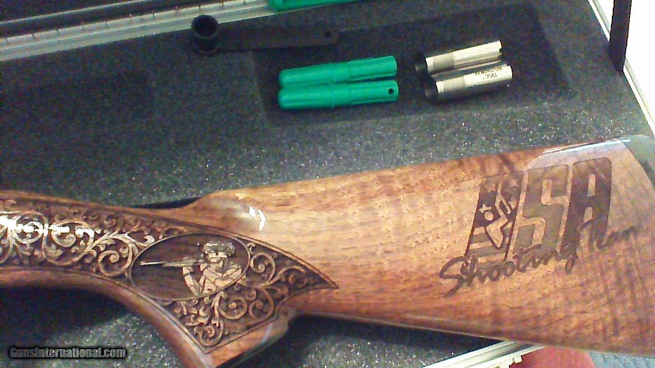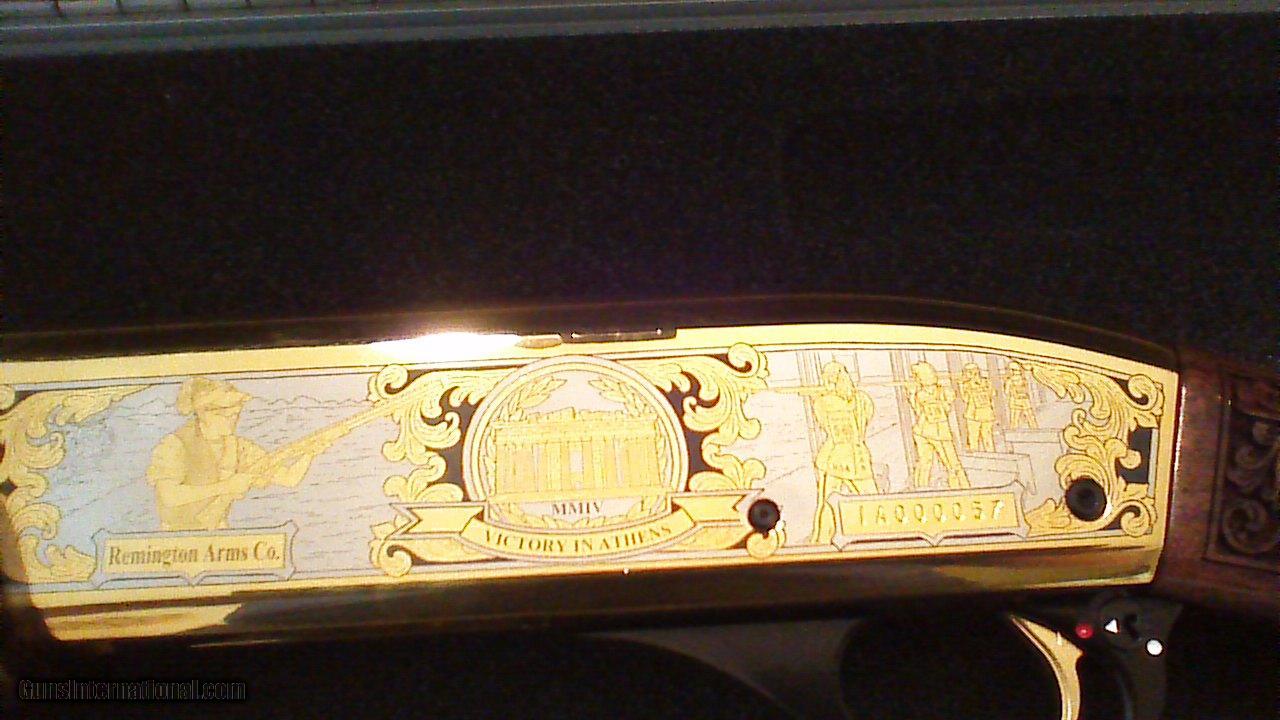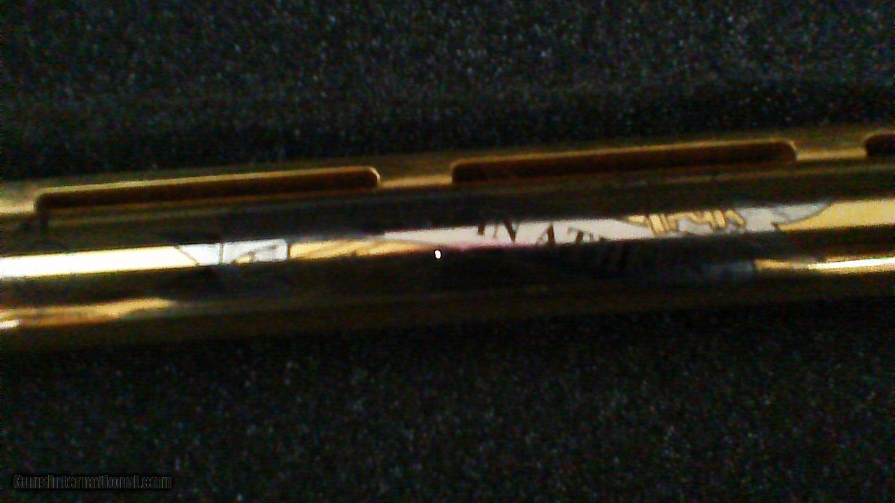 Description: Remington 110 LT-20, Gold plated and engraved action and stock honoring the Olympics in Athens Greece 2004. The shotgun is 24 Karat gold plated with multiple sceens of shooter (pistol, rifle and shotgun). The orginal owner paid over $4,000 in 2004. Comes with choke tool, plug and improve, modified and full chokes. The shotgun is new and never been fired. Case is aluminum and hardy board and locks (keys included). the engraving and plating was conducted by Investment Arms Inc. SOLD Manufacturer: Remington Model: 1100 Chambers: 2 3/4 Condition: new Metal Condition: new Wood Condition: new Gauge Info: 20 Rib: ventilated Chokes: Modified, Improved and Full Case: Hard Item Location: Meridian, Idaho |